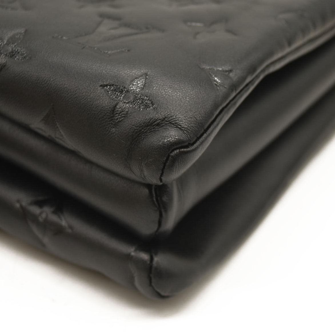 LOUIS VUITTON Lambskin Embossed Monogram Coussin PM Black