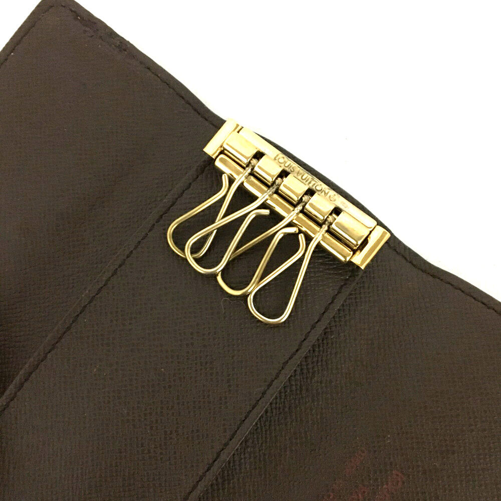 This is an authentic LOUIS VUITTON Damier Ebene Multicles 4 Key Holder. This stylish key holder is crafted of Louis Vuitton signature damier checked canvas. The flap opens to reveal a brown crossgrain leather interior with gold key rings.