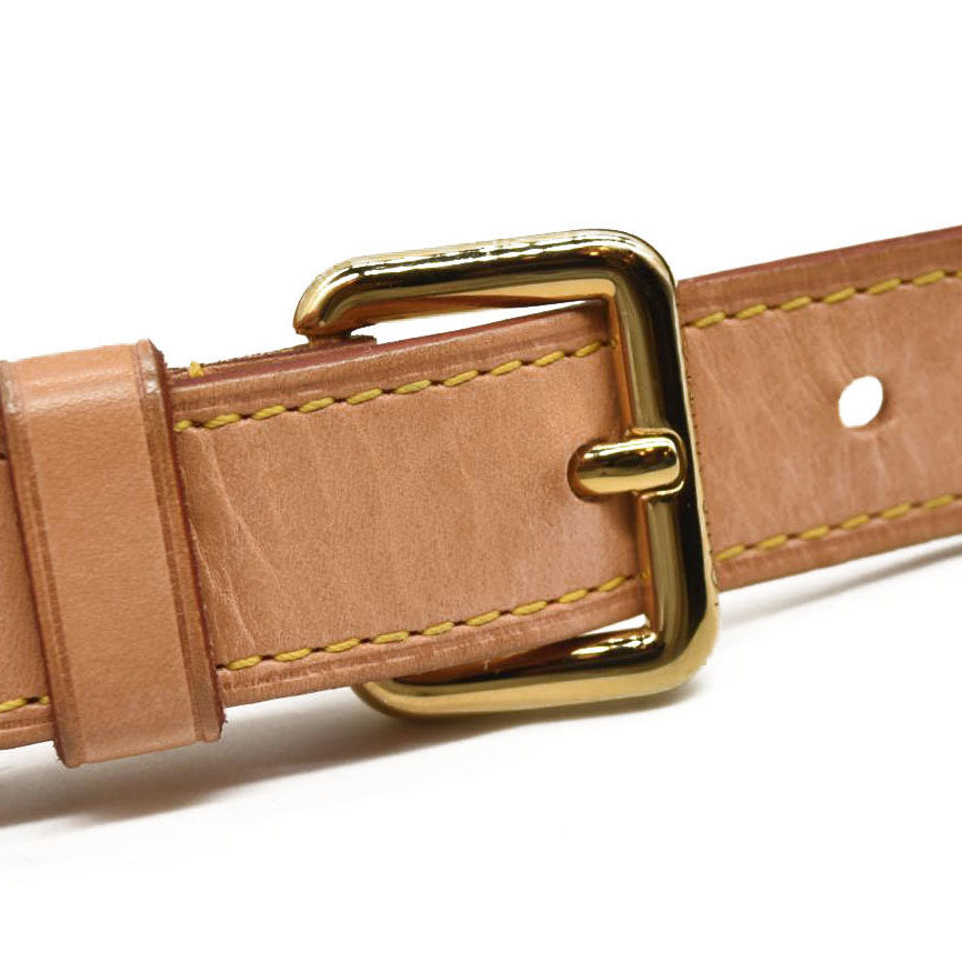 Exterior: Patina of vachetta, creases, surface wear, faint scuffs