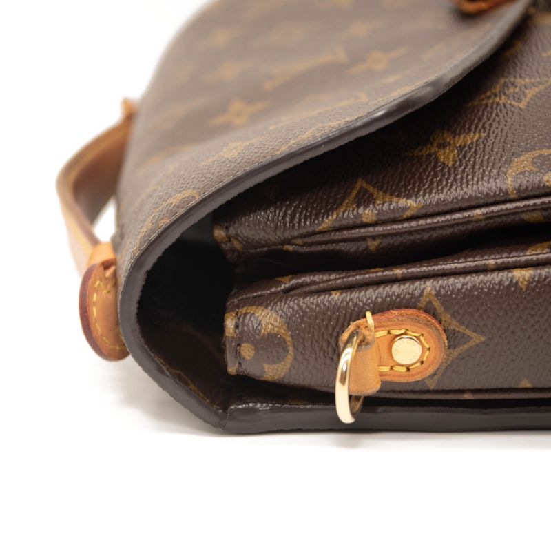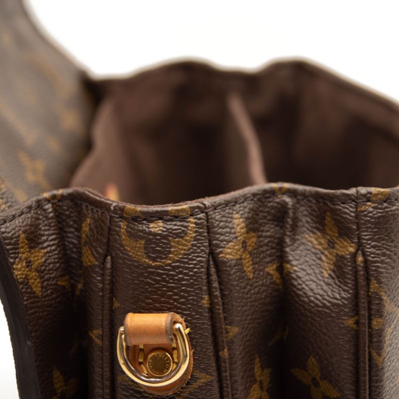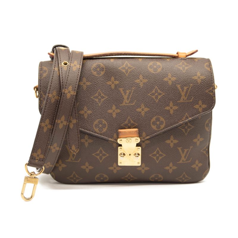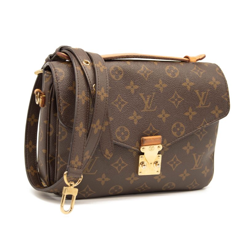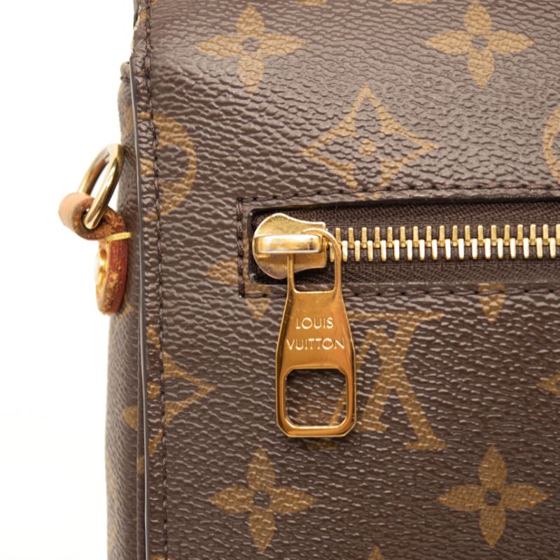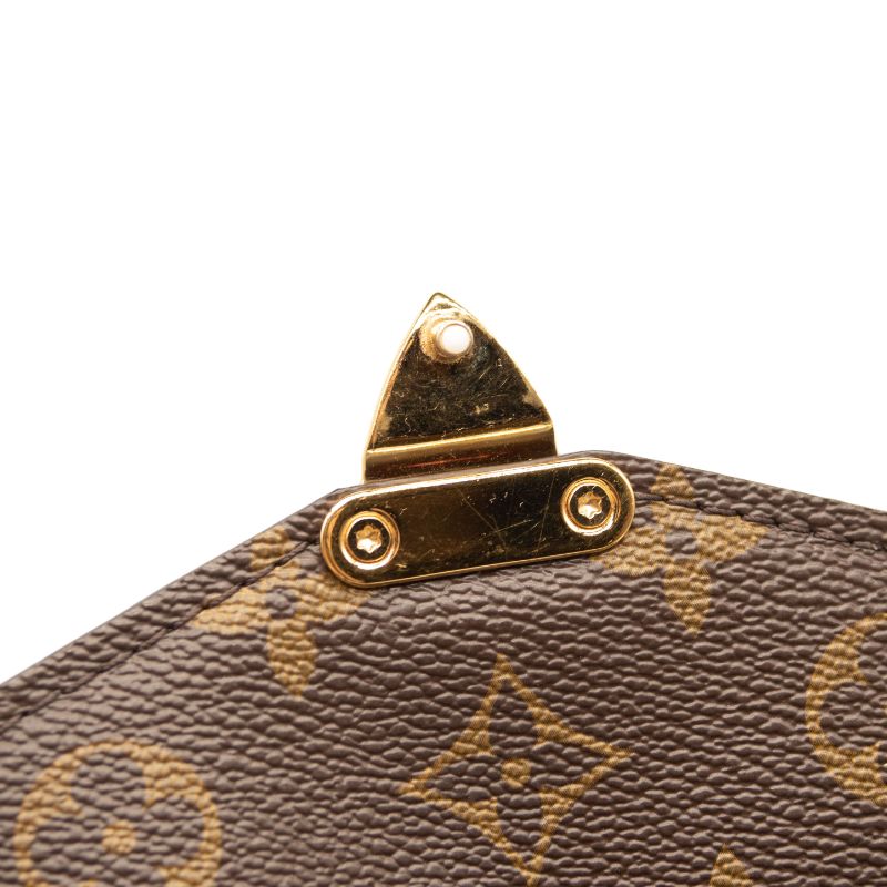 This is an authentic LOUIS VUITTON Monogram Pochette Metis. This chic handbag is finely crafted of classic Louis Vuitton monogram toile canvas. The bag features a vachetta cowhide leather top handle, an optional monogram coated canvas shoulder strap, and a rear zipper pocket. The envelope-style crossover flap opens with a polished brass S-lock to a partitioned brown microfiber interior.
