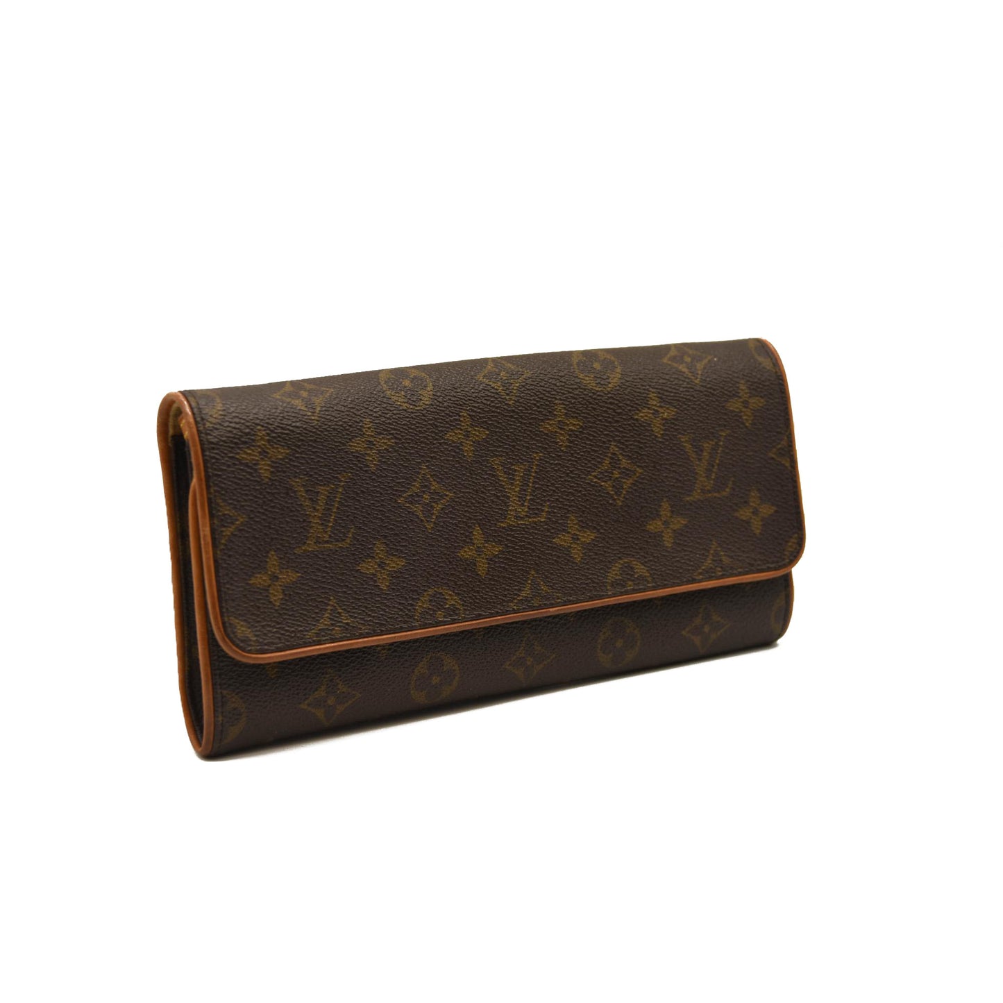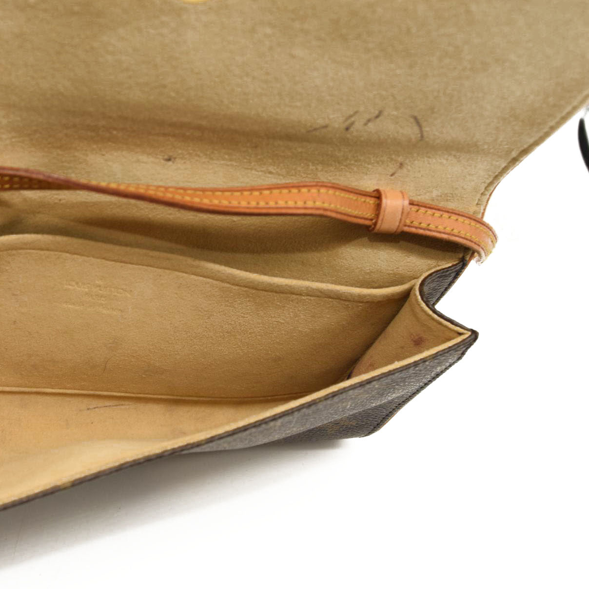 This is an authentic LOUIS VUITTON Monogram Pochette Twin GM. This pochette is crafted of classic brown Louis Vuitton monogram on toile canvas. This shoulder bag features a removable vachetta cowhide strap and a long flap that opens to a beige microfiber interior with a patch pocket.