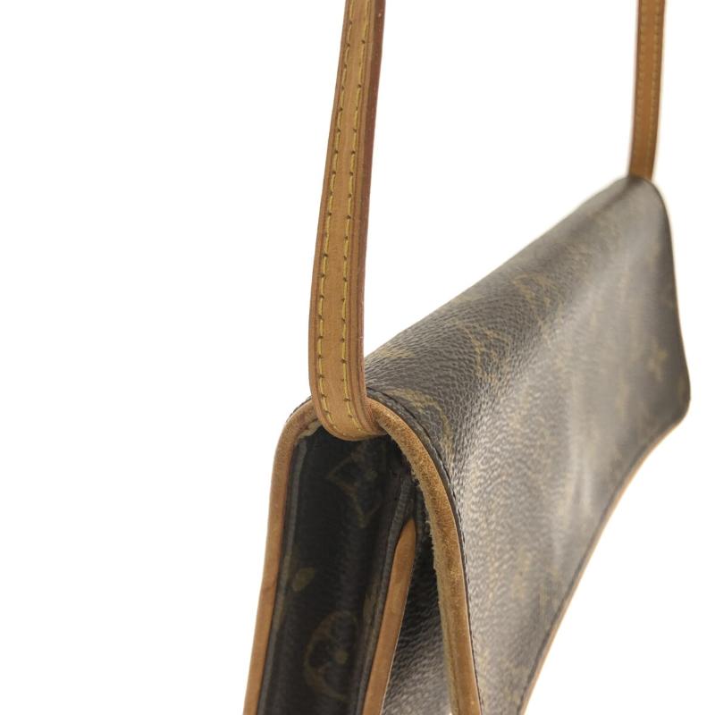 This is an authentic LOUIS VUITTON Monogram Pochette Twin GM. This pochette is crafted of classic brown Louis Vuitton monogram coated canvas. This shoulder bag features a removable vachetta cowhide strap and a long flap that opens to a beige microfiber interior with a patch pocket.