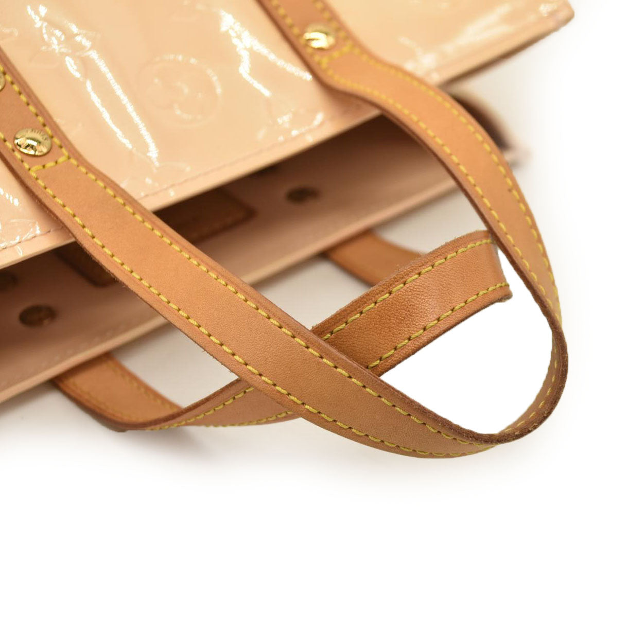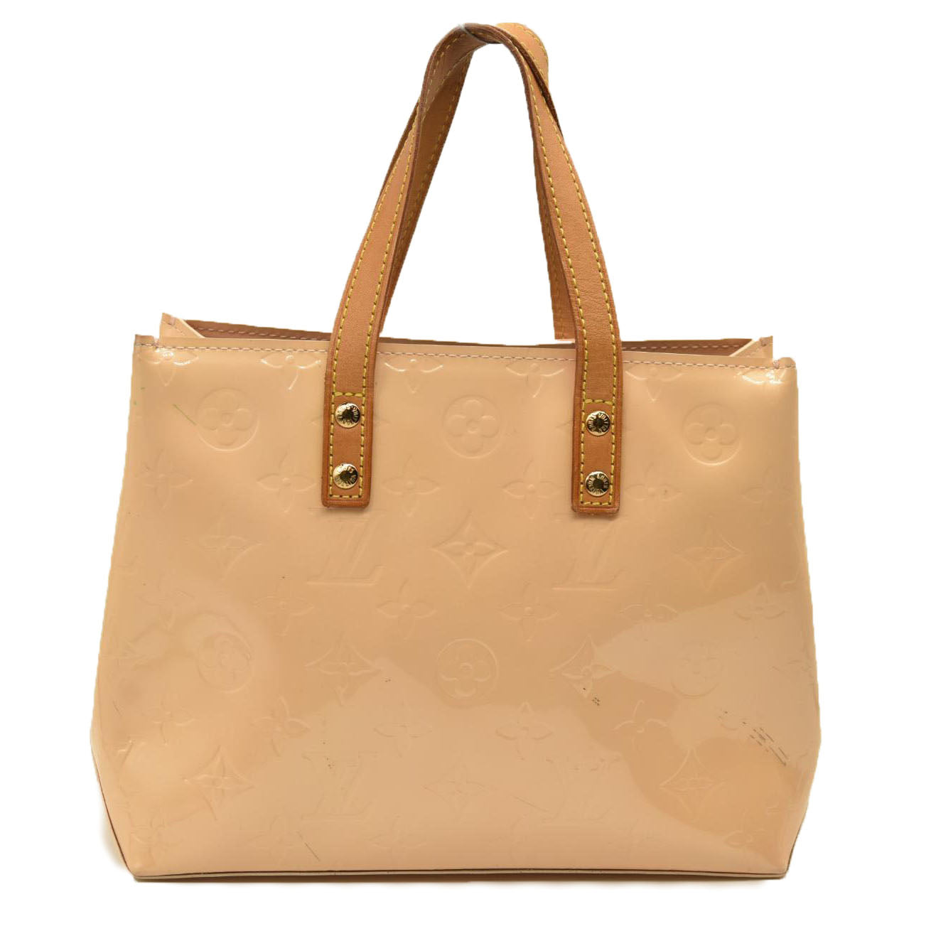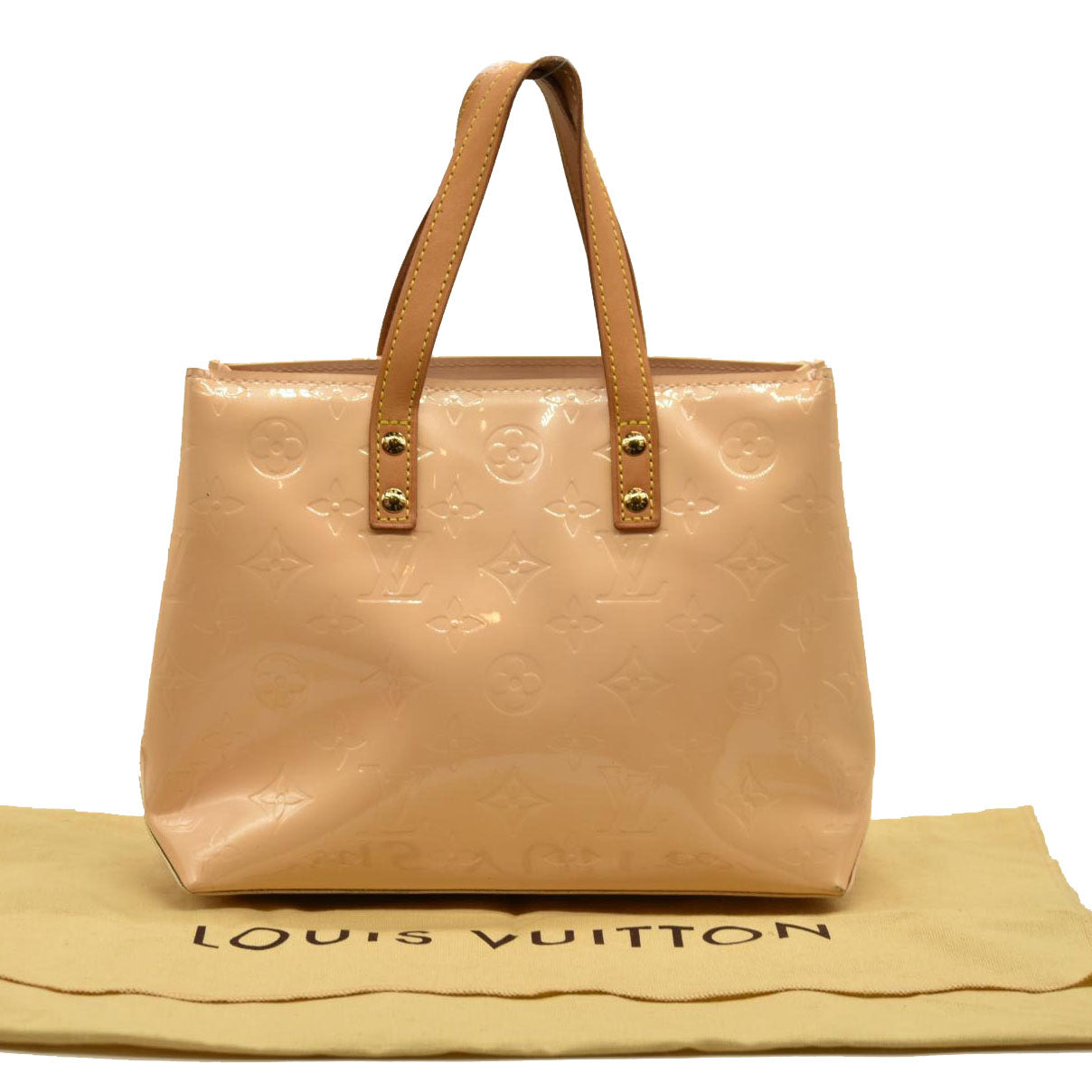 This is an authentic LOUIS VUITTON Vernis Reade PM in Marshmallow. This stylish tote is crafted of Louis Vuitton monogram embossed vernis patent leather. The bag features simple vachetta cowhide leather strap top handles. The top is open to a matte leather interior. This is a marvelous tote, ideal for everyday use, from Louis Vuitton!