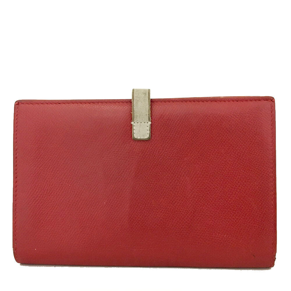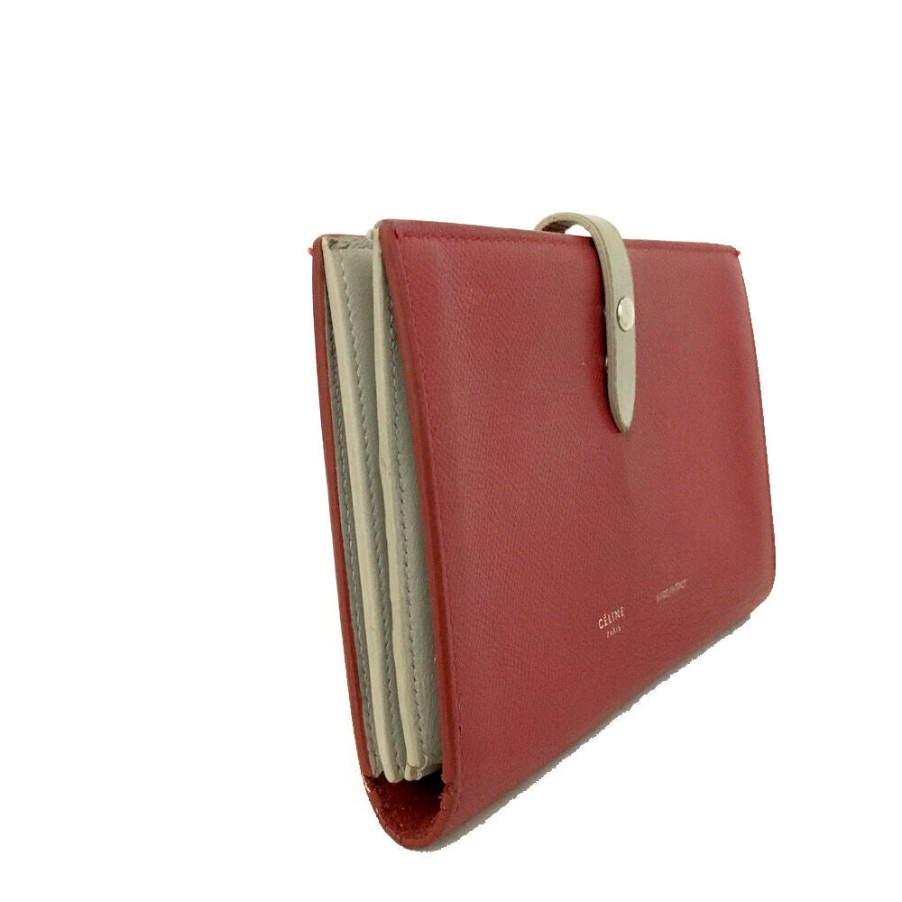 This is an authentic CELINE Grained Calfskin Large Multifunction Strap Wallet in Red and Beige. This chic wallet is crafted of grained calfskin leather in red. The wallet has a full frontal flap with a beige strap closure and opens to a compact smooth beige leather and red suede interior with two panels of card slots, patch pockets, and a zipper compartment.