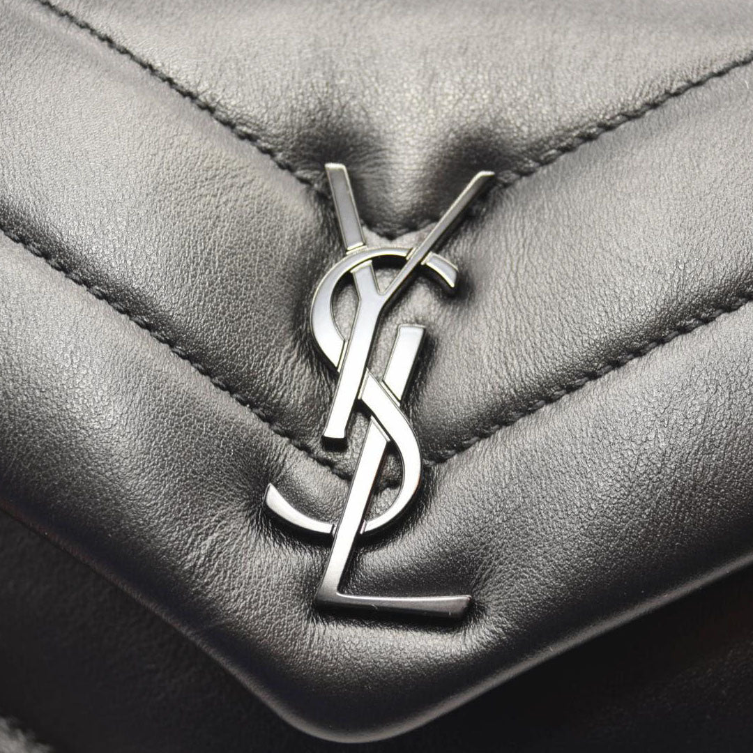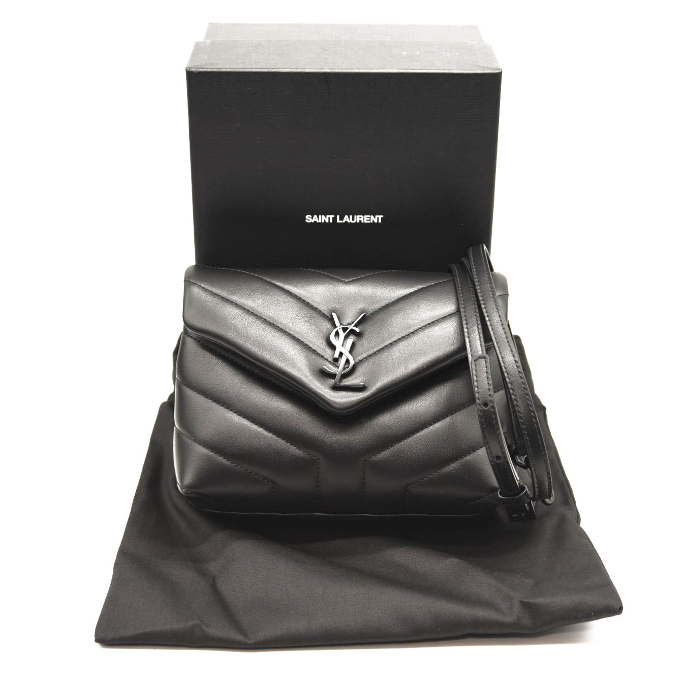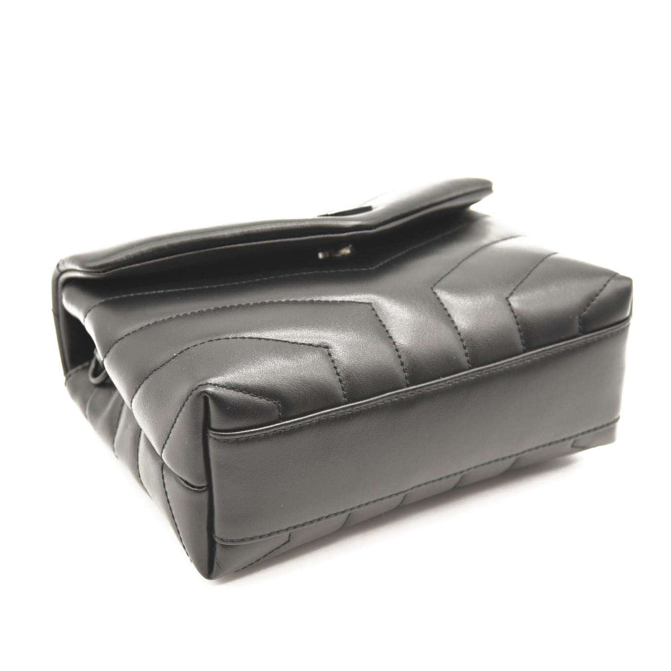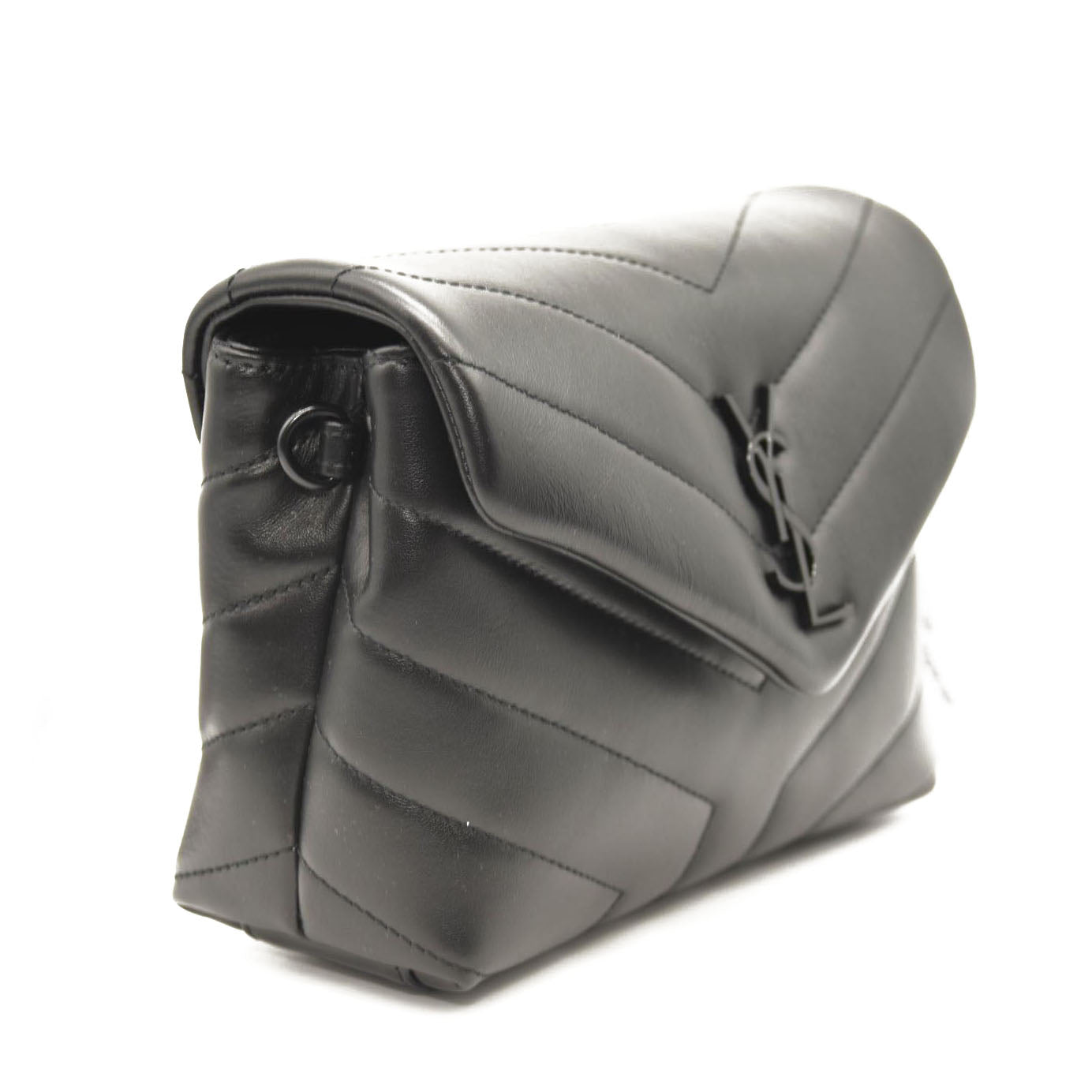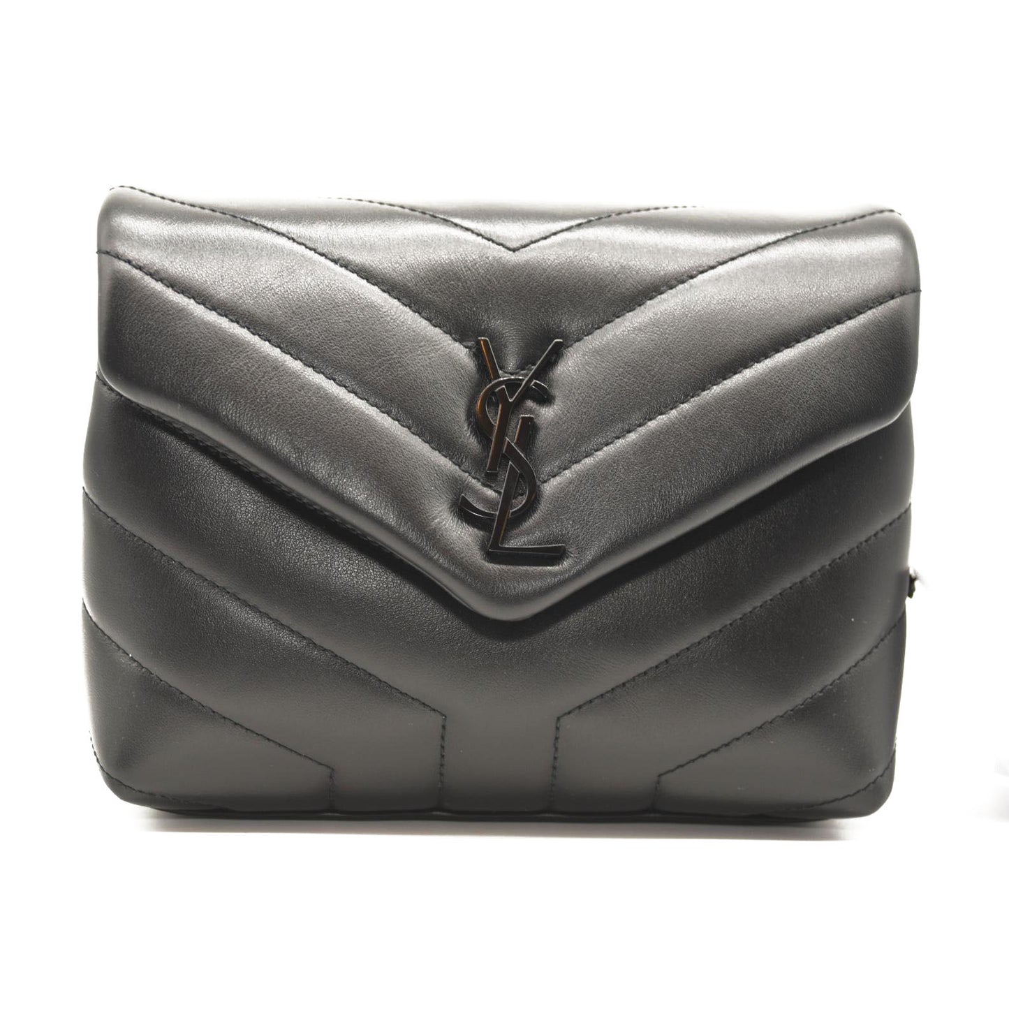 SAINT LAURENT Calfskin Y Quilted Monogram Monochrome Toy Loulou Crossbody Bag Black
