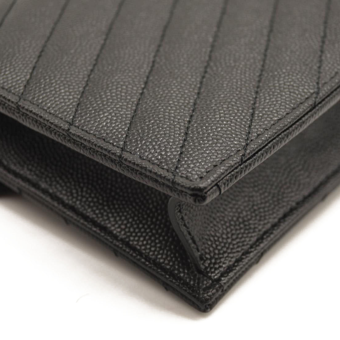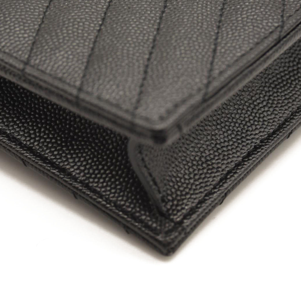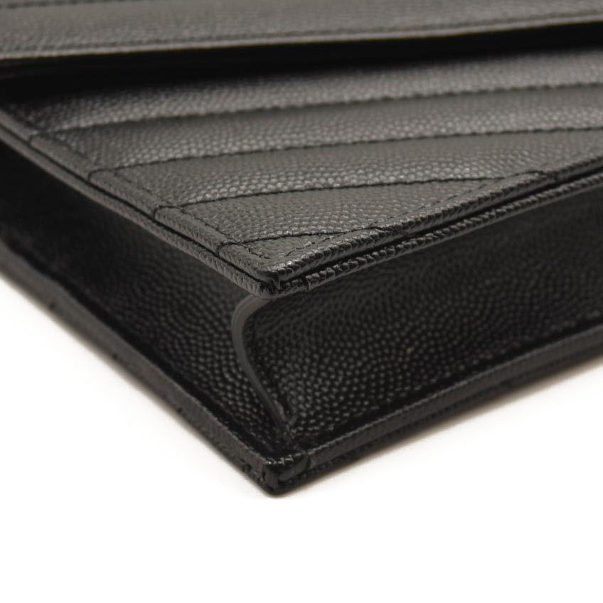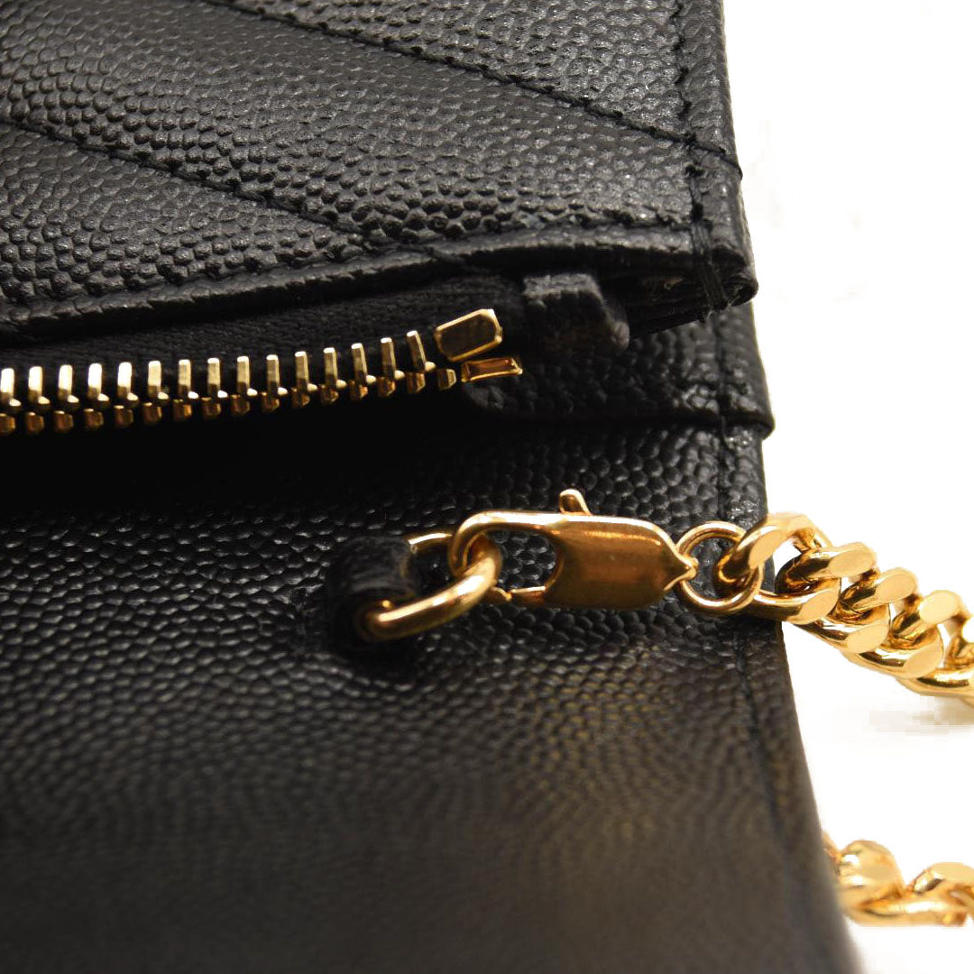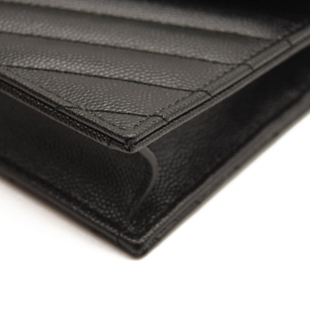 SAINT LAURENT Grain De Poudre Matelasse Chevron Monogram Chain Wallet Black