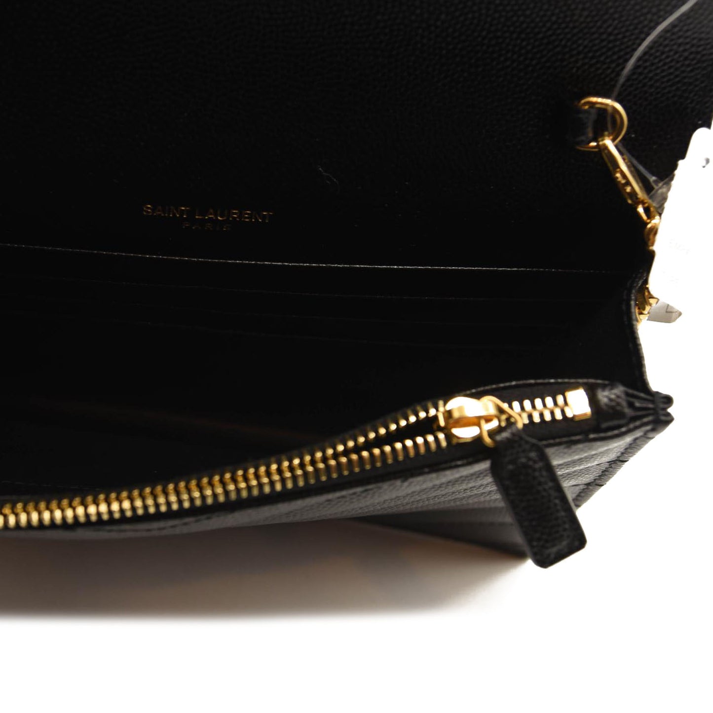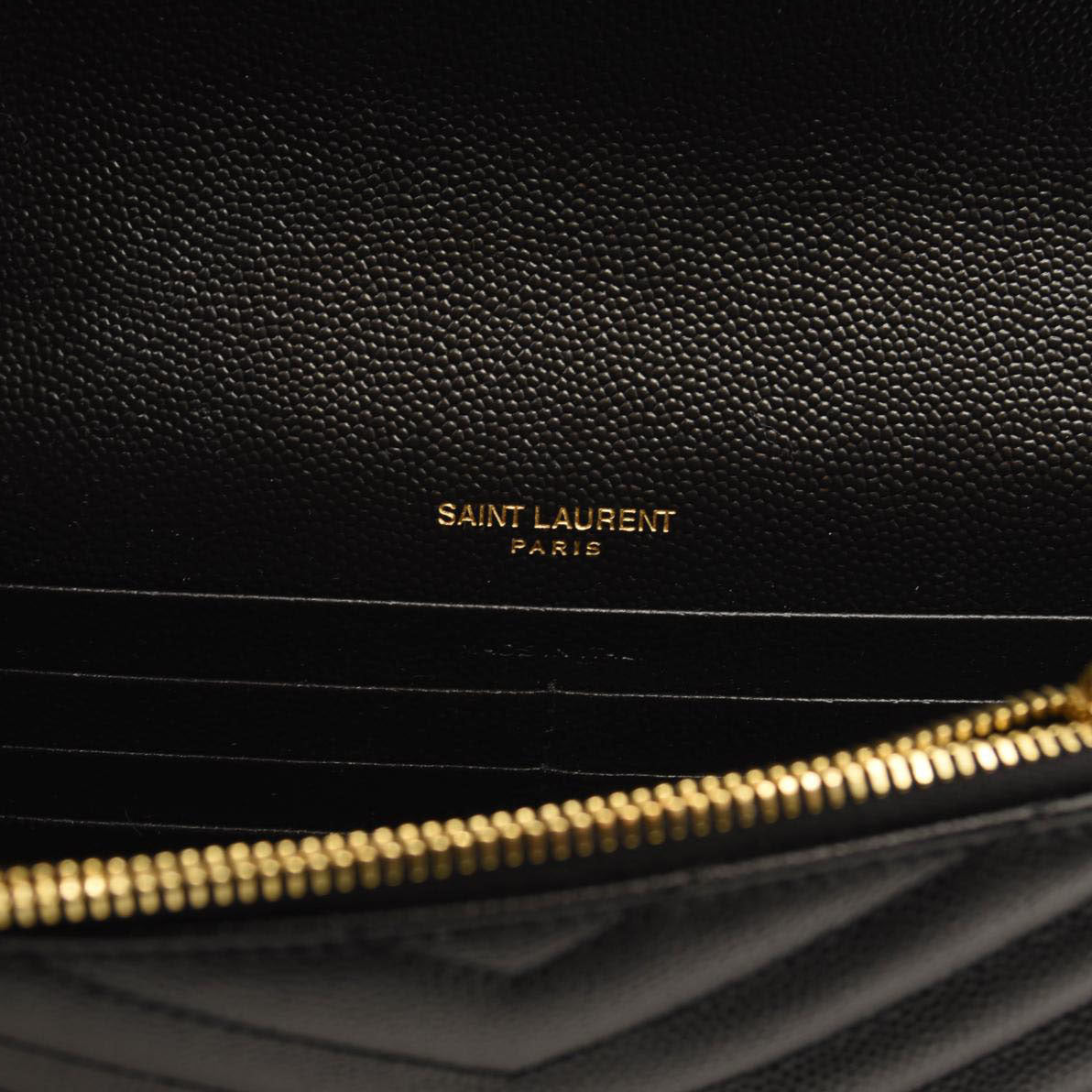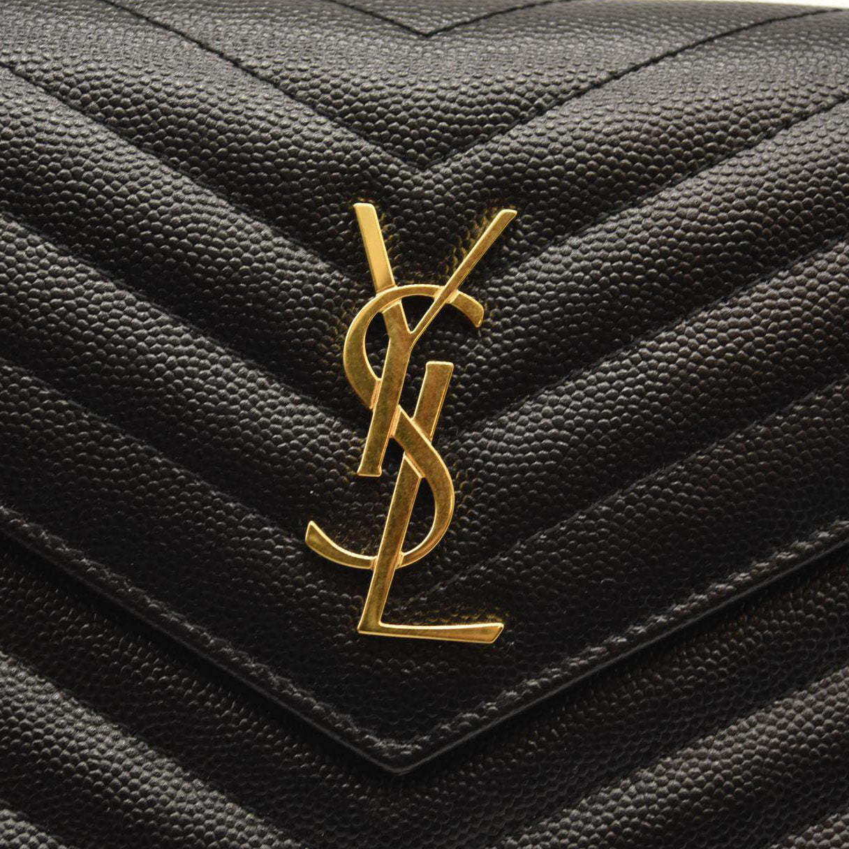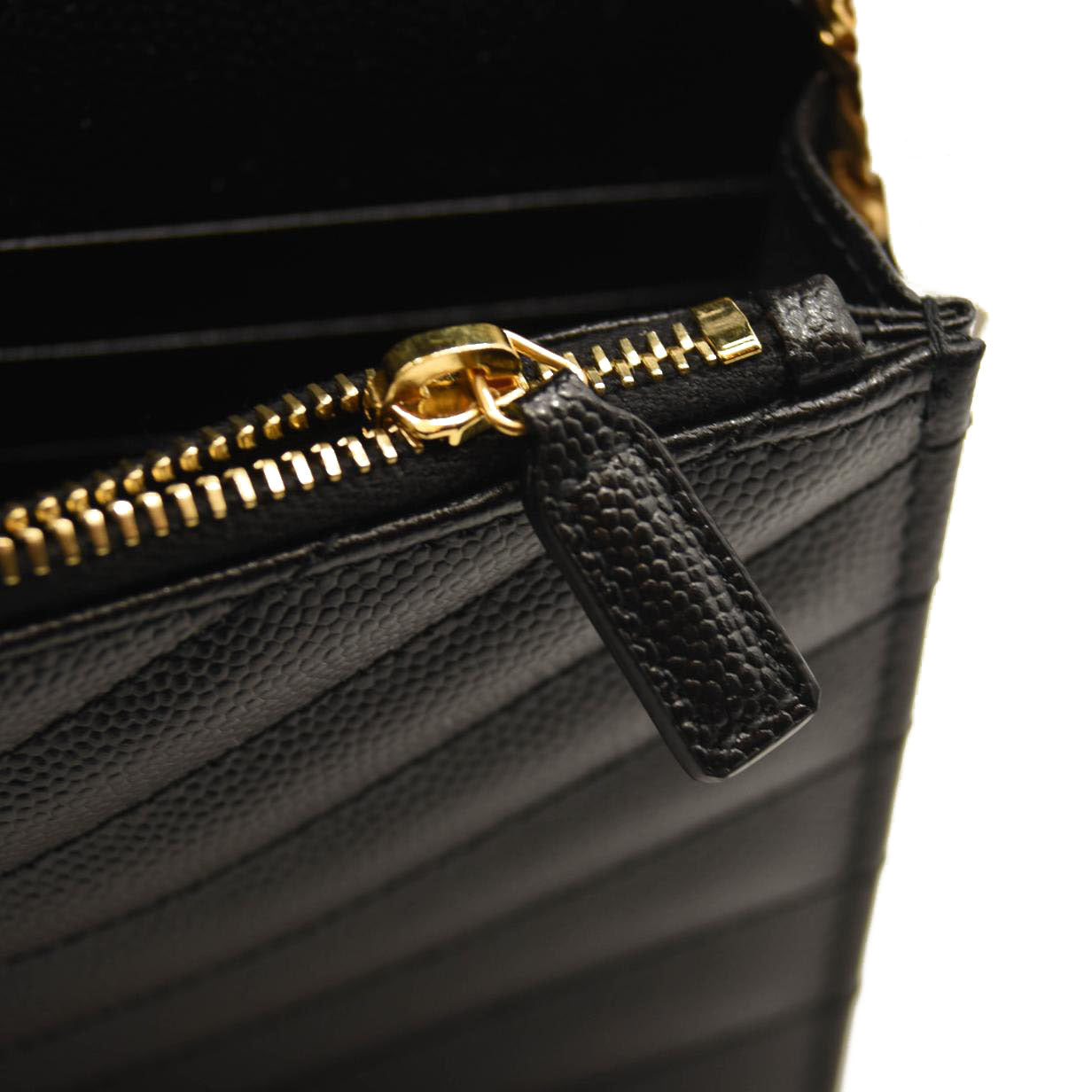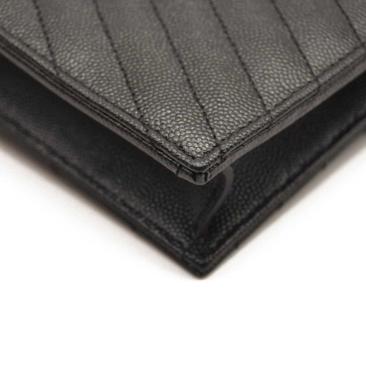SAINT LAURENT Grain De Poudre Matelasse Chevron Monogram Chain Wallet Black