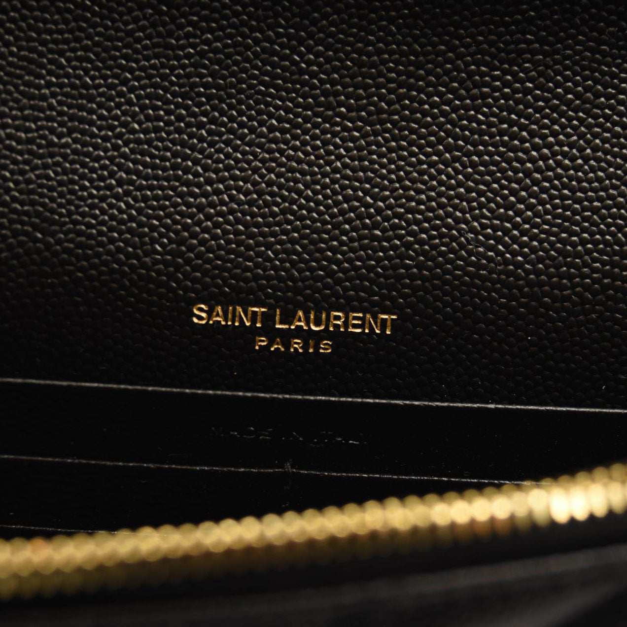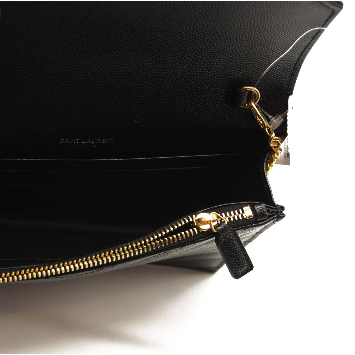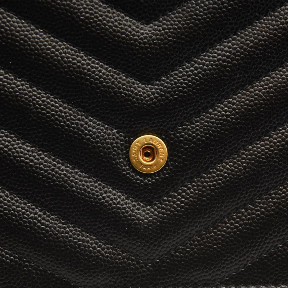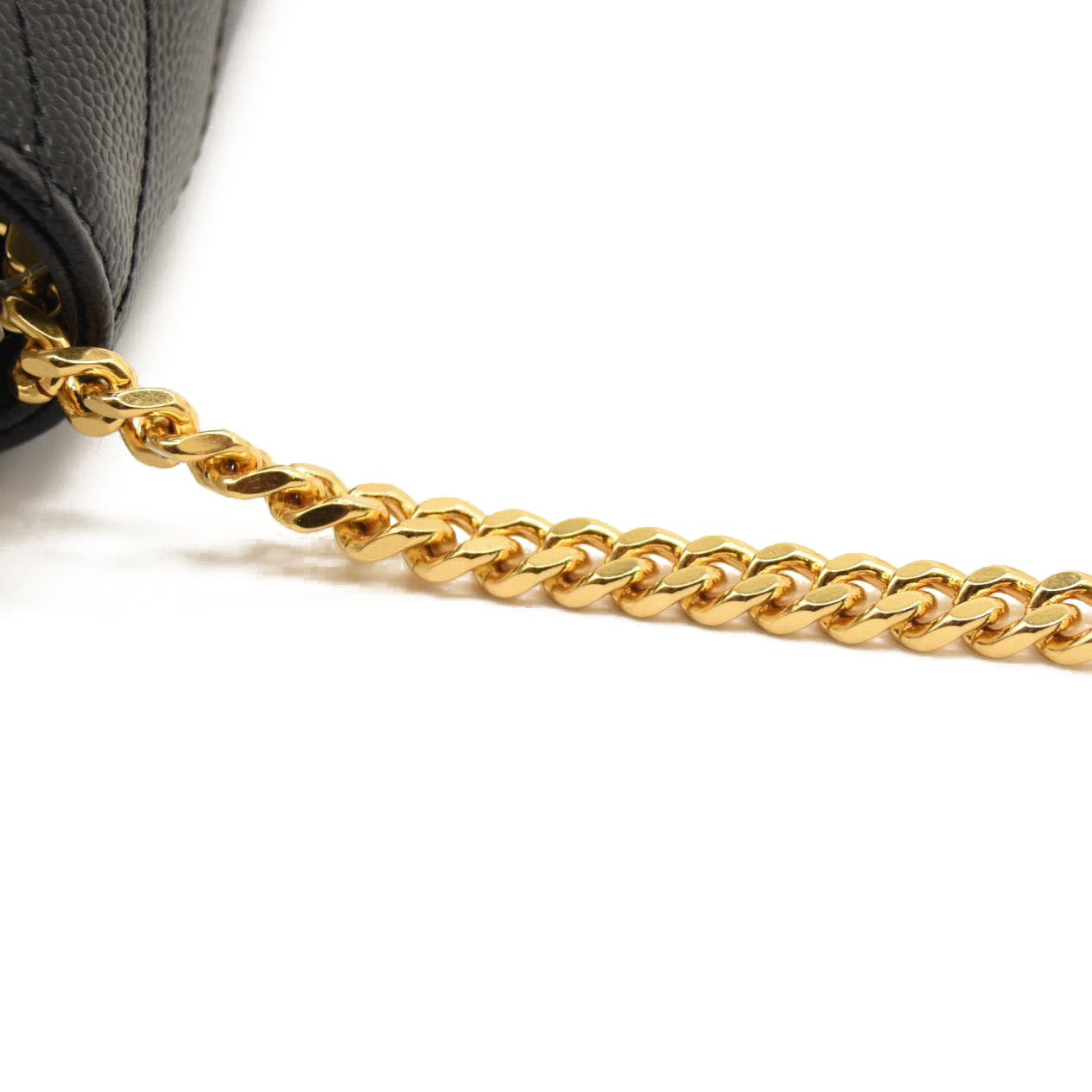 SAINT LAURENT Grain De Poudre Matelasse Chevron Monogram Chain Wallet Black