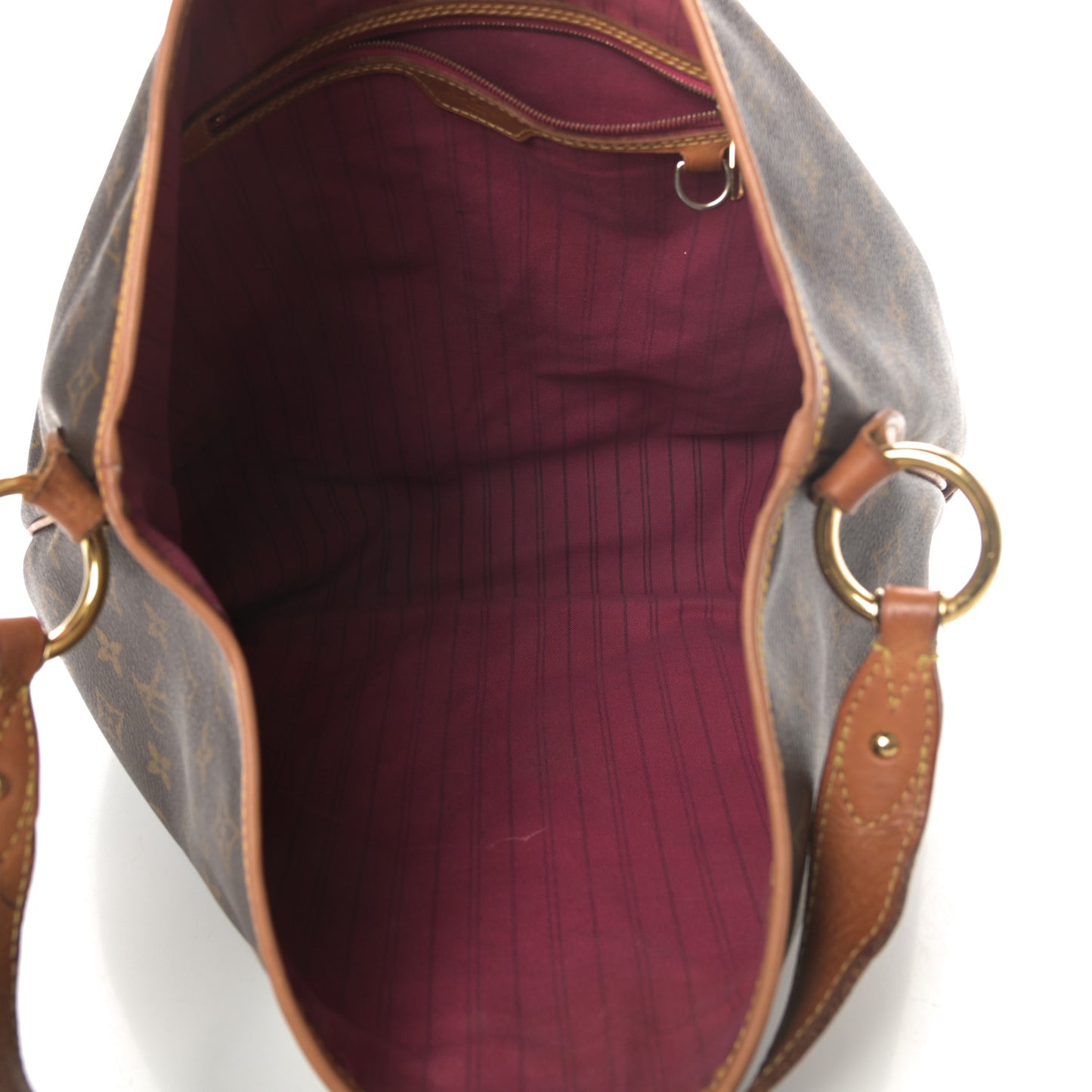 This is an authentic LOUIS VUITTON Monogram Delightful MM in Pivoine. This stylish tote bag is crafted of signature Louis Vuitton monogram coated canvas. This shoulder bag features a thick looping vachetta leather shoulder strap, piping, and side trim with polished brass hardware. The top is open to a deep pink striped fabric interior with a zipper pocket.