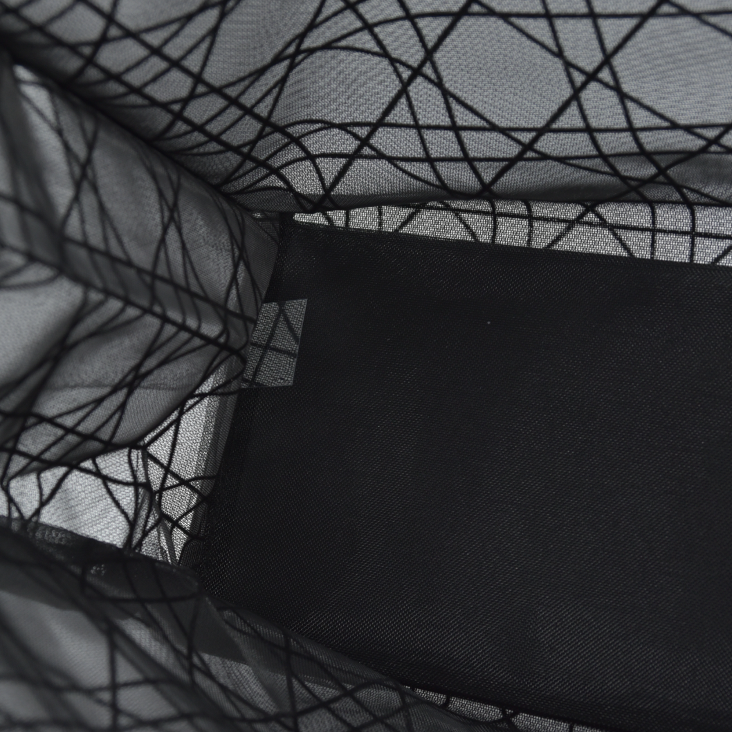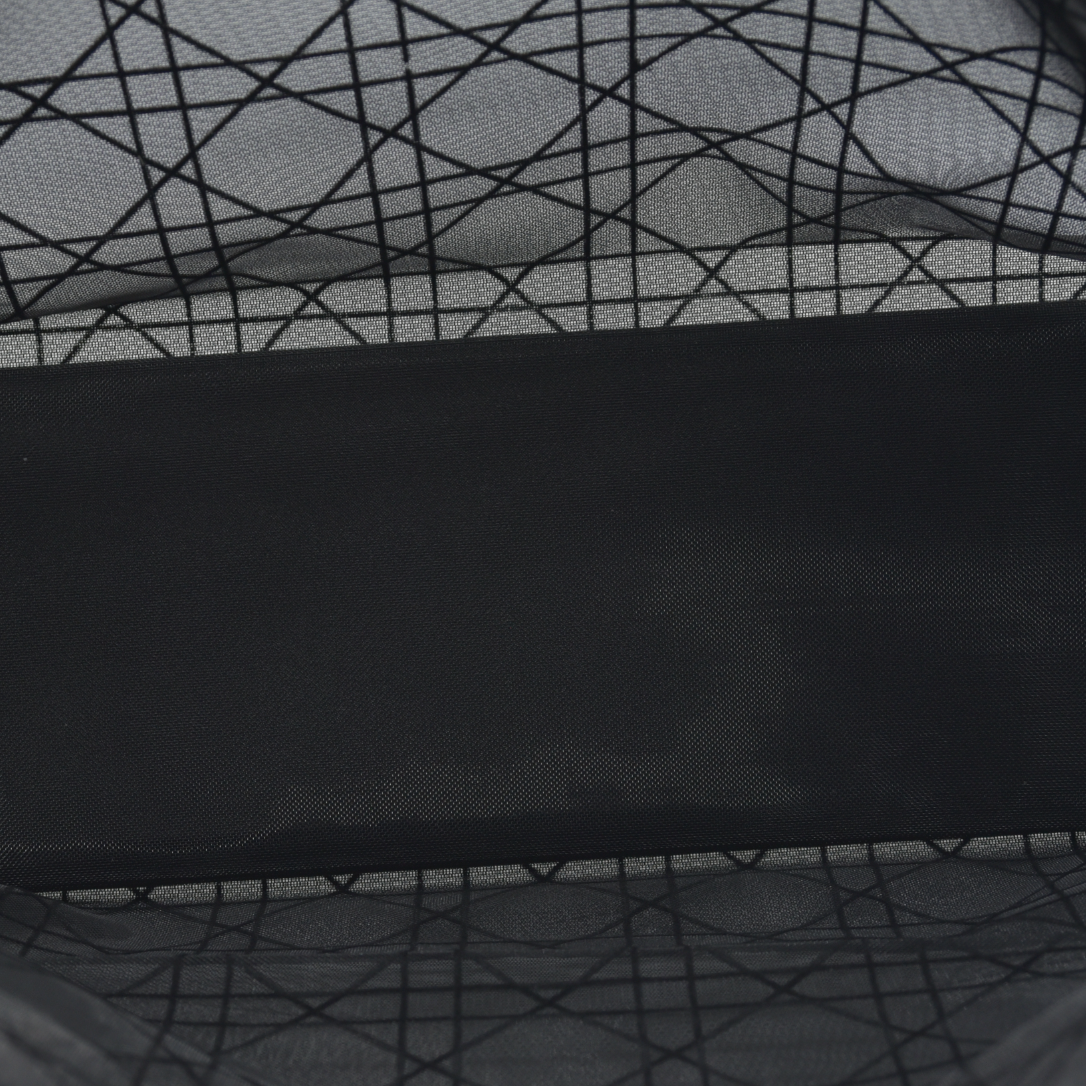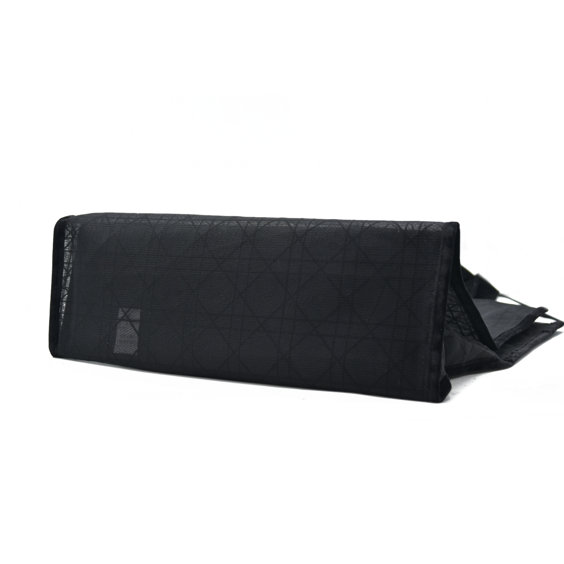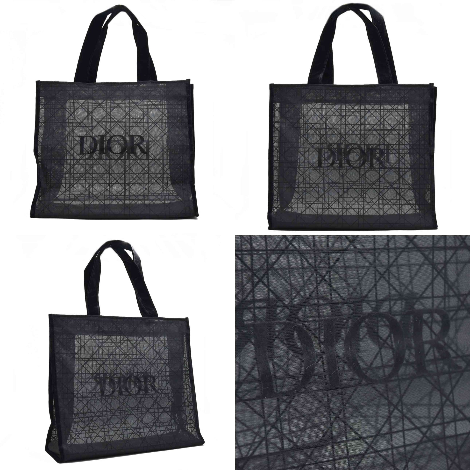Mesh/sheer black material with Dior's iconic Cannage pattern Dior logo and handles are a soft velvet-like fabric for a luxurious touch Generously sized tote (approx. 16" W x 14" H x 5" D) Works beautifully with a black bag insert Lightweight and easy to carry