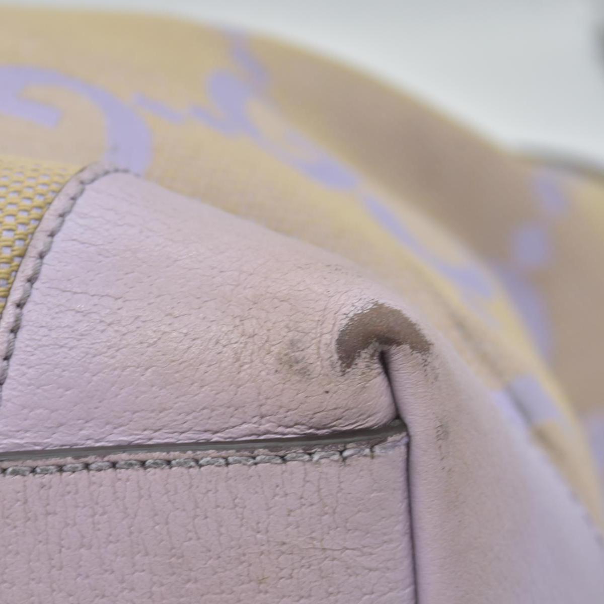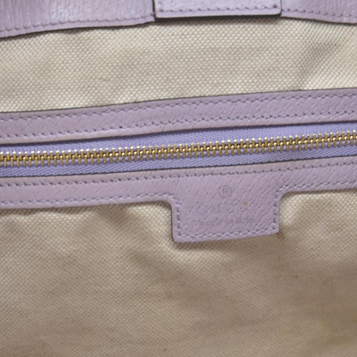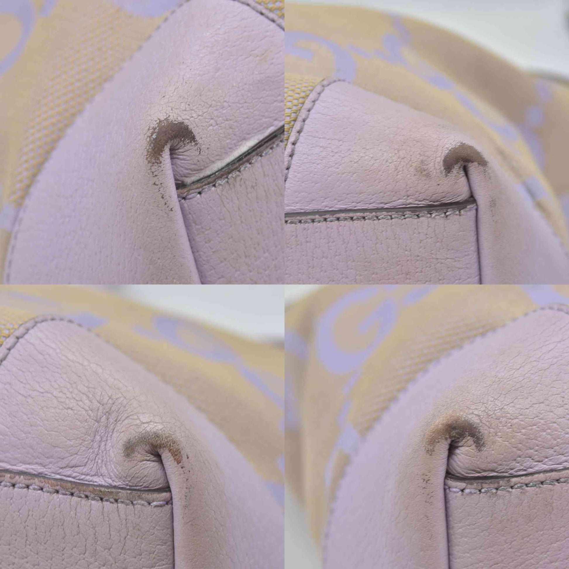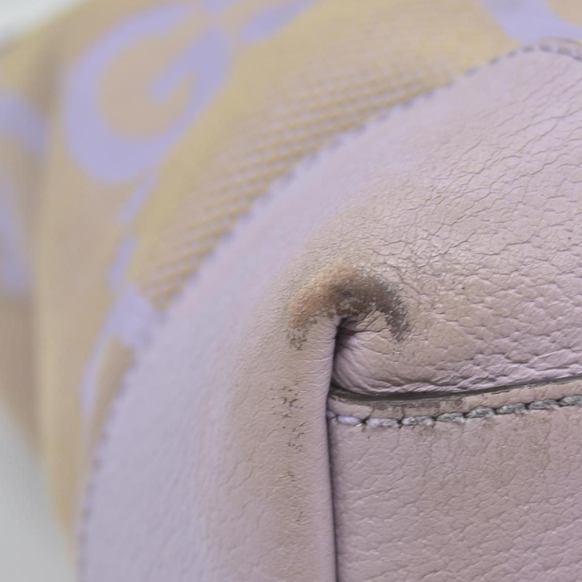 This is an authentic GUCCI Monogram Jumbo GG Textured Dollar Calfskin Medium Ophidia Shopping Tote in Beige and Lapis. This chic tote is crafted of Gucci GG monogram jumbo canvas with purple leather accents. The handbag features leather strap handles and the top is open to a natural canvas interior with zipper and patch pockets.
