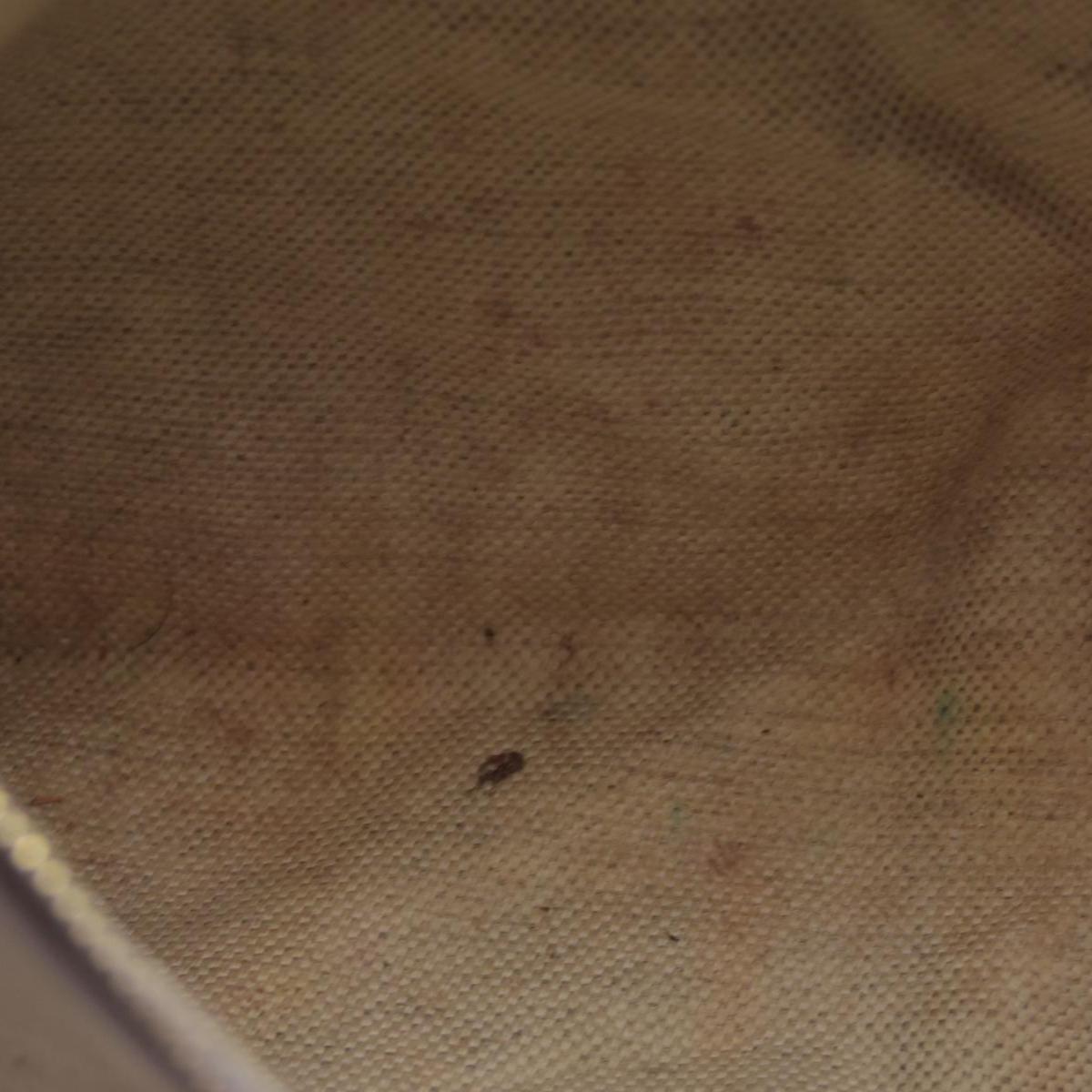 Worn handles. Color loss on handles. Worn corners on bottom. Stains on interior. Stains in interior pocket