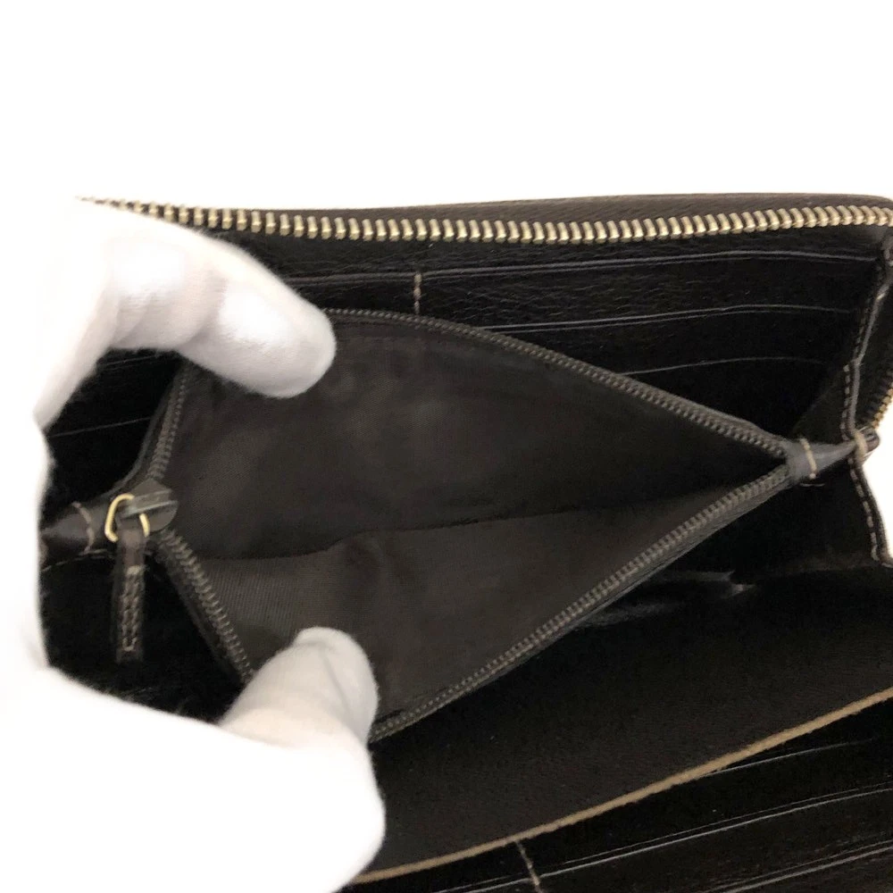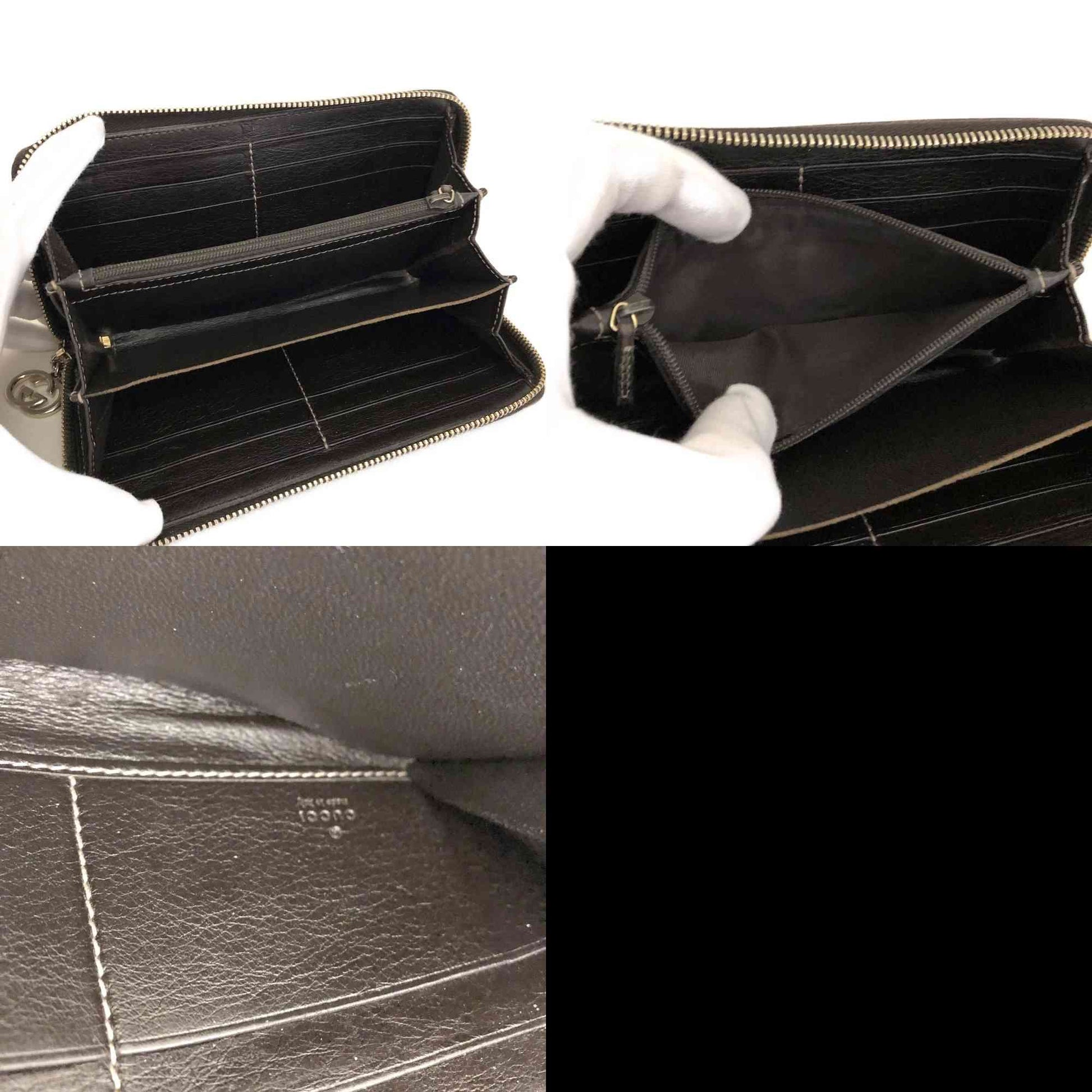 GUCCI Ssima Interlocking G GG Logo Leather Zip Around Long Wallet