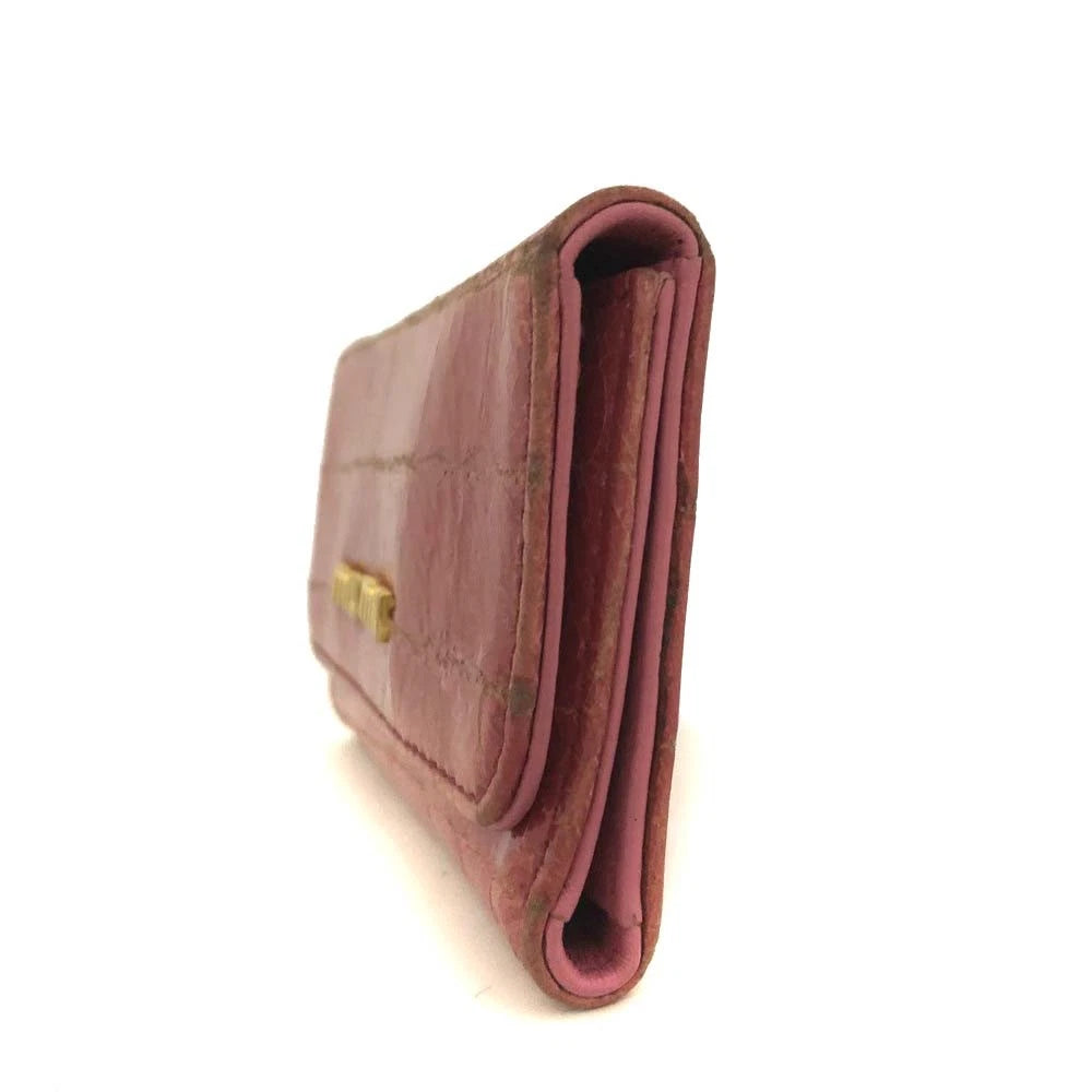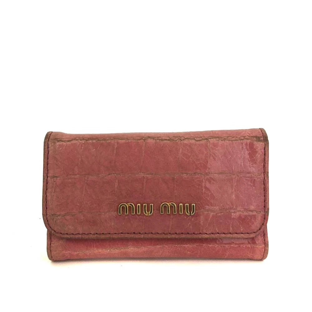 MIU MIU Logo Embossed Leather 6 Ring Key Case Pink