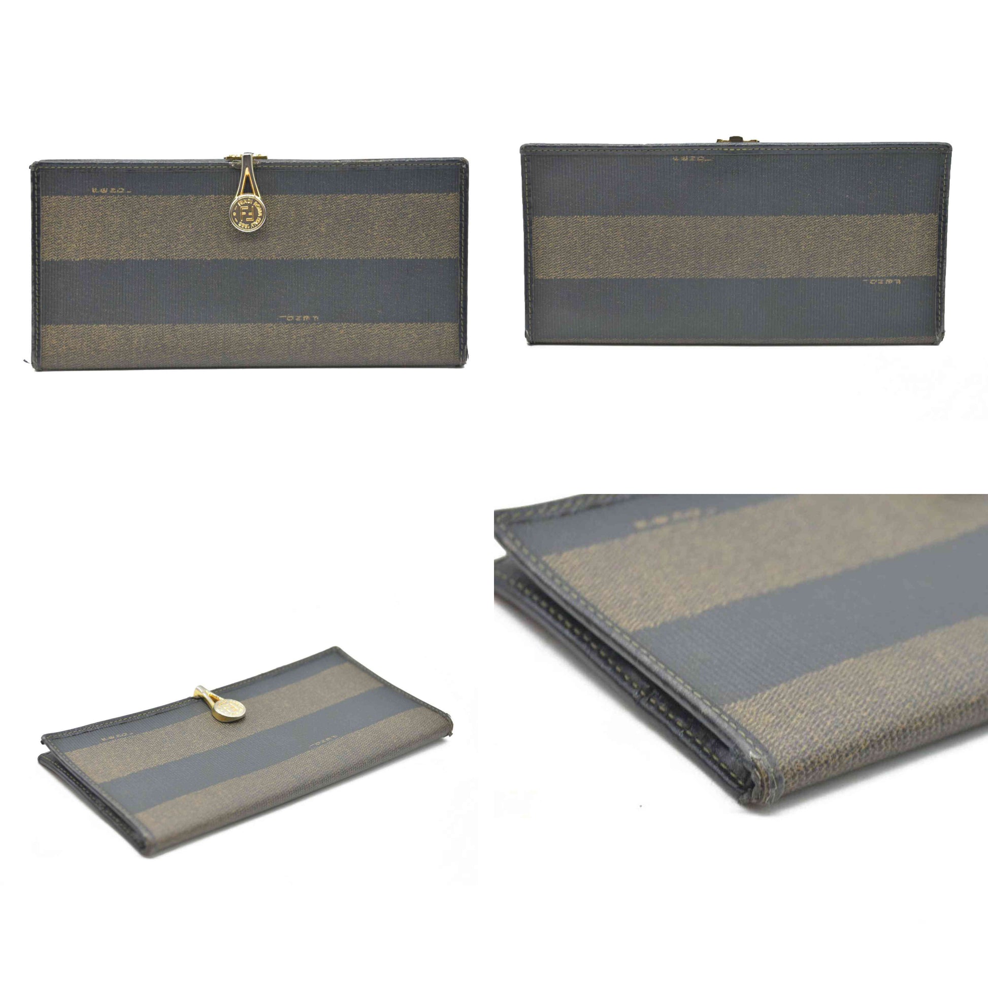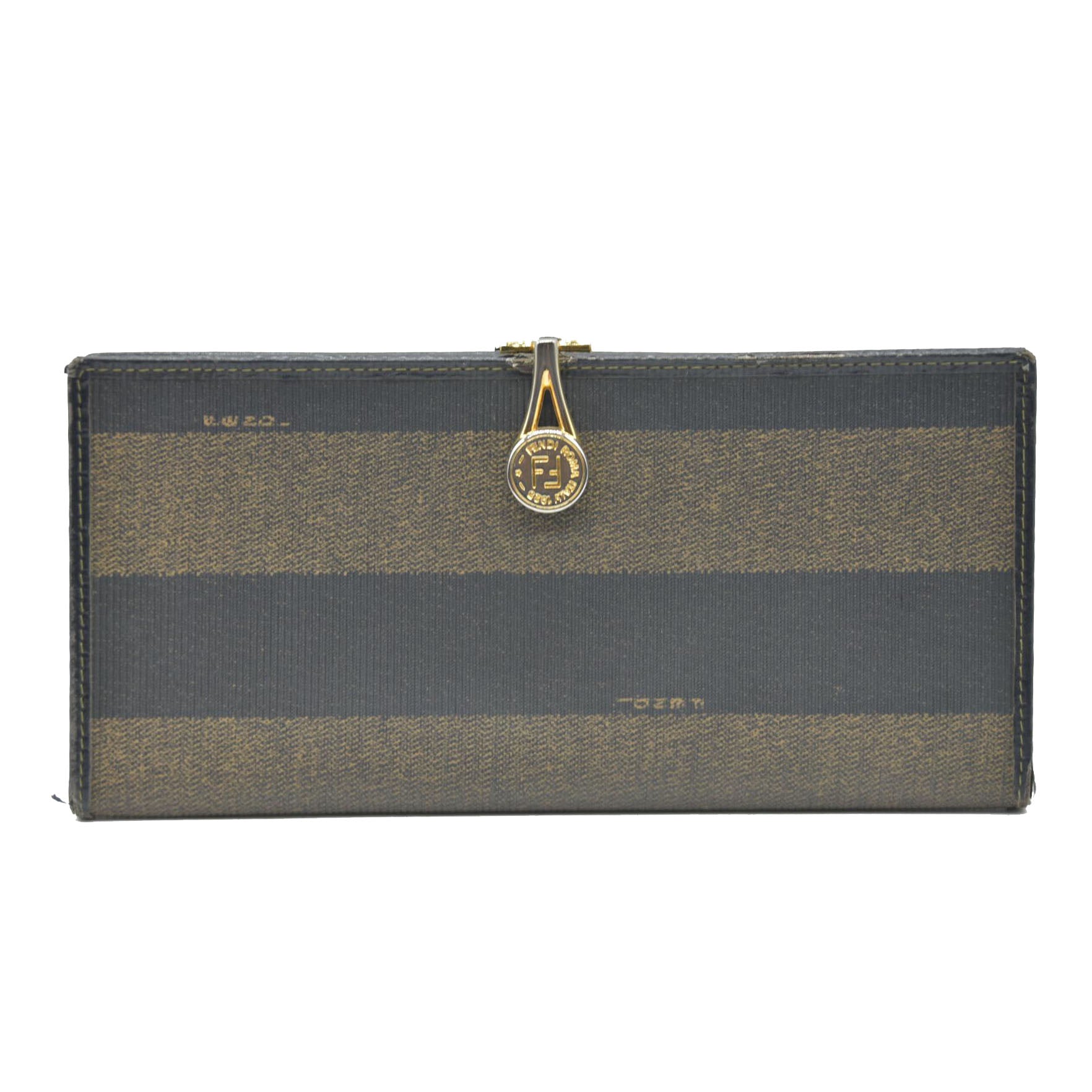 AUCTION $750 Fendi Pequin Striped Flap Wallet Tobacco