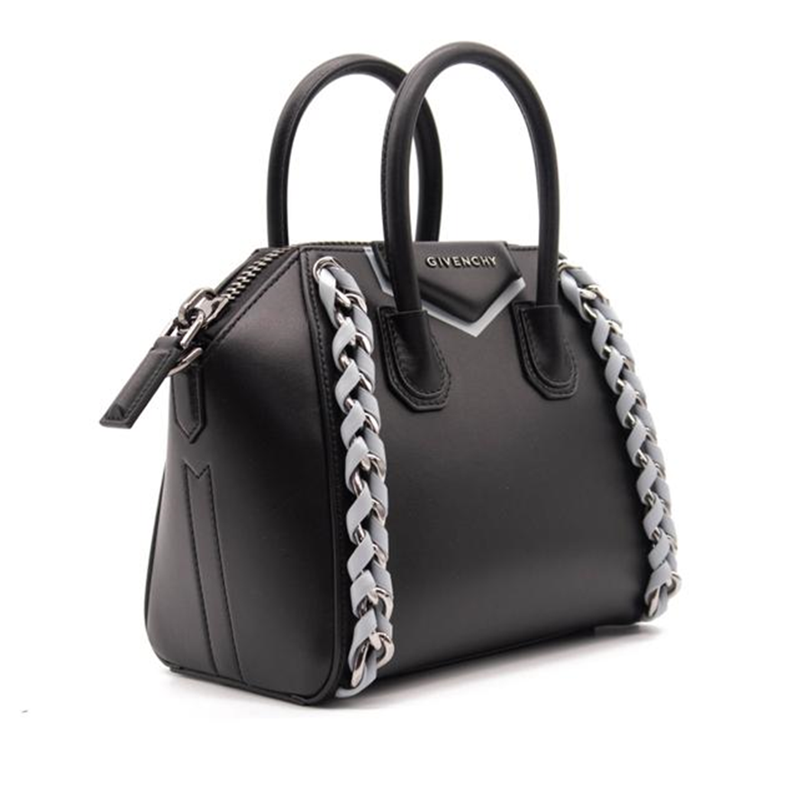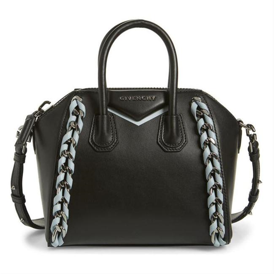Givenchy Mini Antigona Woven Chain Satchel Black Leather Shoulder Bag