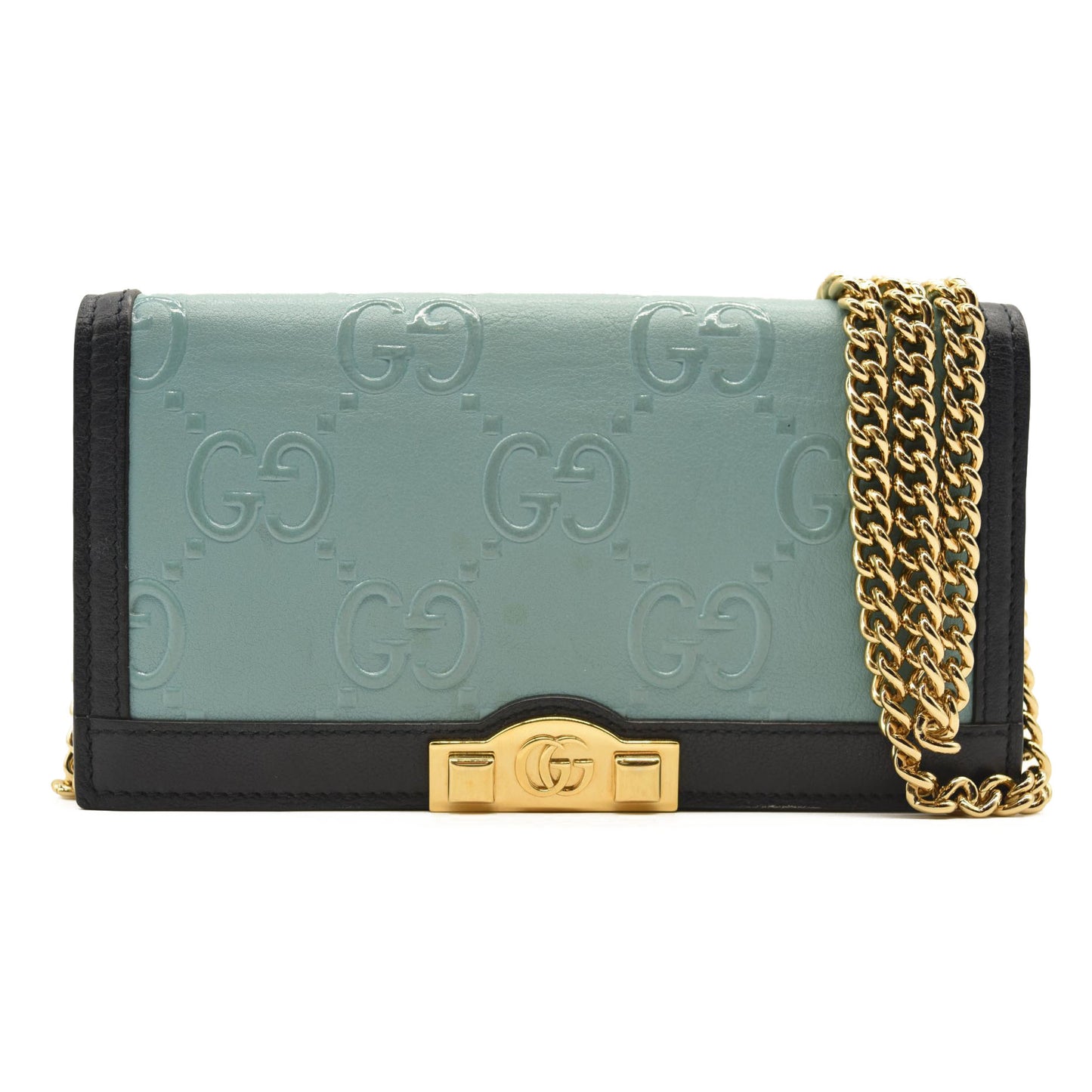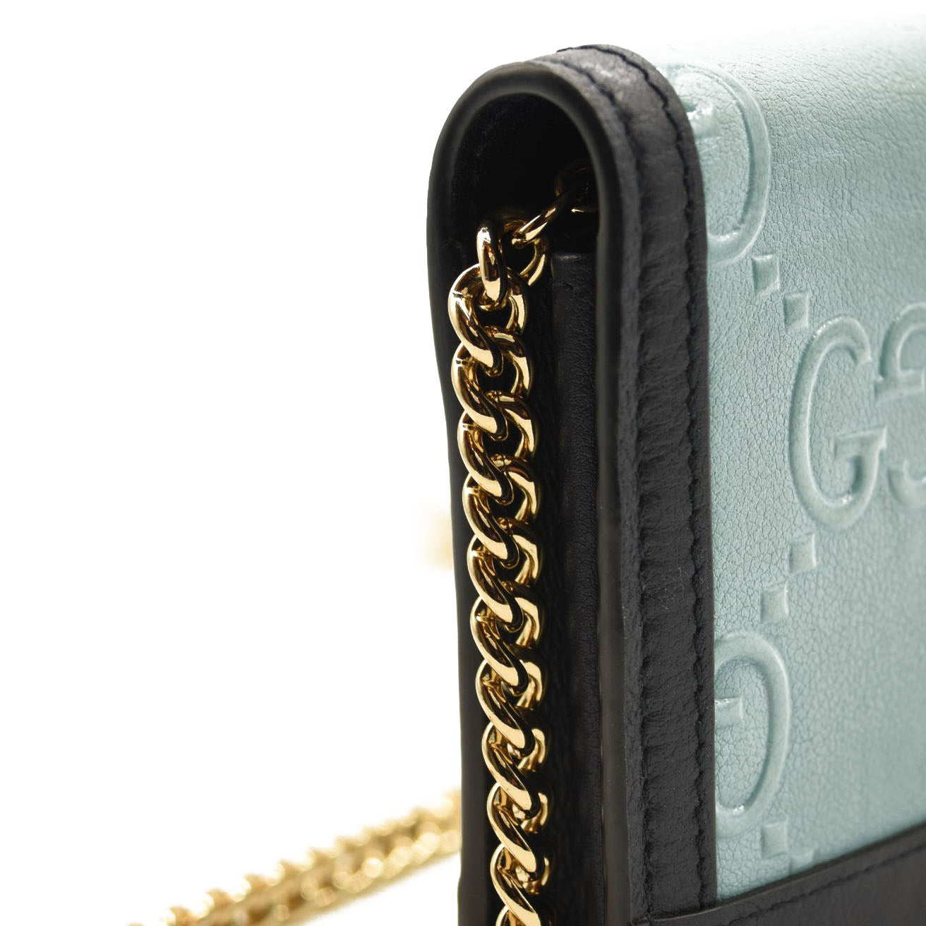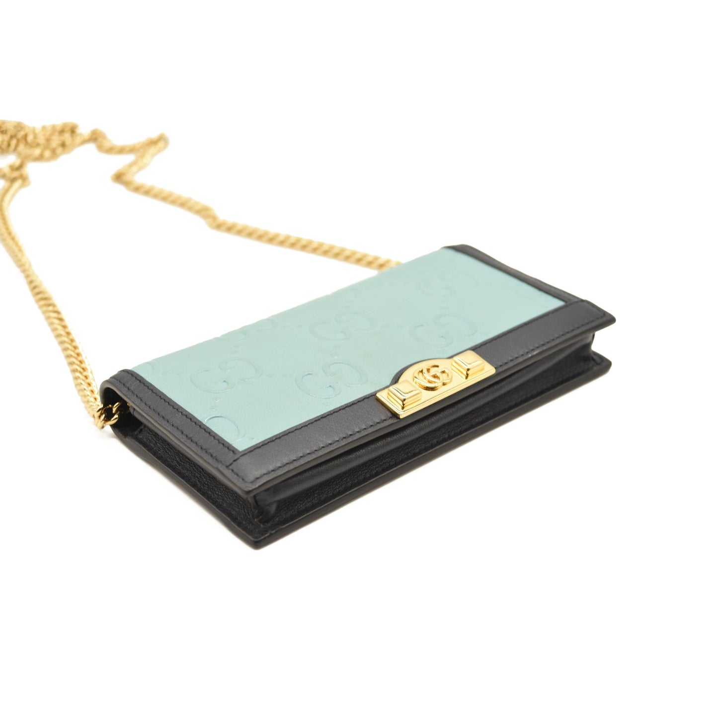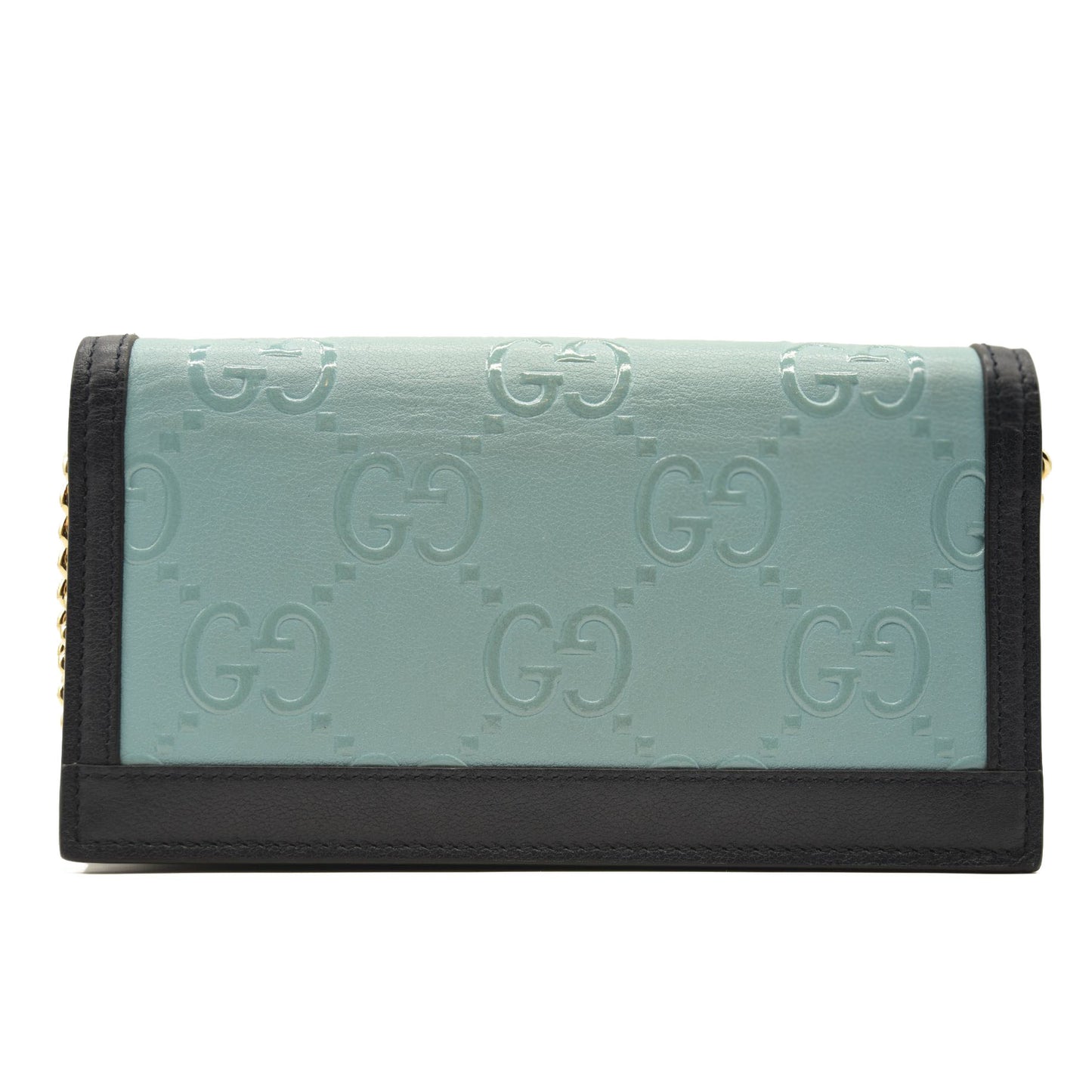 GUCCI BLUE GG EMBOSSED LEATHER CHAIN WALLET
