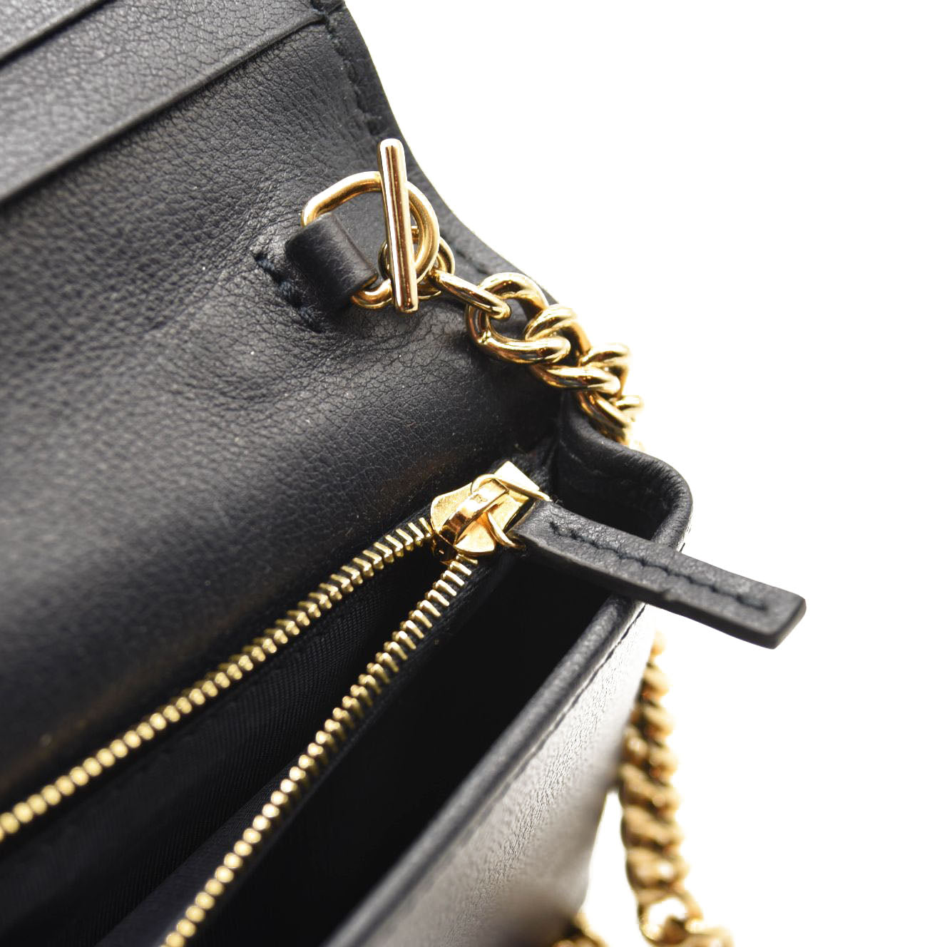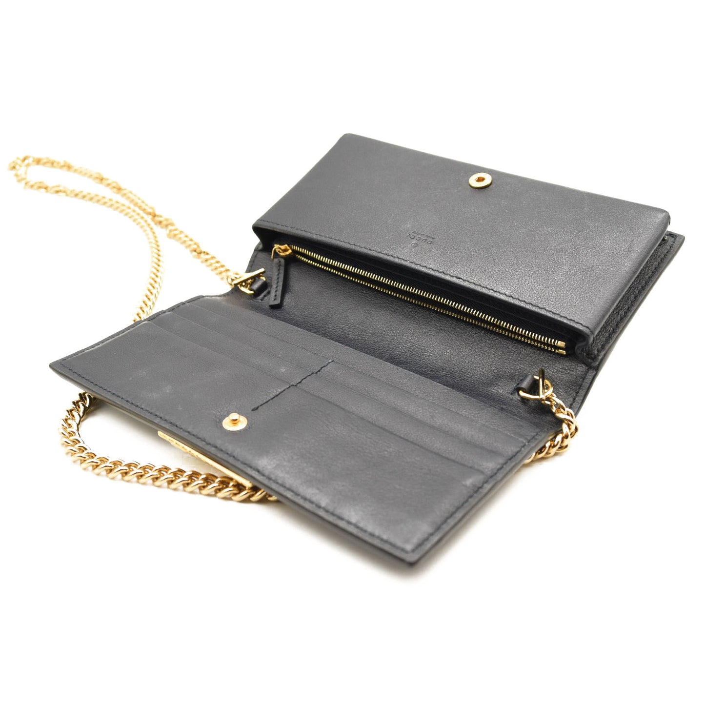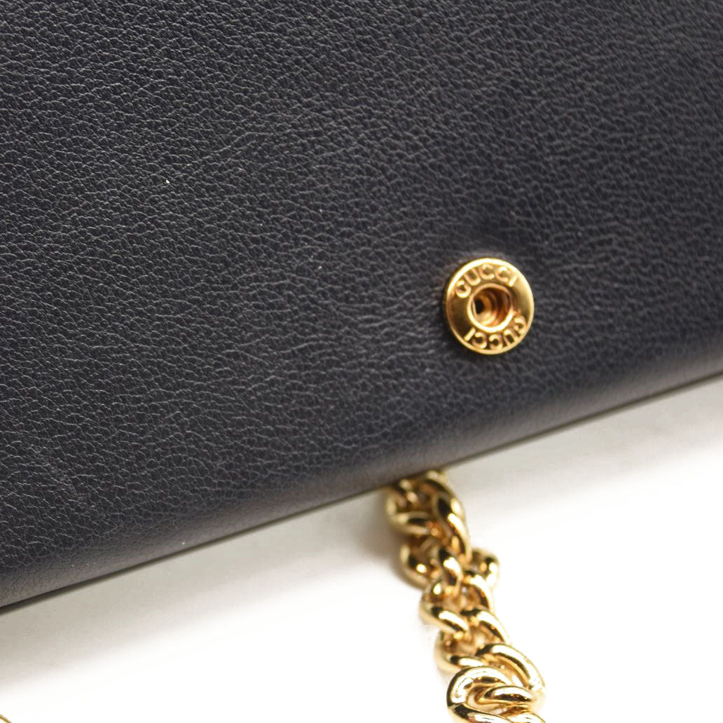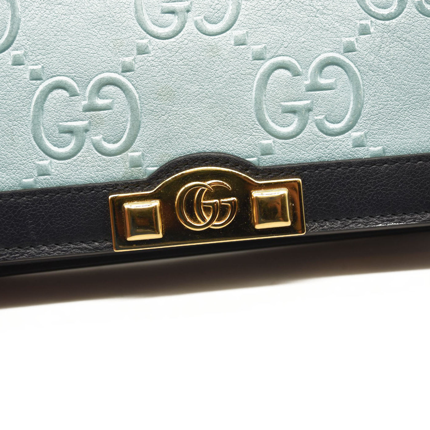 GUCCI BLUE GG EMBOSSED LEATHER CHAIN WALLET