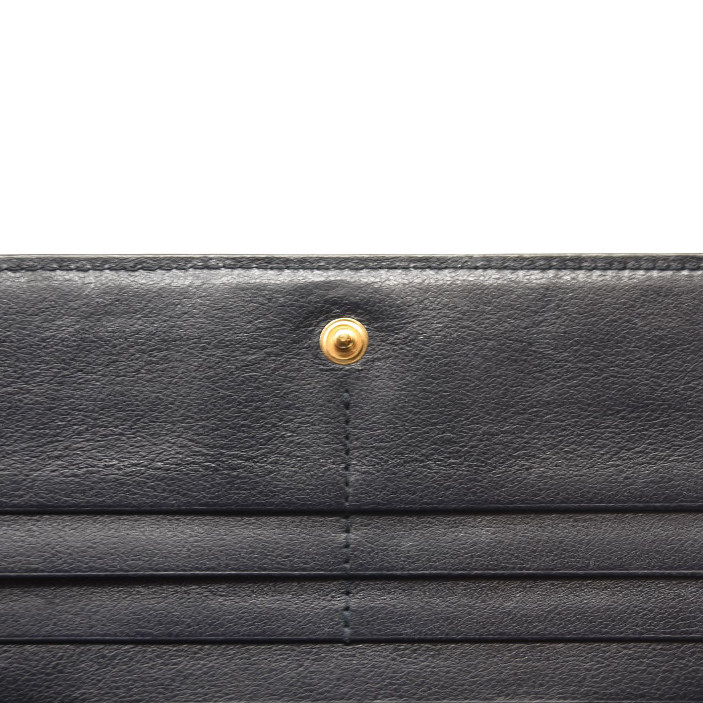 This blue Gucci GG embossed leather chain wallet is crafted in Italy. Boasting a two tone design of blue and navy, it features a detachable chain strap, fold over top, signature gold tone plaque and a snap fastening. The interior boasts six internal card slots and zip, and slip pockets. To misquote Oscar Wilde, 'We find it harder and harder every day to live up to our blue Gucci wallet.' It is, after all, perfect.