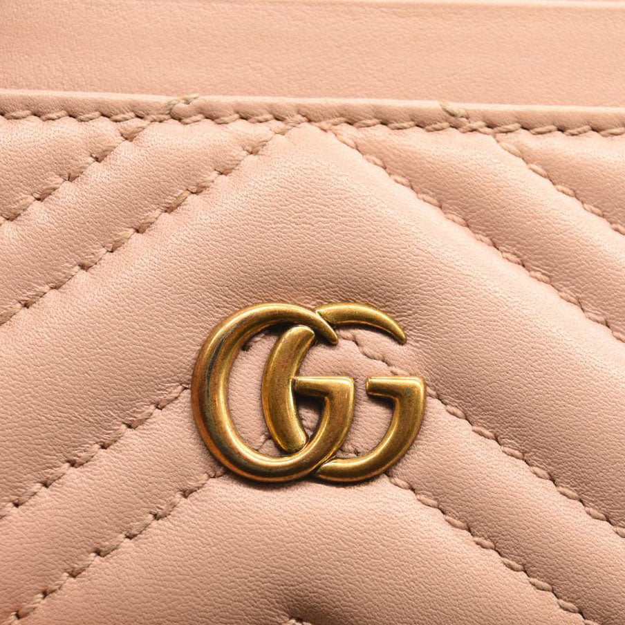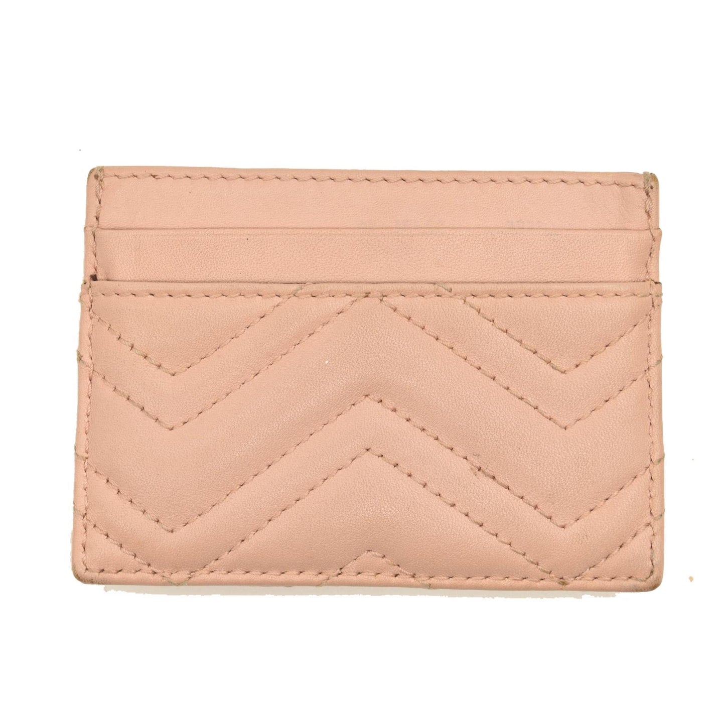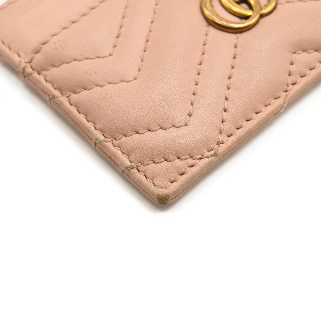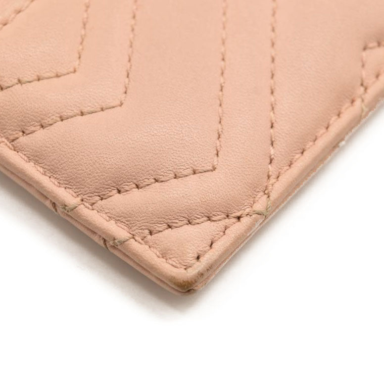 GUCCI Calfskin Matelasse GG Marmont Card Holder Perfect Pink