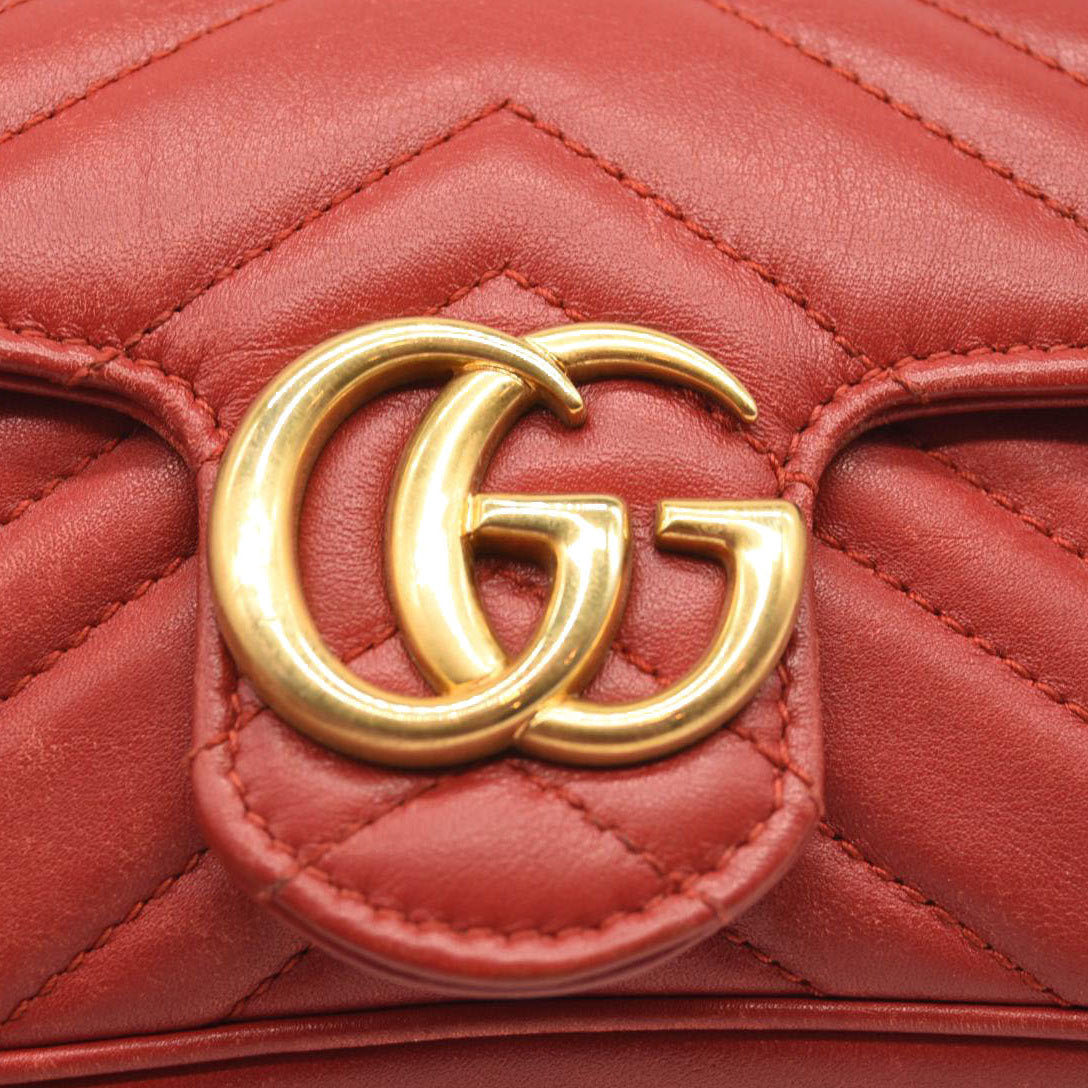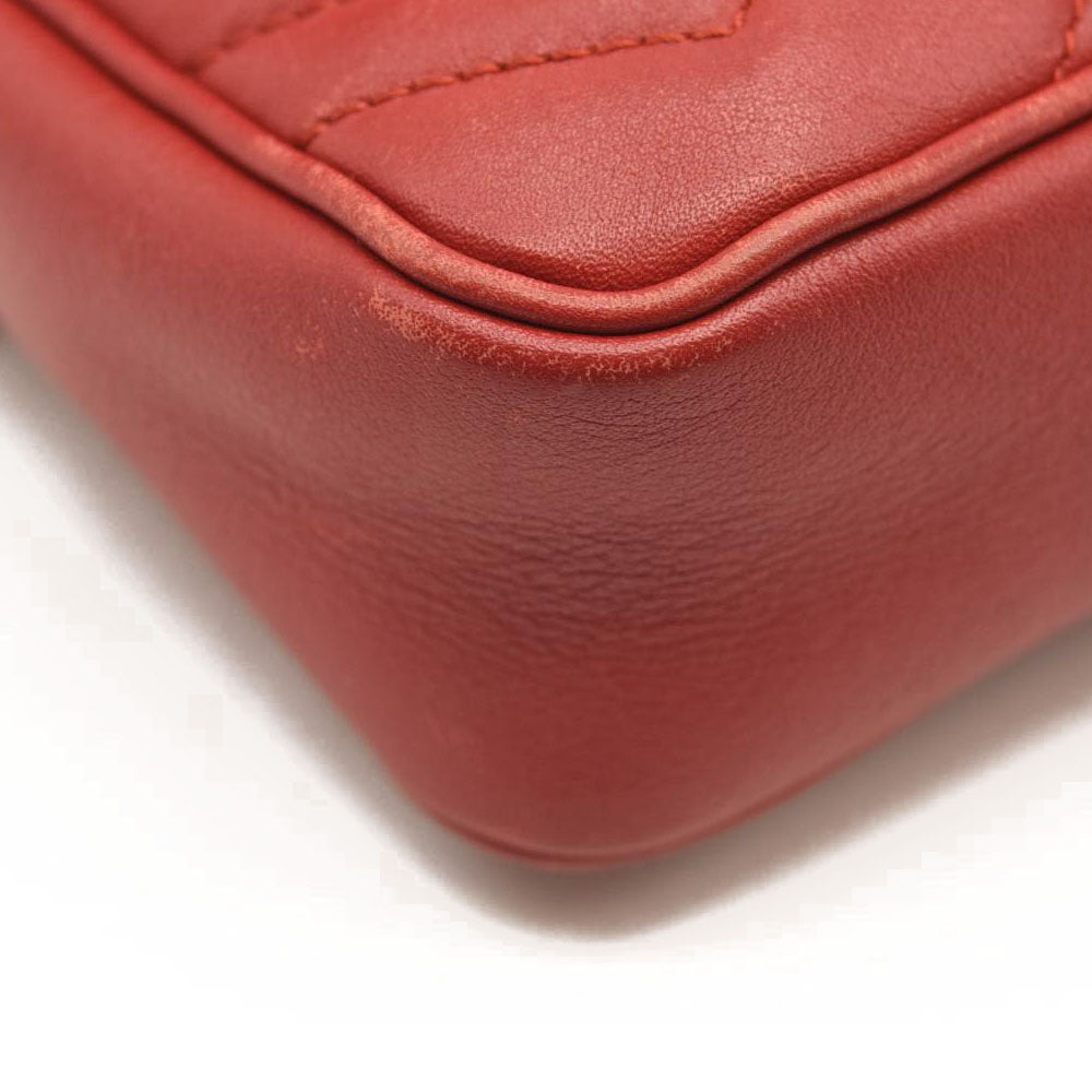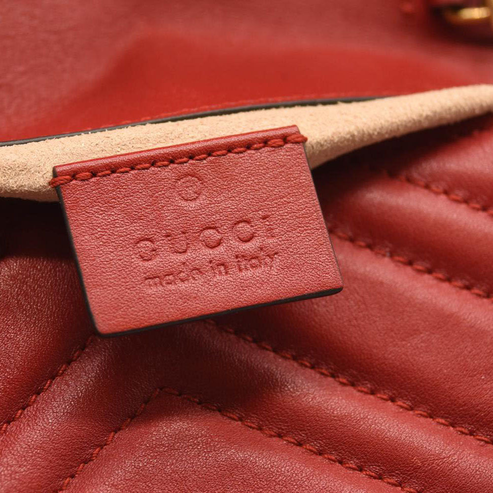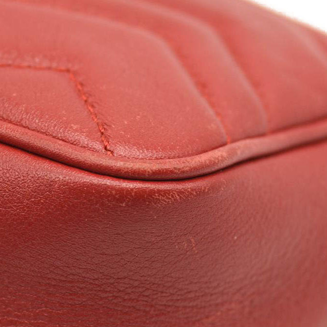 GUCCI Calfskin Matelasse Small GG Marmont Shoulder Bag Hibiscus Red