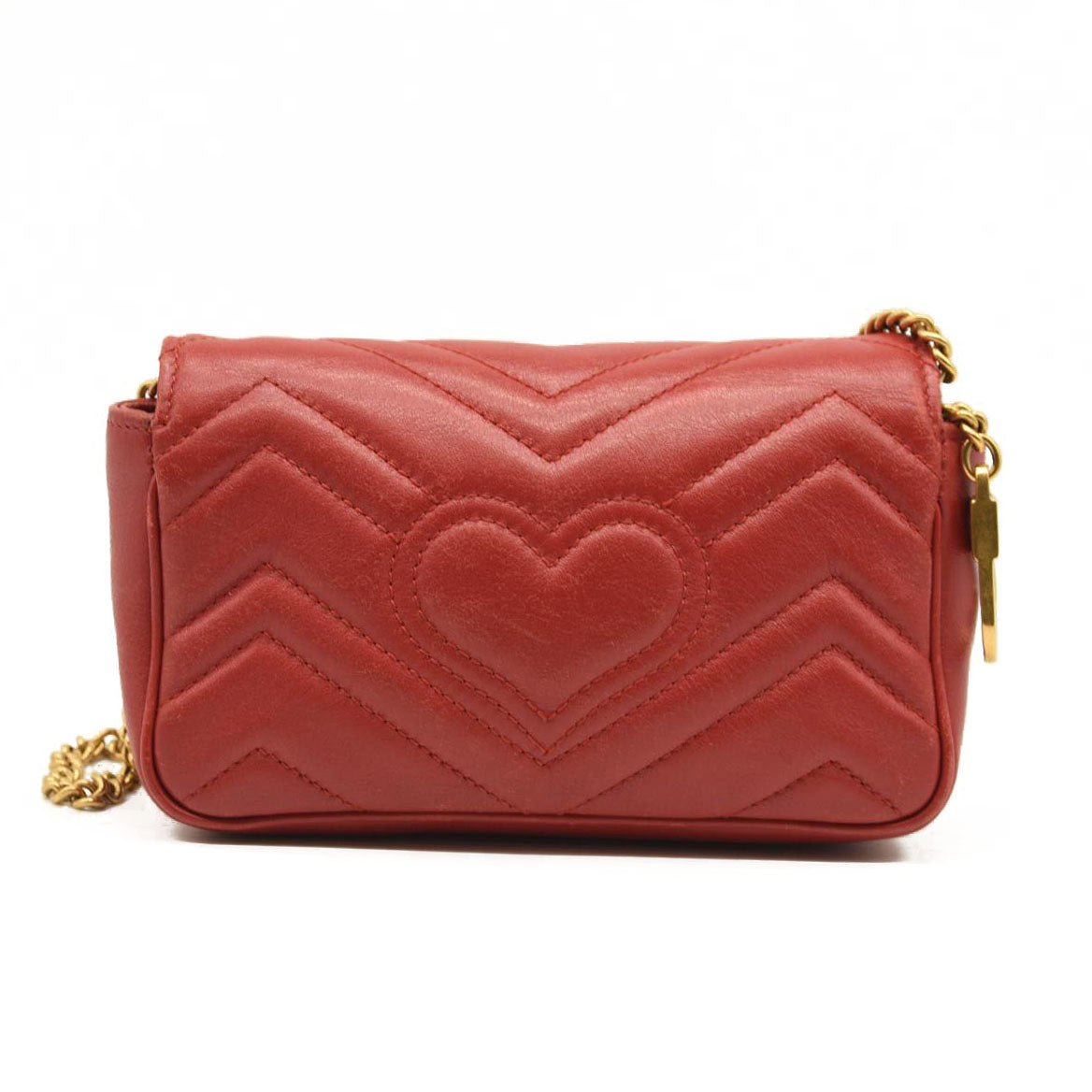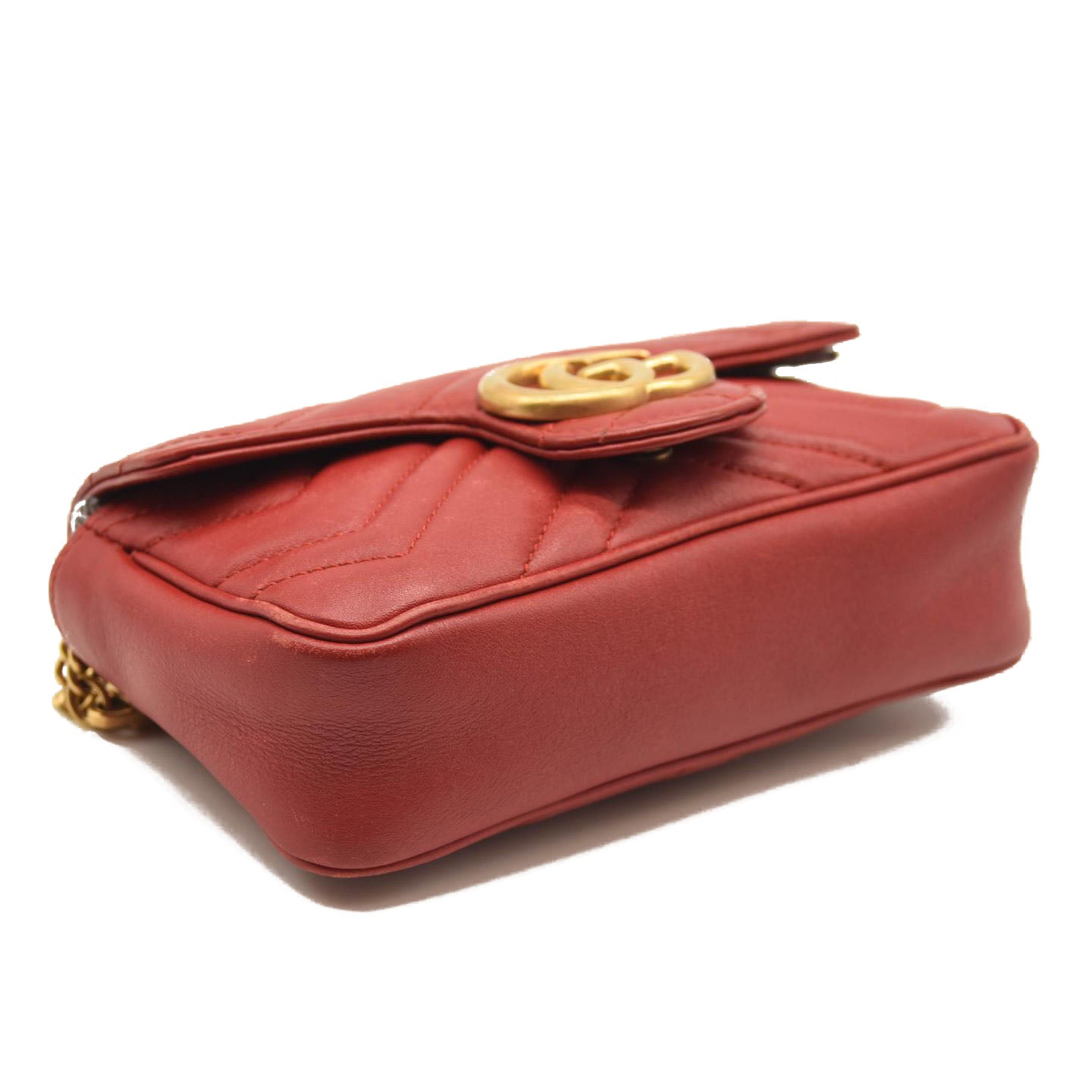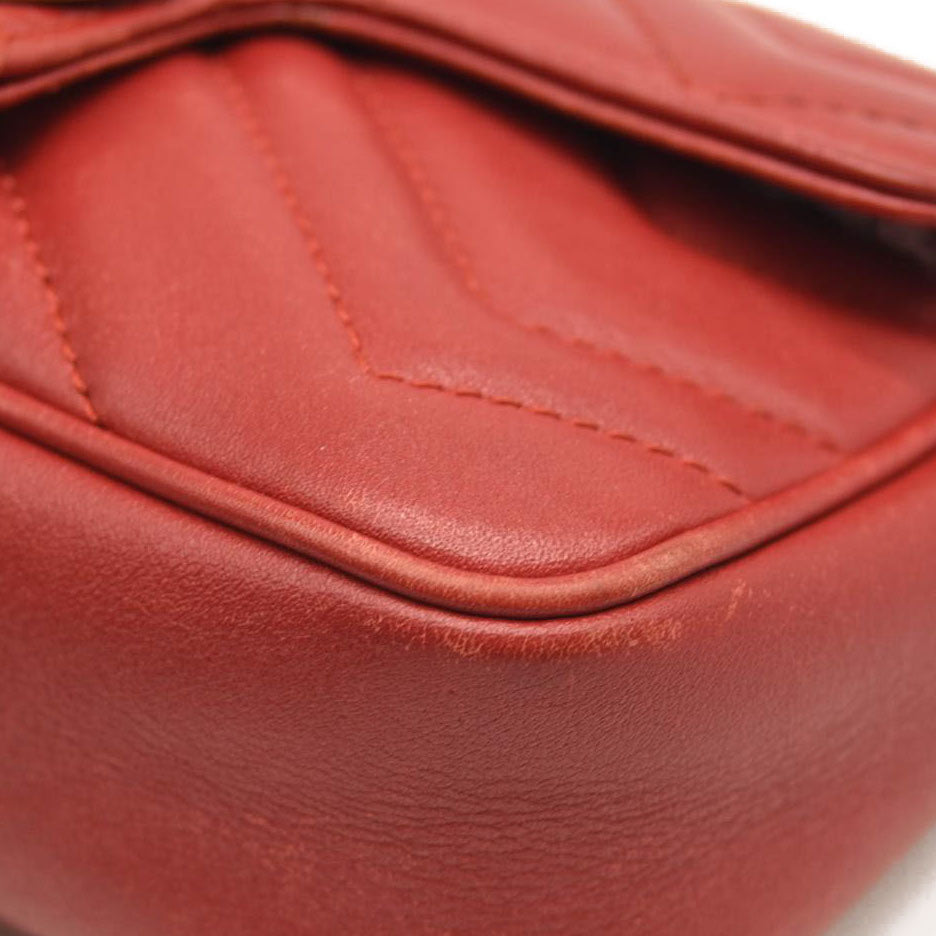 GUCCI Calfskin Matelasse Small GG Marmont Shoulder Bag Hibiscus Red