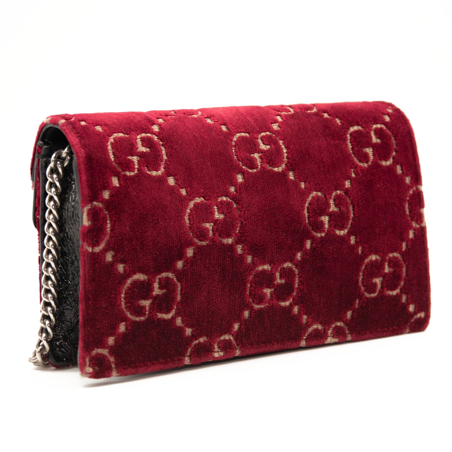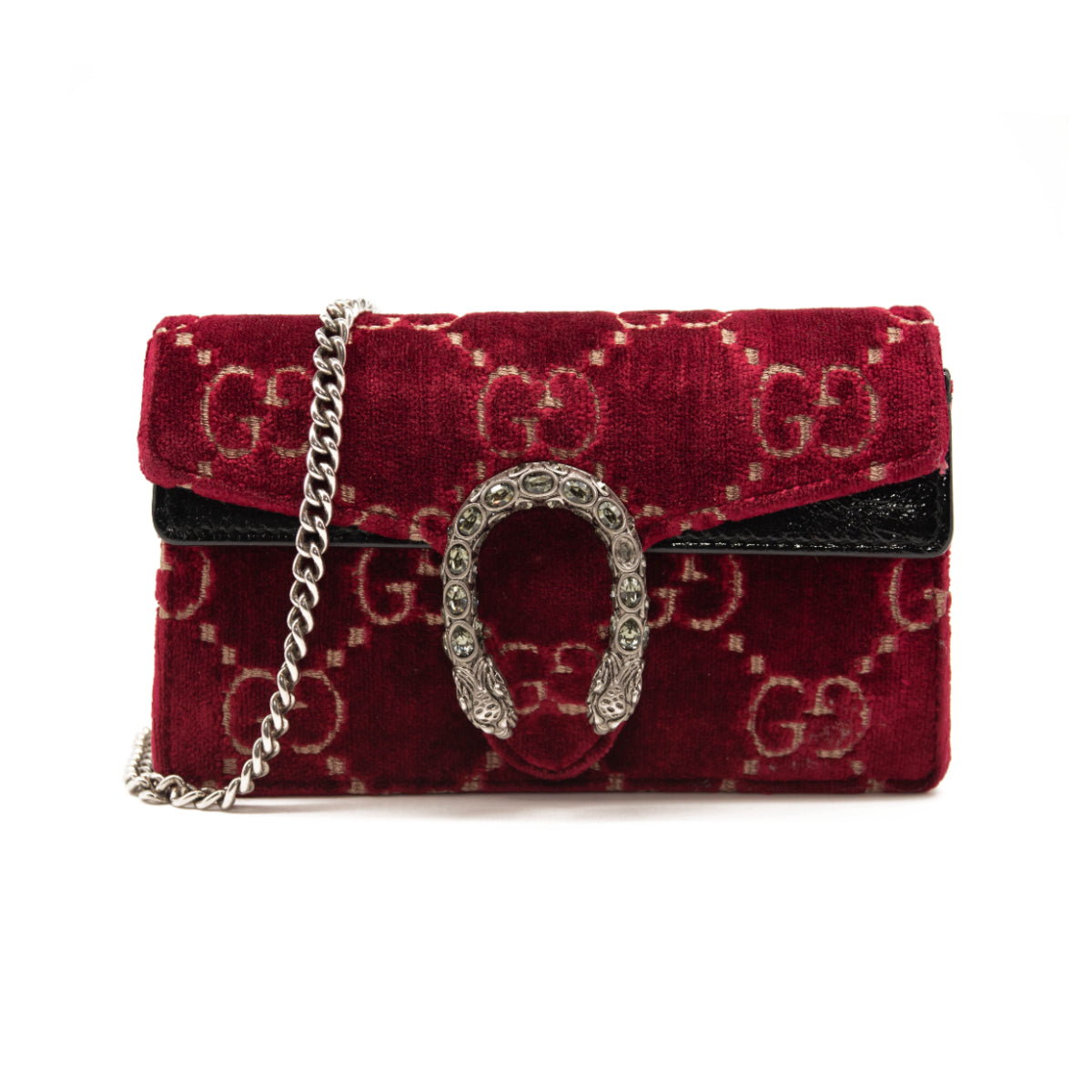 Gucci Dionysus GG Super Mini Red Velvet Crossbody Bag WOC Chain Wallet