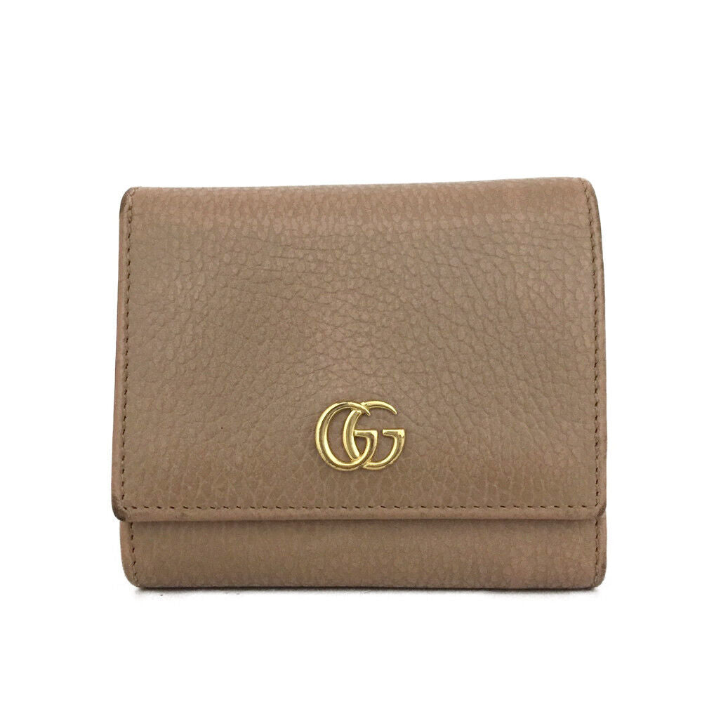 GUCCI Dollar Calfskin GG Marmont Card Case Beige