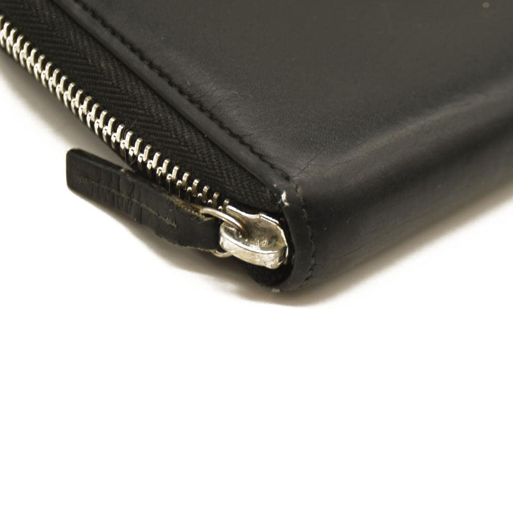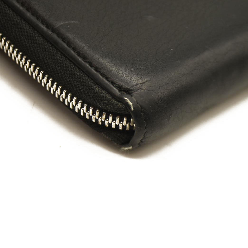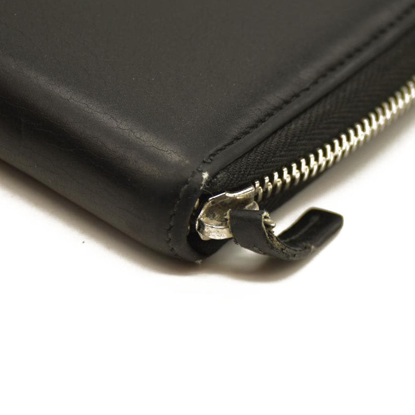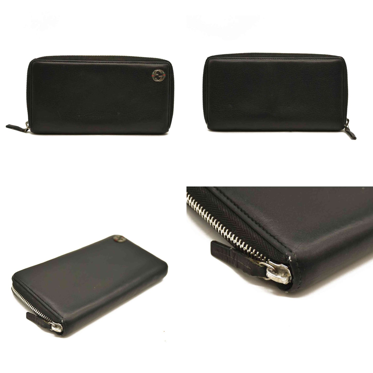 This is an authentic GUCCI Dollar Calfskin GG Zip Around Wallet in Black. This stylish clutch wallet is crafted of textured calfskin leather in black with a small gold interlocking GG logo. The 3/4 wrap around zipper opens with a tassel zipper pull to a matching leather interior with bill slots, a zippered coin compartment and card slots.