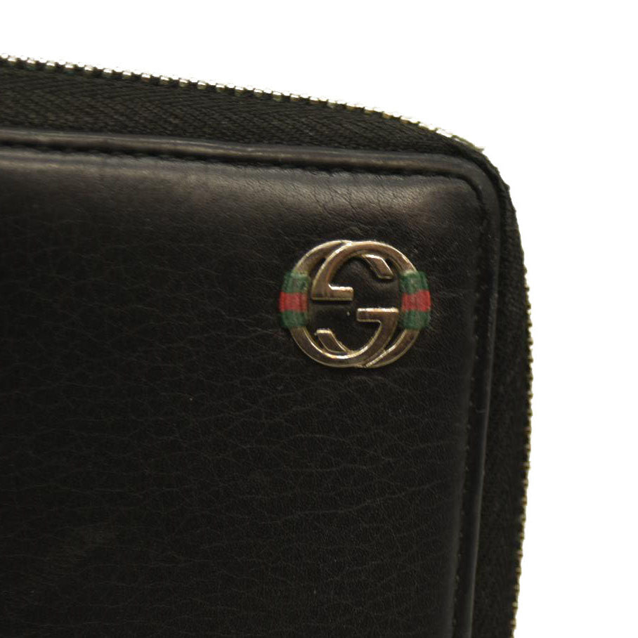 Gucci Dollar Calfskin GG Zip Around Wallet Black