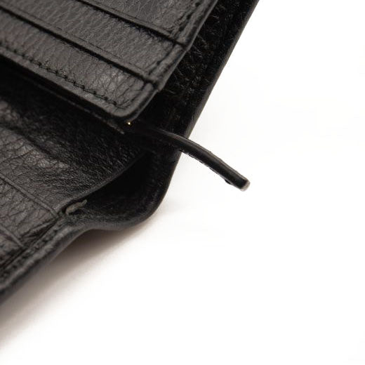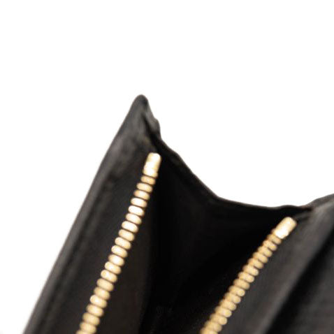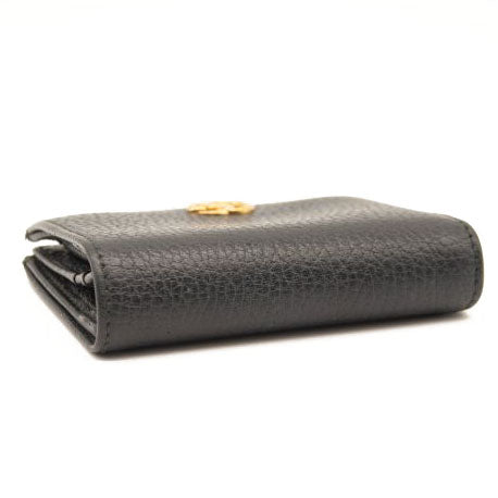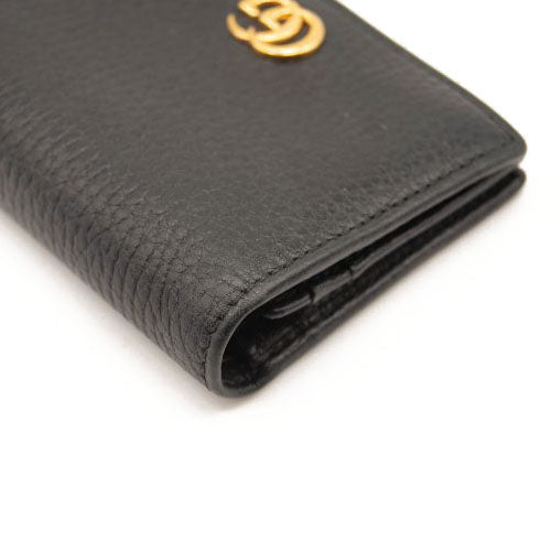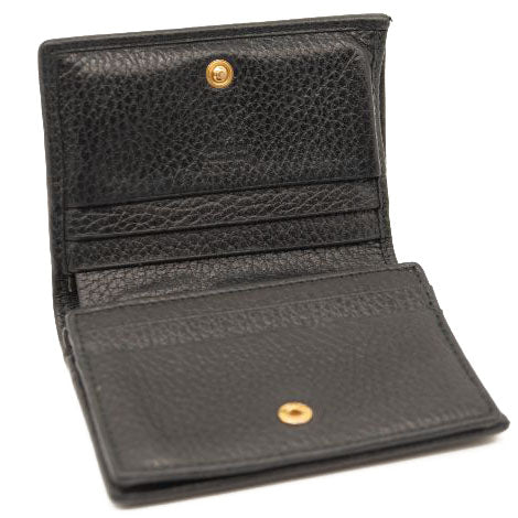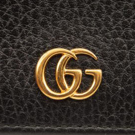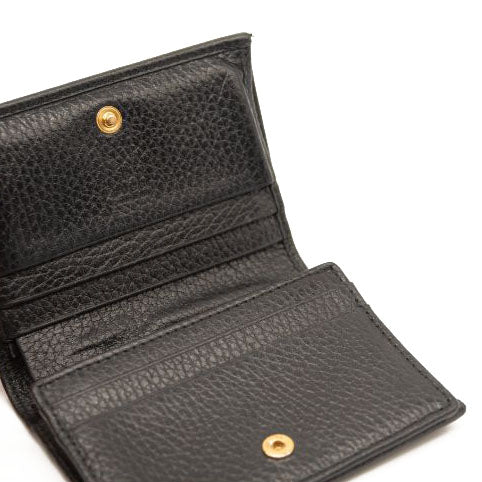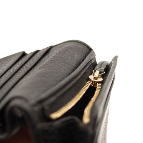 House your essentials in style with this black wallet from Gucci. Made in Italy from full-grain leather, the magnetic flap unfastens to reveal 5 card slots, a zipped coin pouch, and a note compartment.