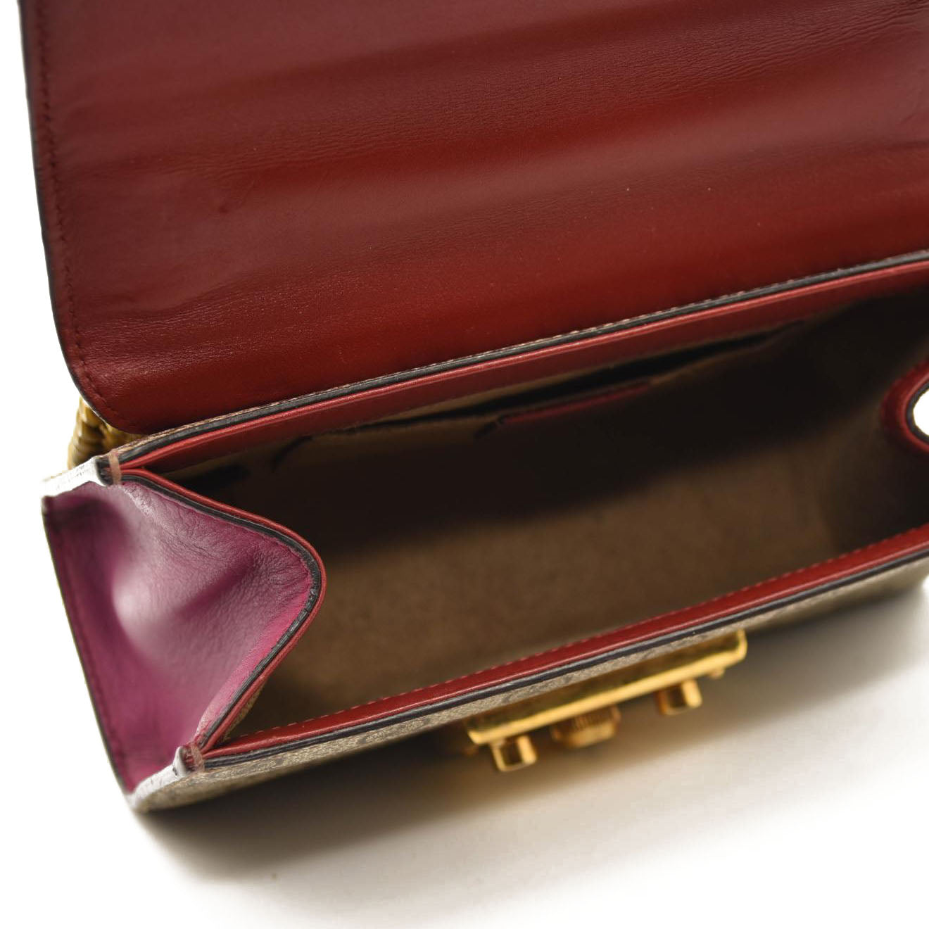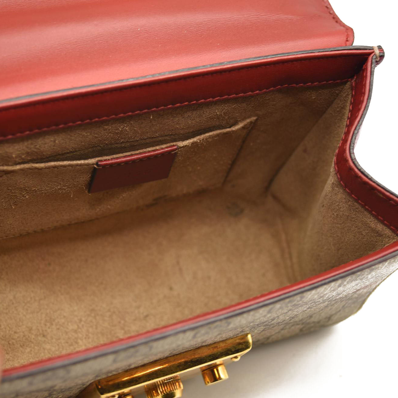 GUCCI GG Supreme Monogram Calfskin Small Padlock Shoulder Bag Beige Hibiscus Red New Rosette