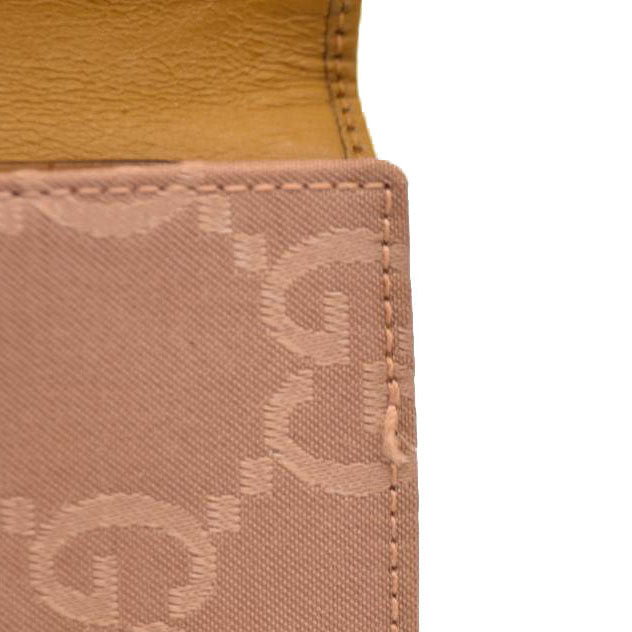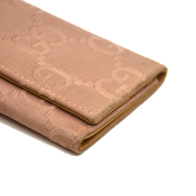 This is an authentic GUCCI Guccissima 6 Key Holder Case in Pink. This stylish key holder is crafted of Gucci GG monogram patterned fabric. The case opens to a beige-orange flat leather interior with six brass key rings and as the keys hang externally the two sides snap shut. This is a marvelous key case that ids practical and chic, from Gucci!