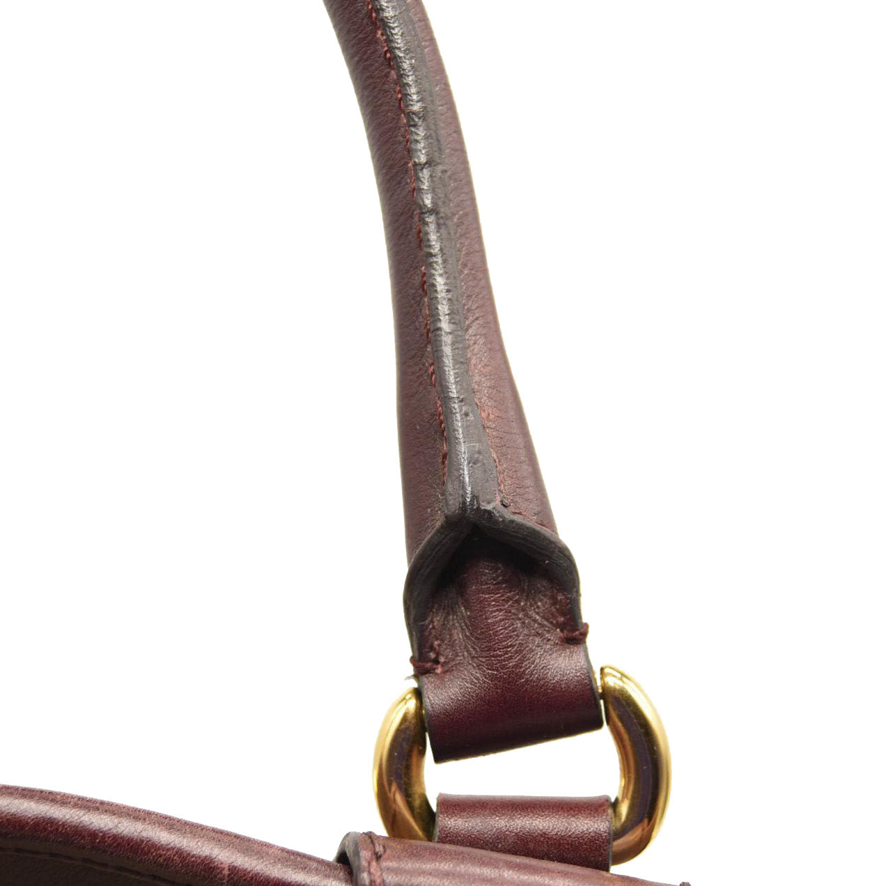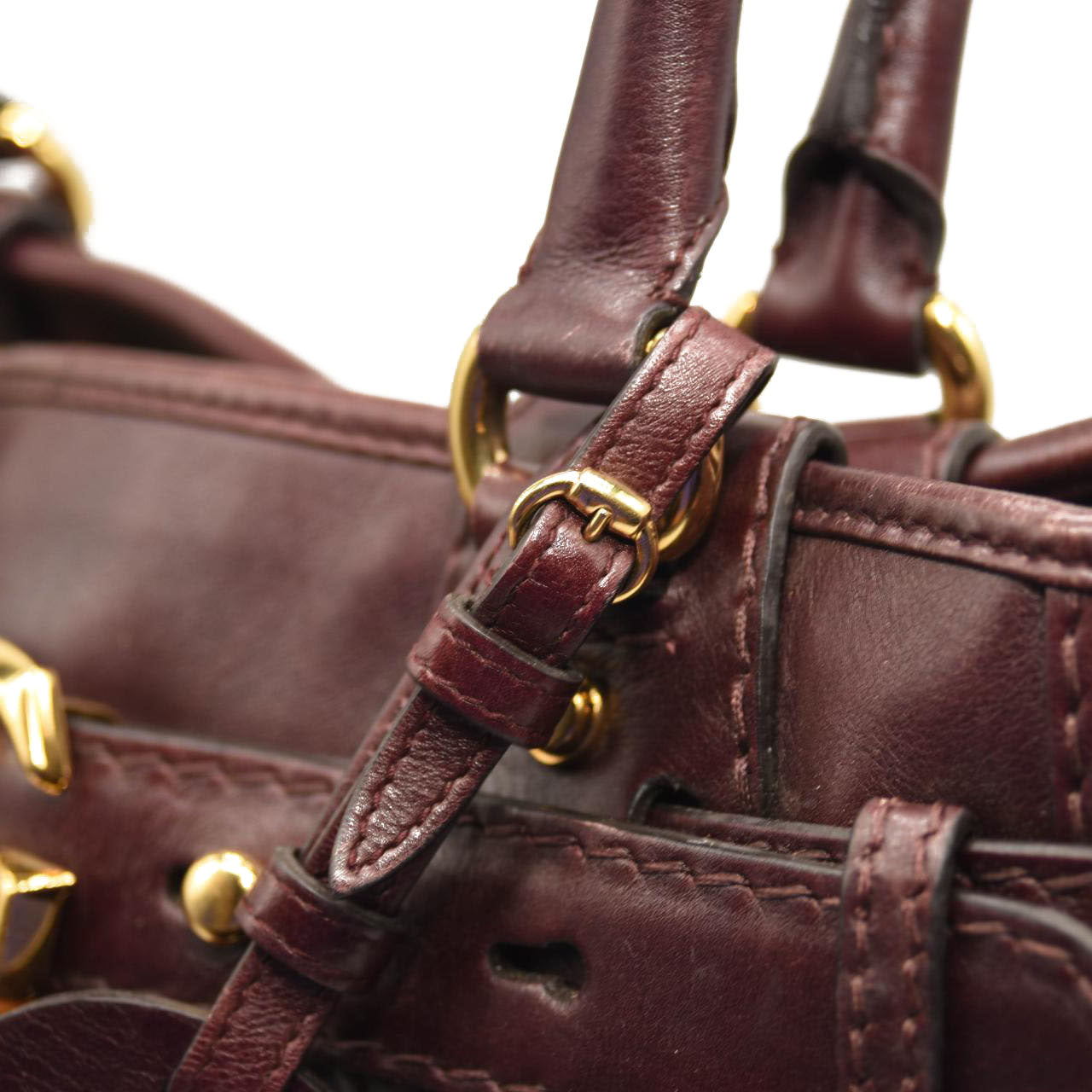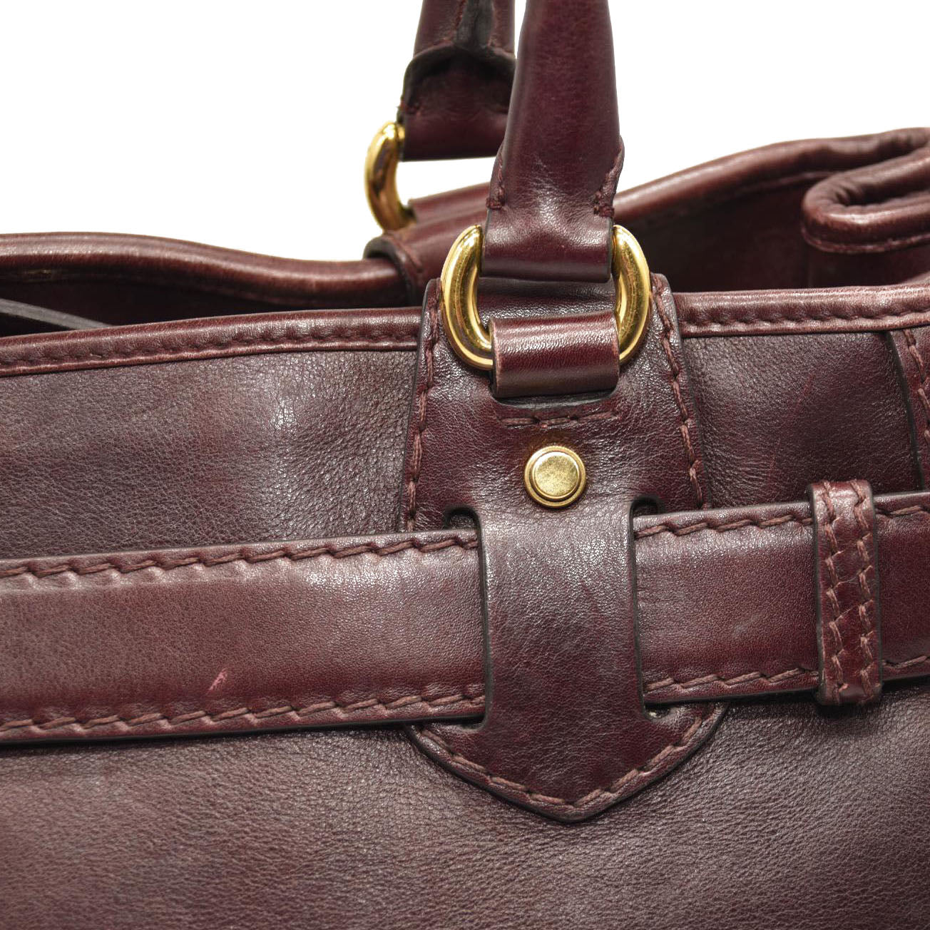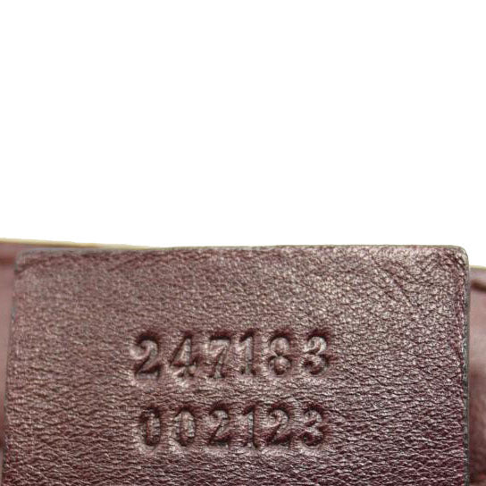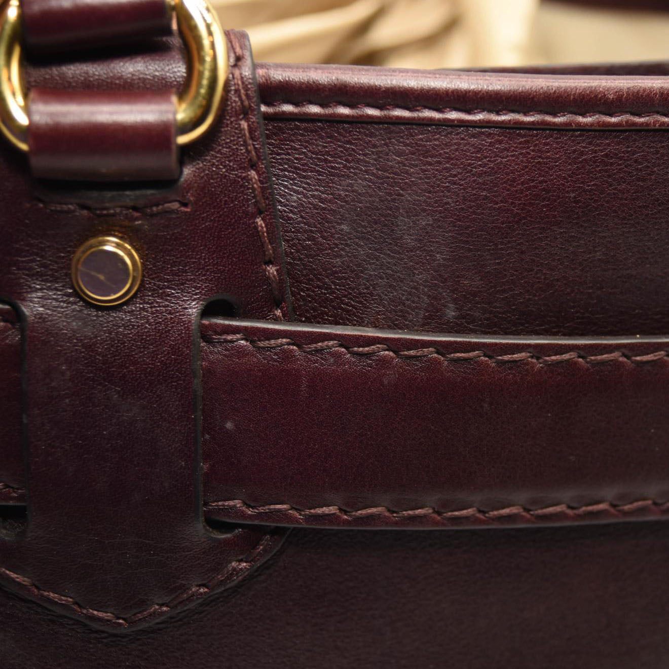 This is an authentic GUCCI Leather Large GG Running Tote in Burgundy. This stylish tote is crafted of fine leather in Burgundy. The handbag features rolled leather top handles and a top belt with loops with a brass Gucci interlocking GG buckle. This shoulder bag opens to a spacious leather interior for all of your day or evening necessities with the sophisticated style of Gucci!