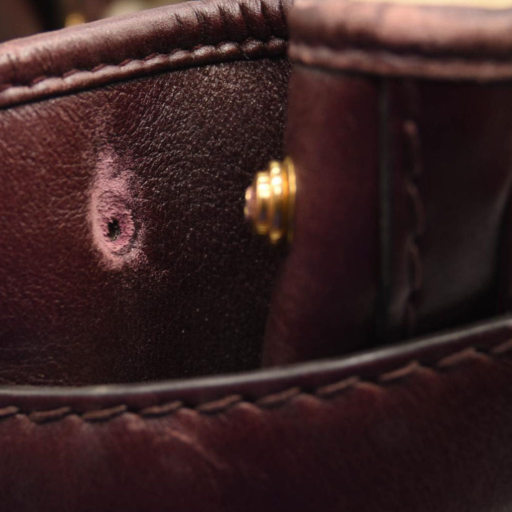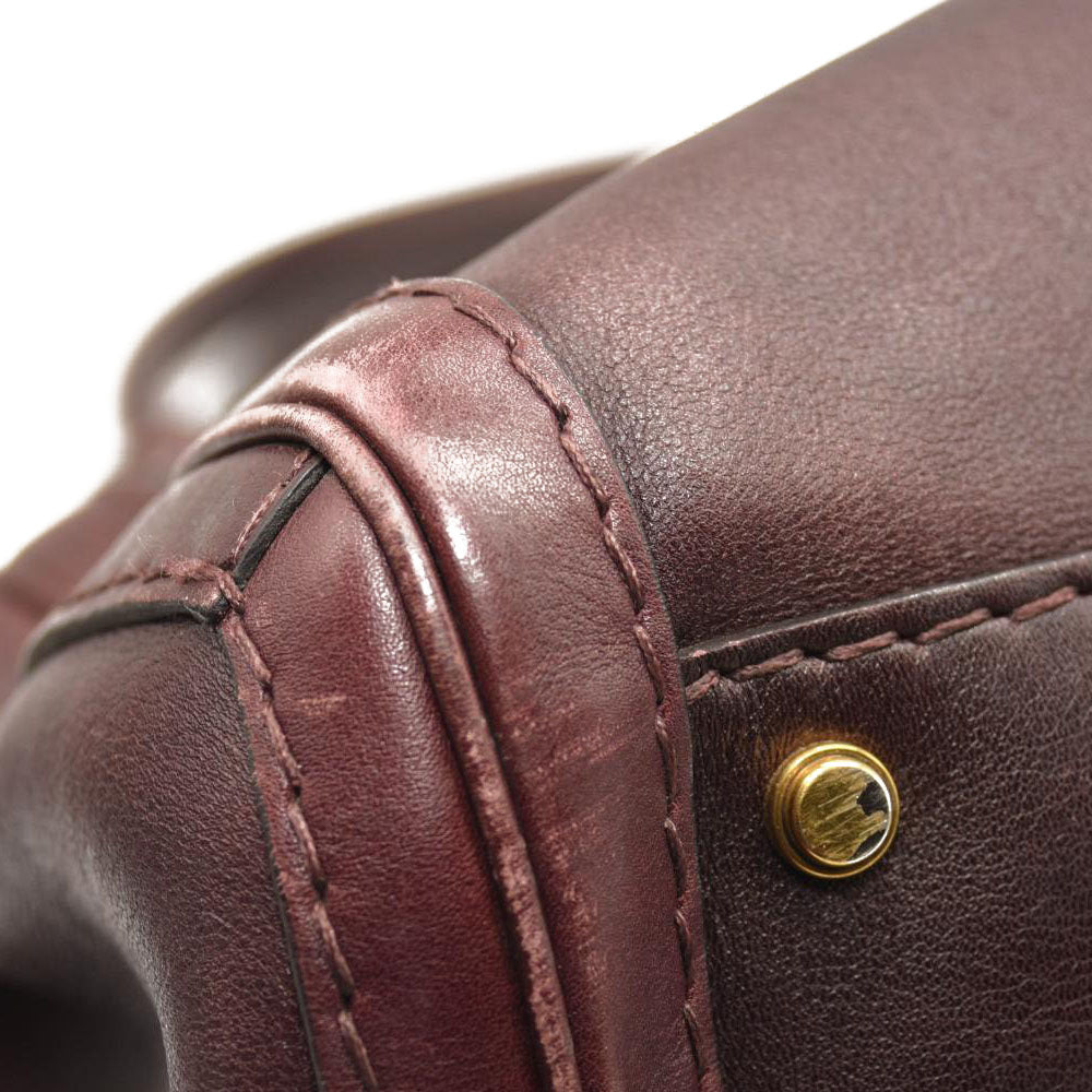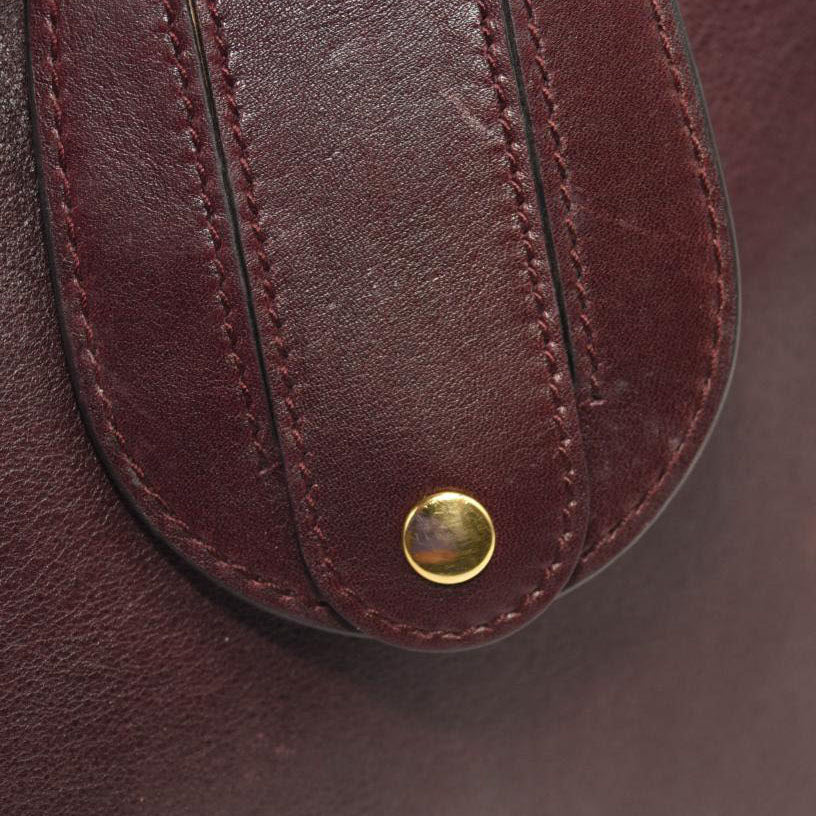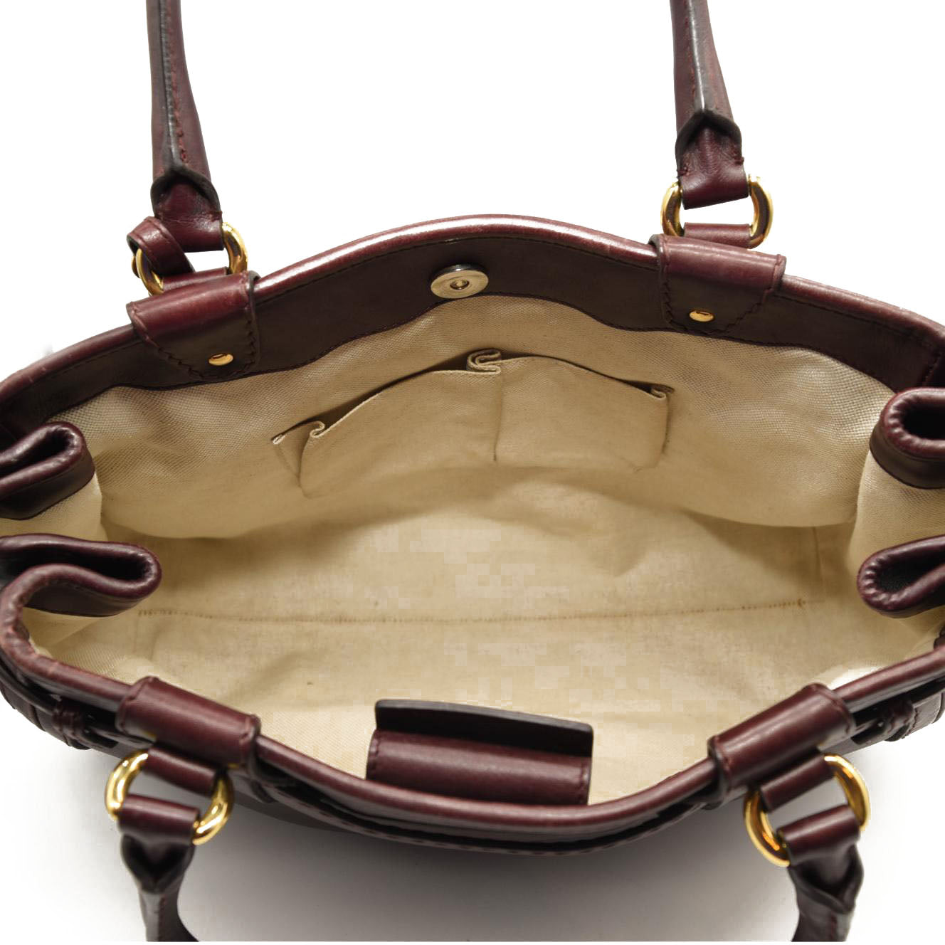 This is an authentic GUCCI Leather Large GG Running Tote in Burgundy. This stylish tote is crafted of fine leather in Burgundy. The handbag features rolled leather top handles and a top belt with loops with a brass Gucci interlocking GG buckle. This shoulder bag opens to a spacious leather interior for all of your day or evening necessities with the sophisticated style of Gucci!