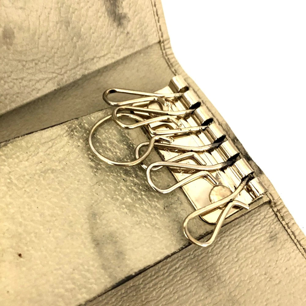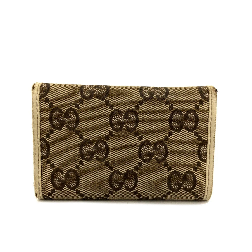 GUCCI Logo Plate GG Logo Canvas 6 Ring Key Case Beige
