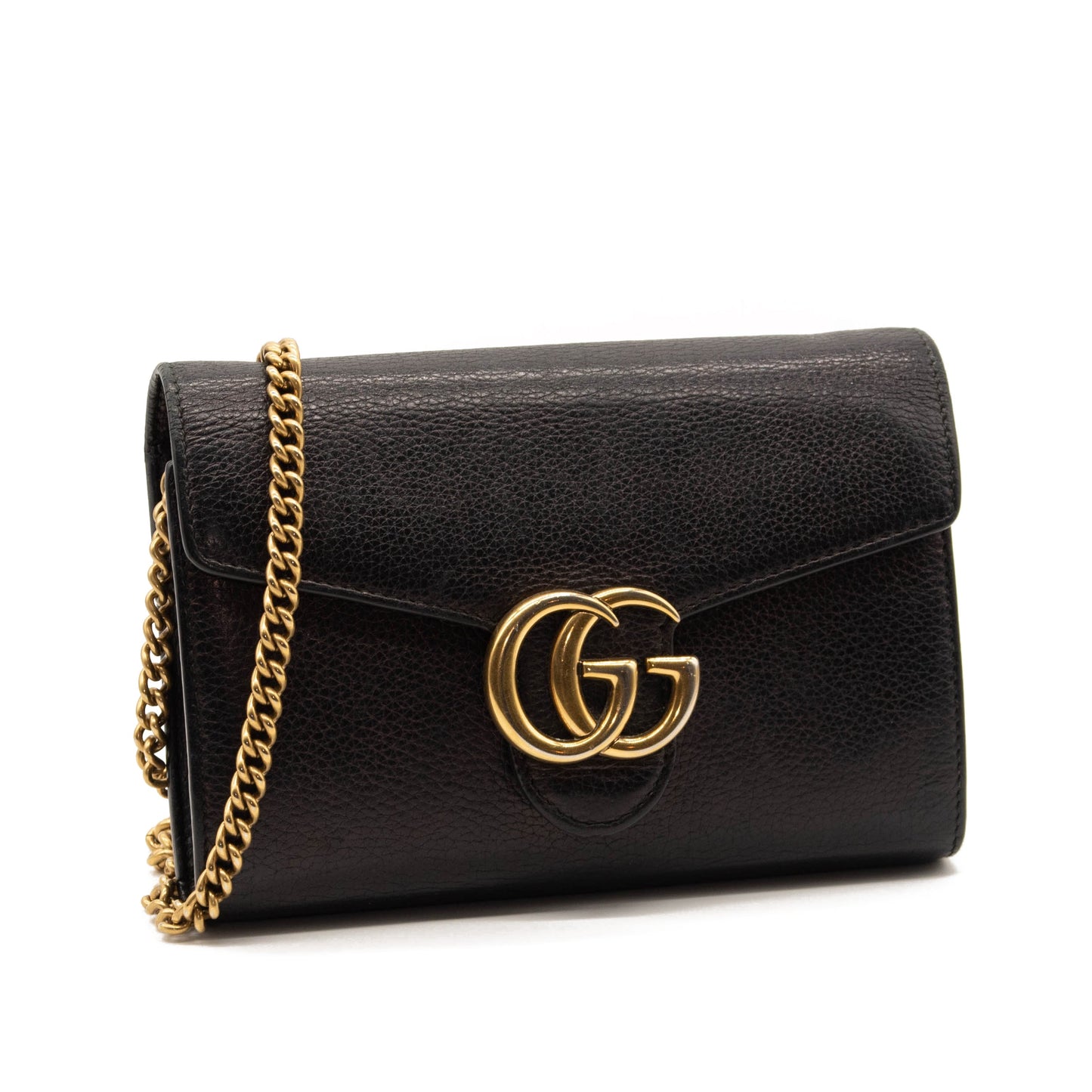 Gucci Marmont Chain Wallet Black Leather Shoulder Bag WOC GG Crossbody