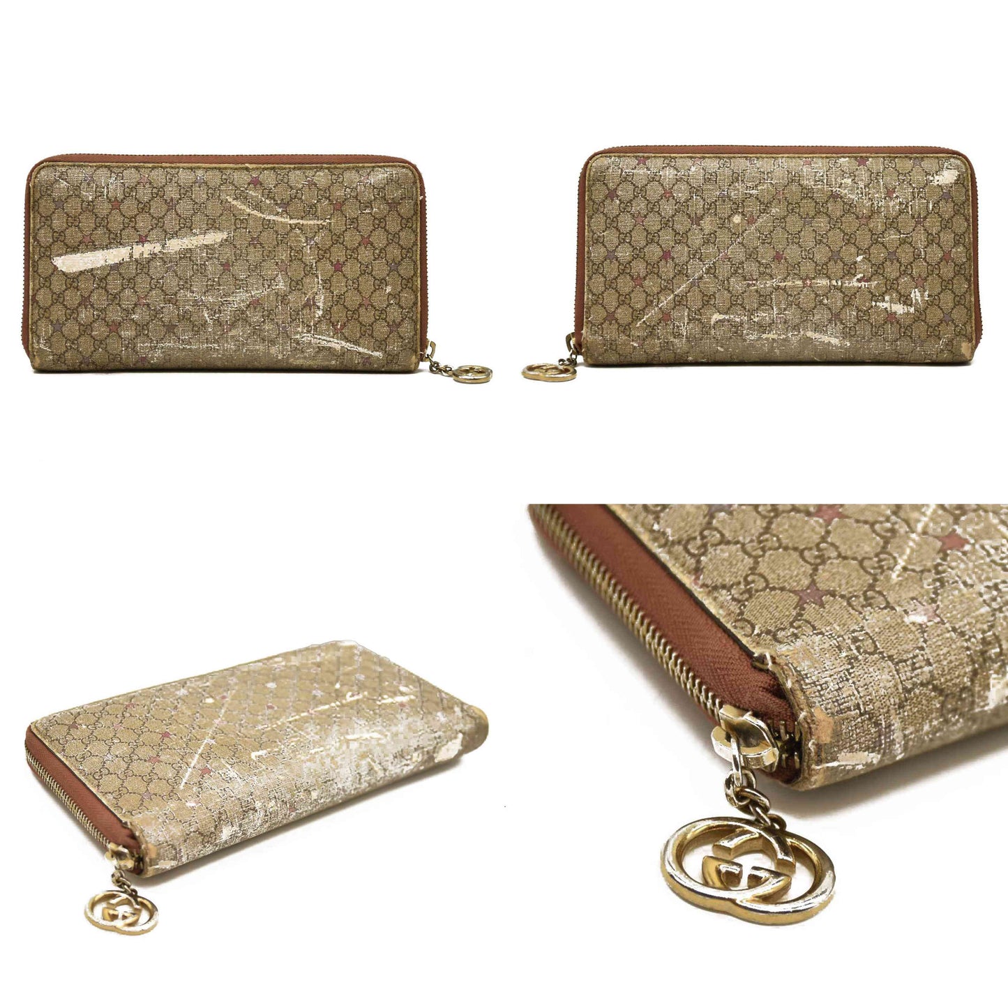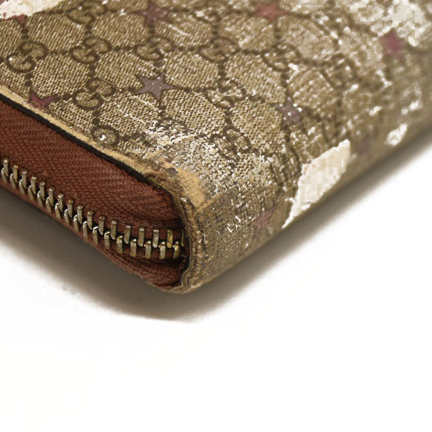 GUCCI Micro GG Supreme Star PVC Zip Around Long Wallet Beige