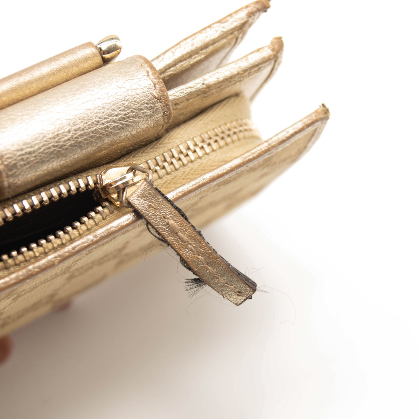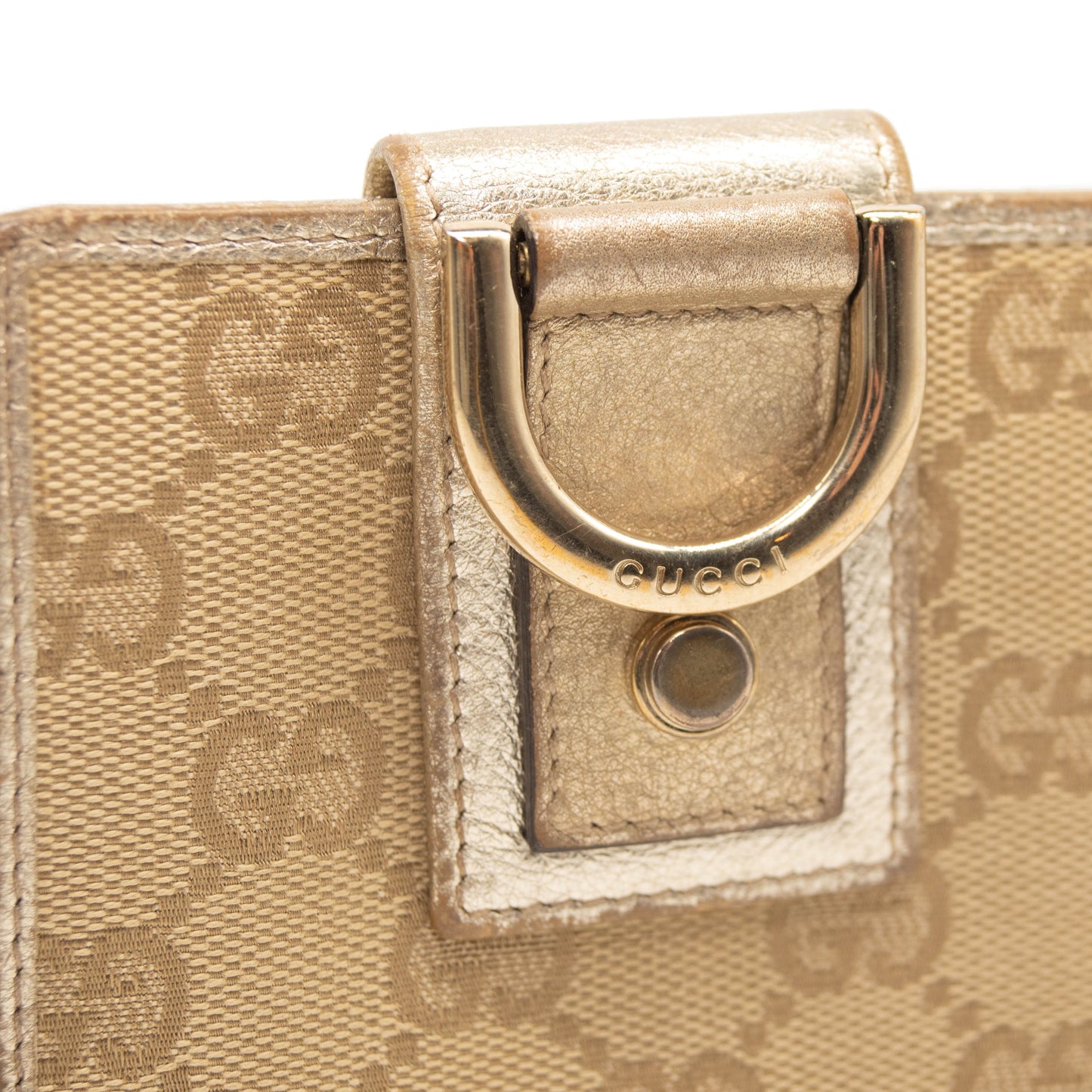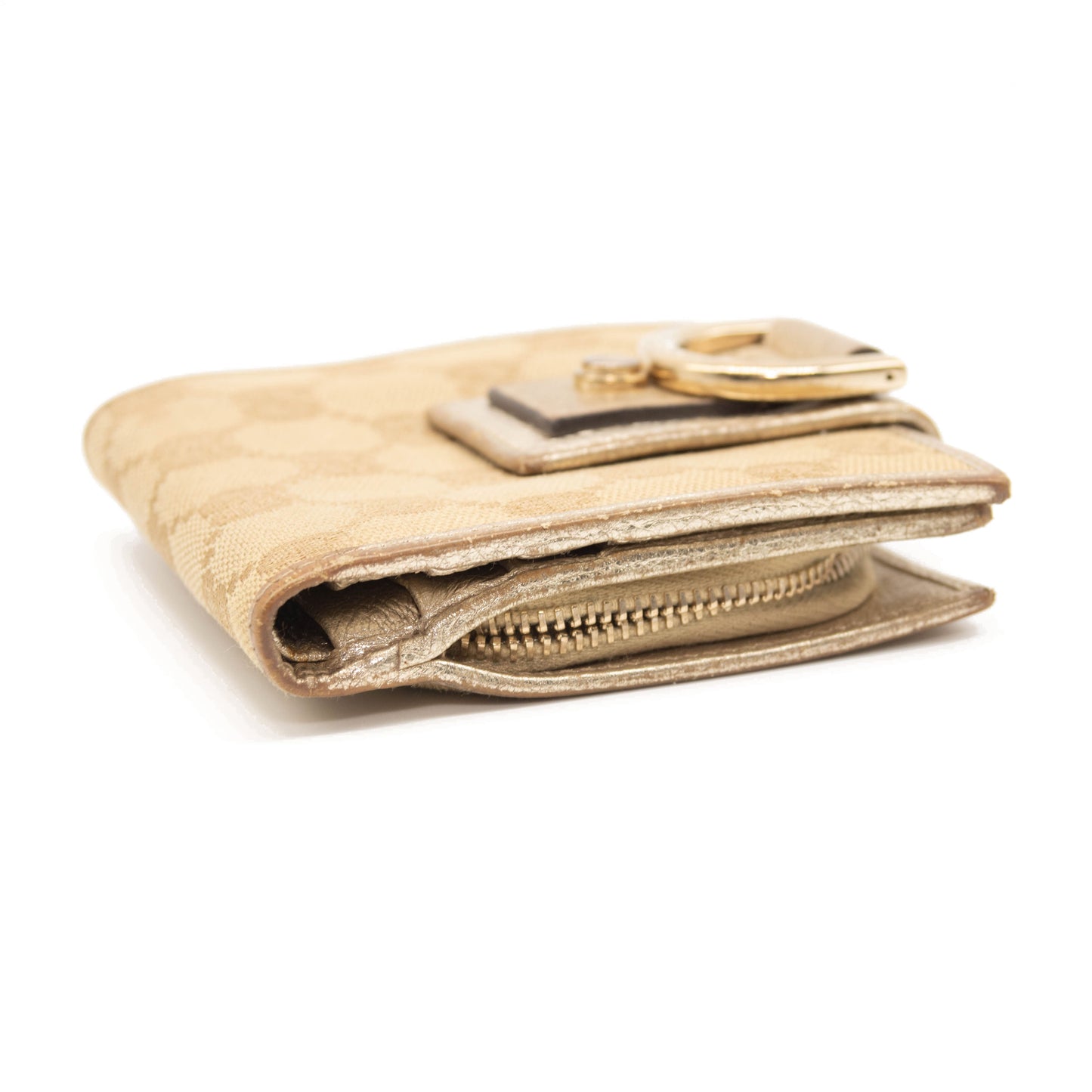 Gucci Monogram D Ring Compact Wallet Abbey Gold/Beige