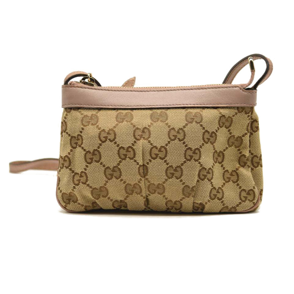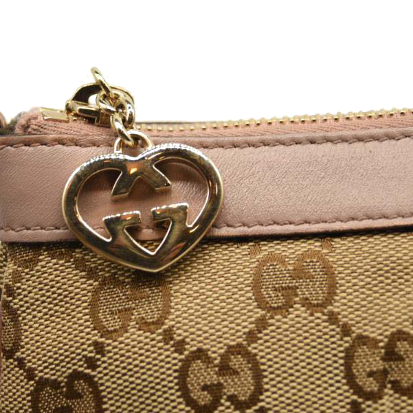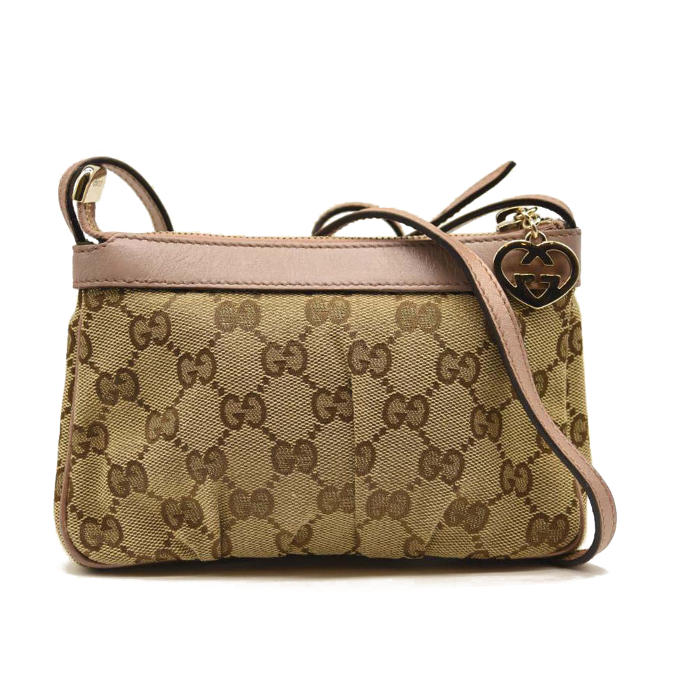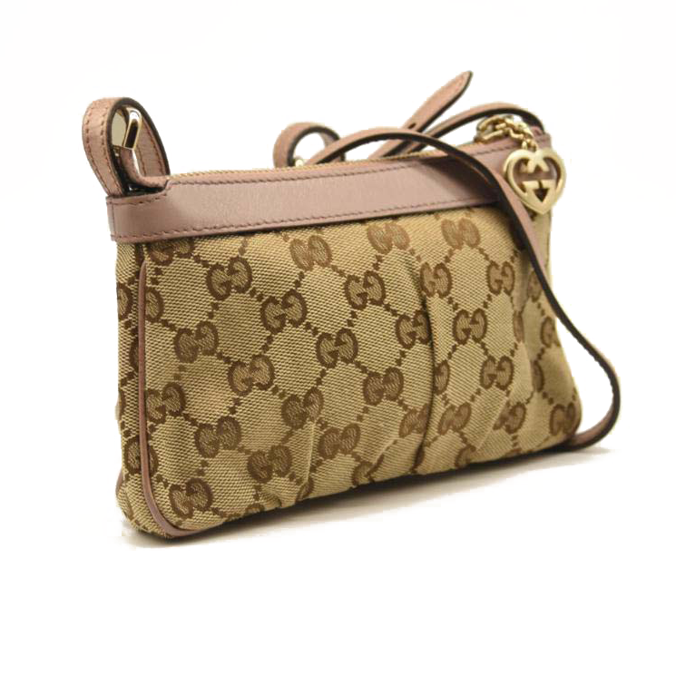 GUCCI Monogram GG Heart Charm Crossbody Pochette Beige