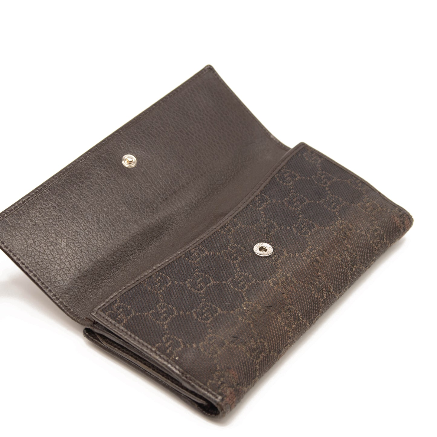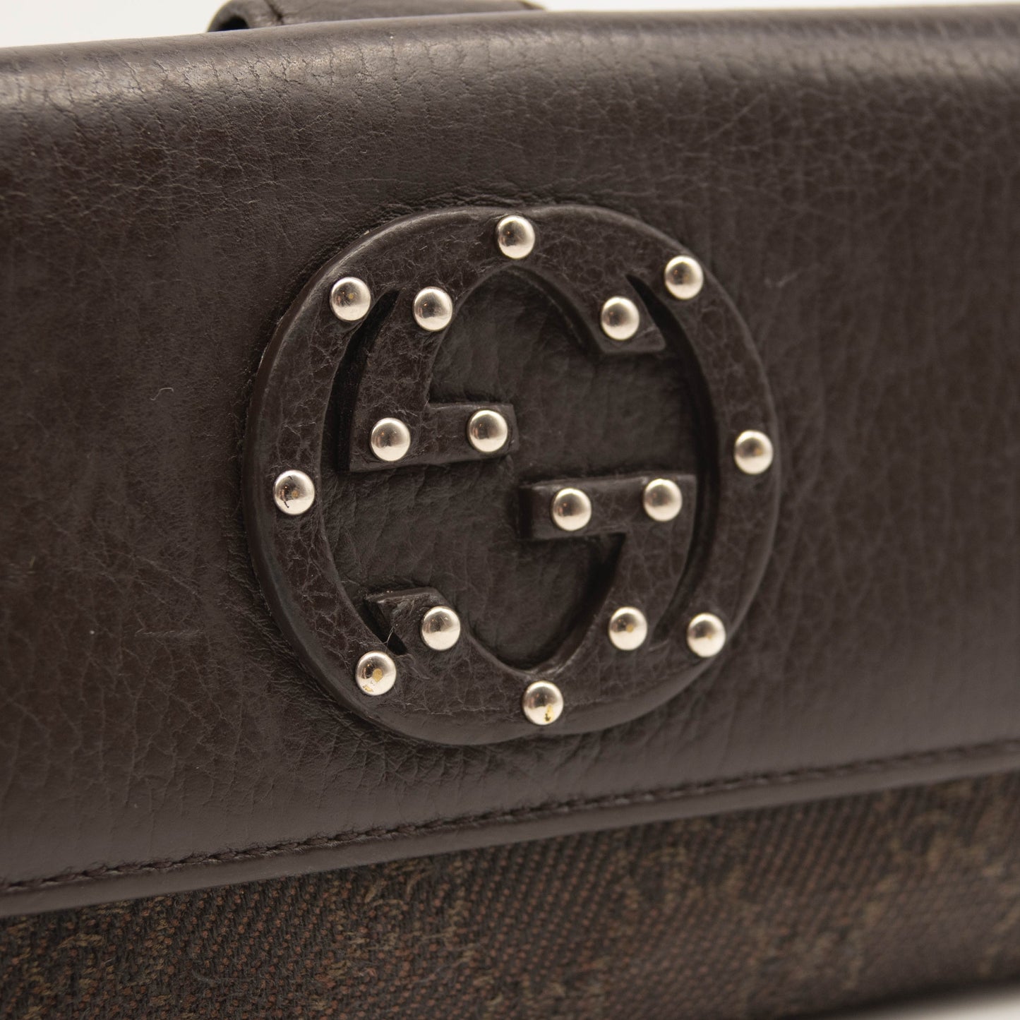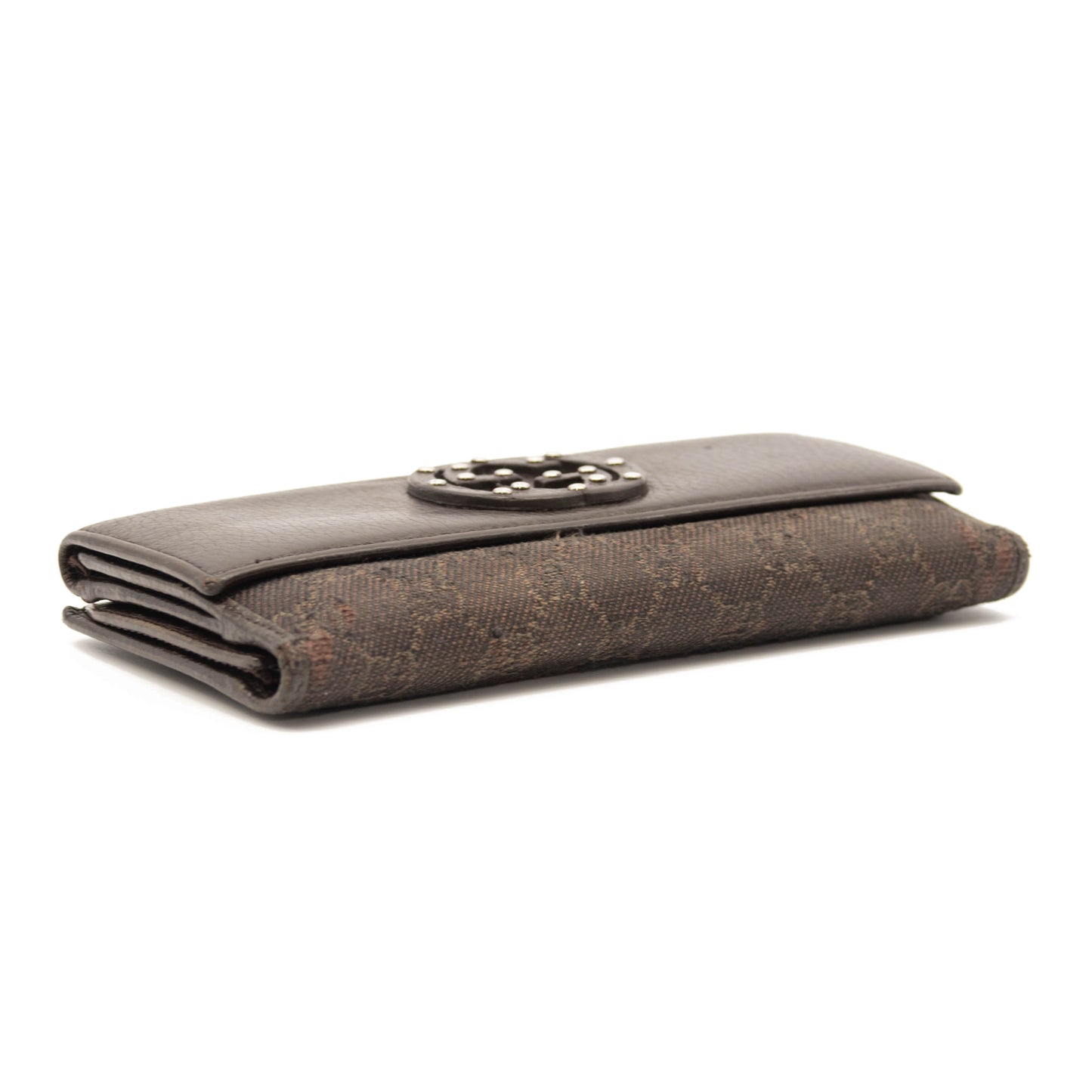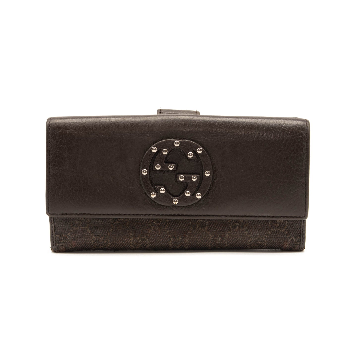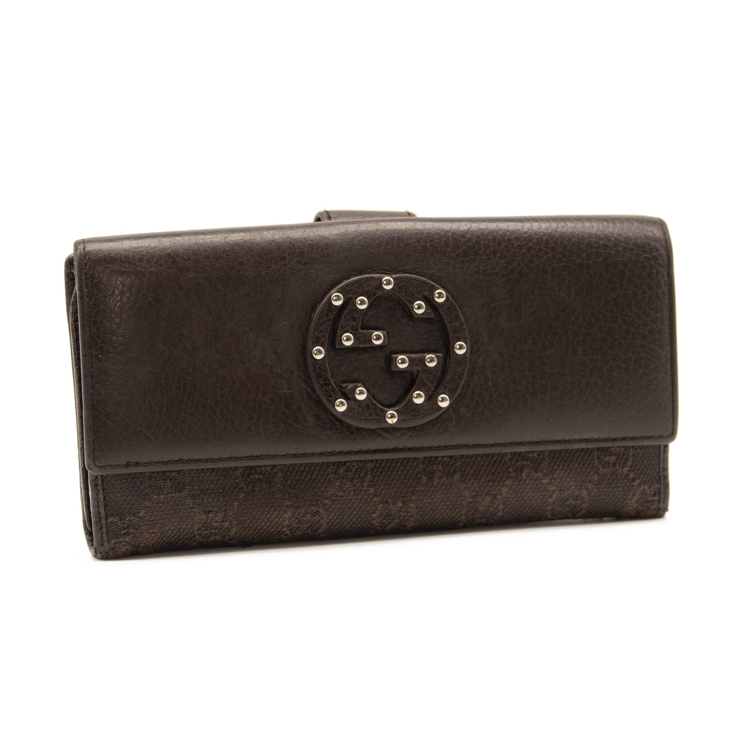 Gucci Monogram Interlocking G Continental Wallet Brown Canvas Studded Flap