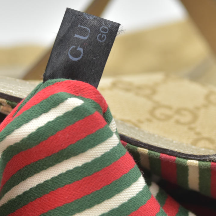 This is an authentic GUCCI Monogram Large Abbey Tote in Metallic Gold. This stylish tote is beautifully crafted of Gucci GG monogram canvas. The bag features metallic gold leather trim and matching tall top handles with polished gold plated hardware. The top is open to a red and green fabric interior with a zipper pocket and cell phone pocket.