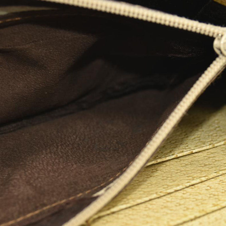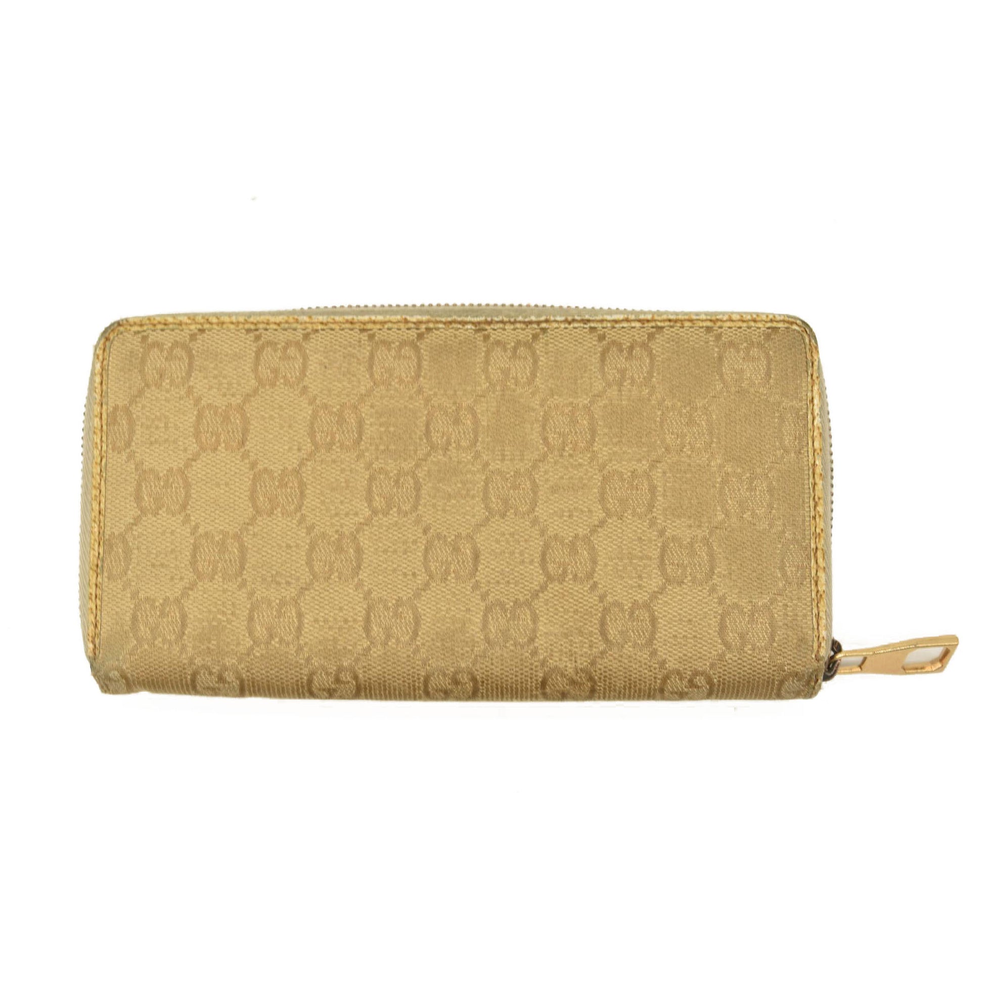 Gucci Monogram Metal Bar Zip Around Wallet Beige Ebony Cream