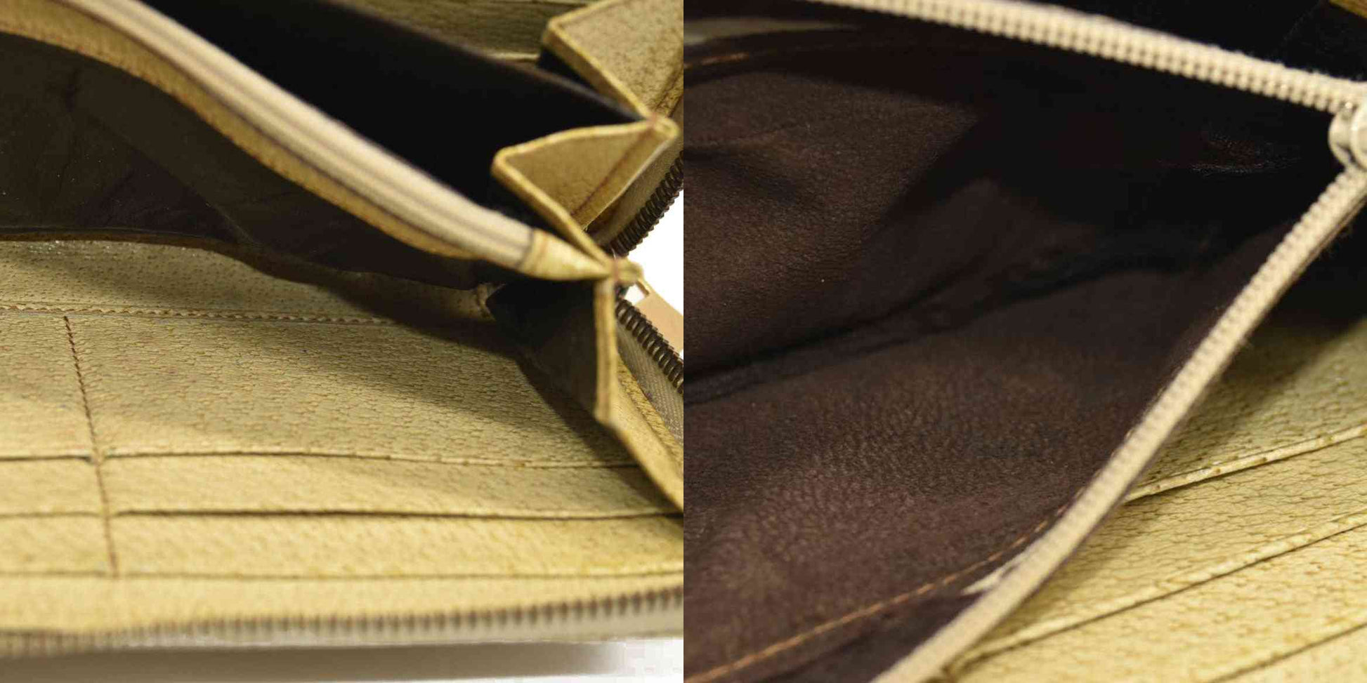 Interior: Residue marks, scuffs, frayed stitch(es), residue marks/stains
