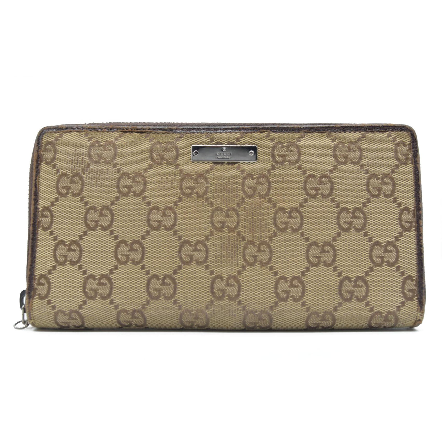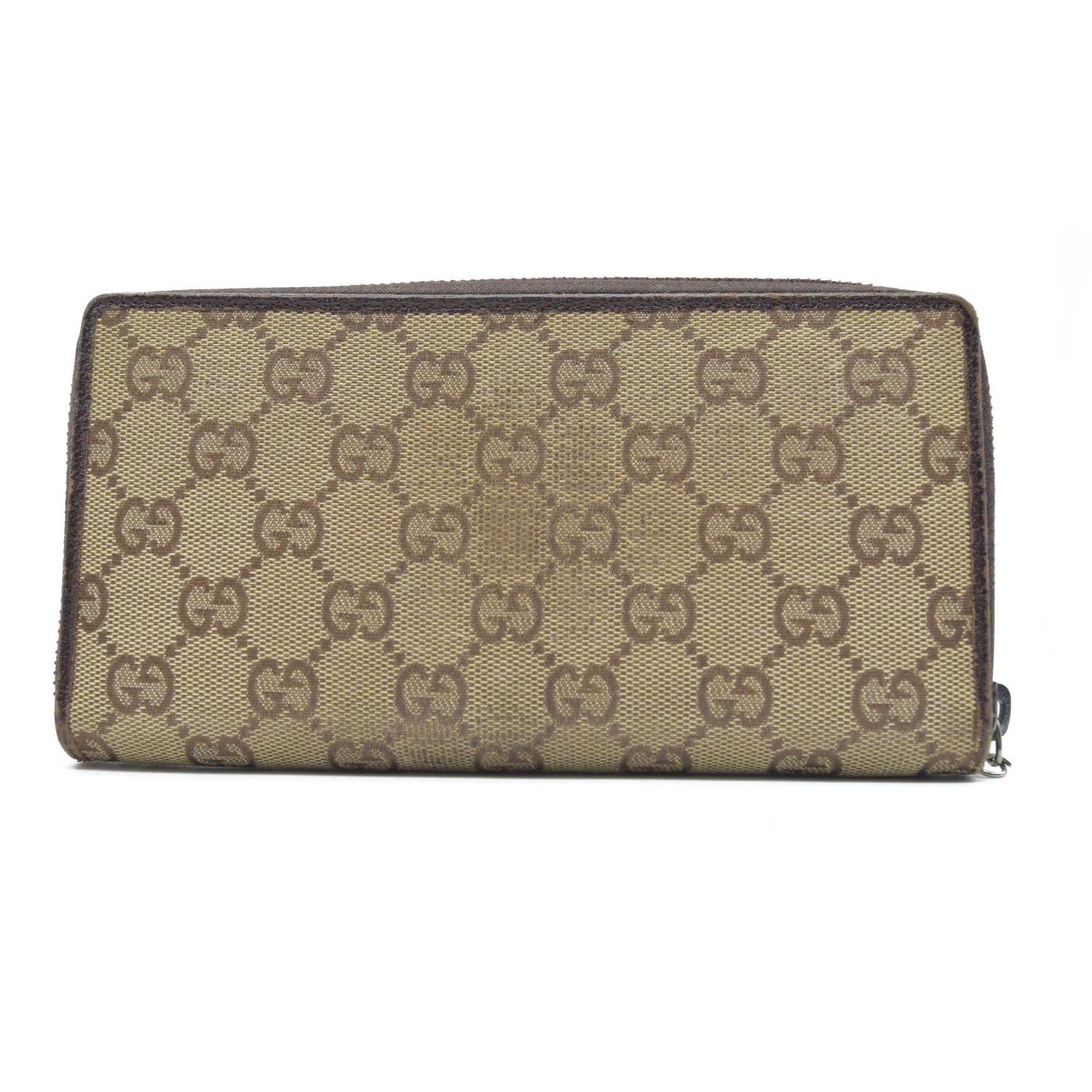 Gucci Monogram Metal Bar Zip Around Wallet Dark Brown