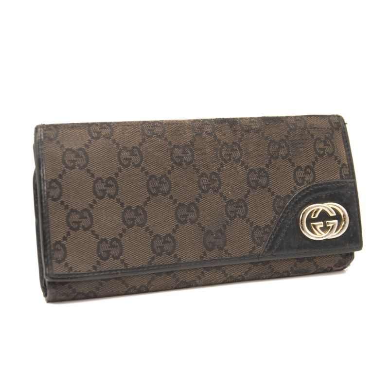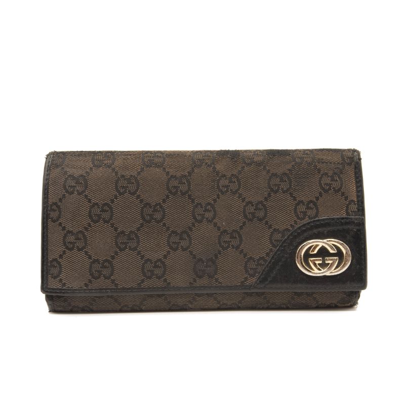 Gucci Monogram New Britt Continental Wallet Dark Black/Brown