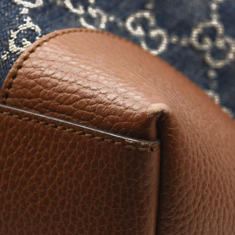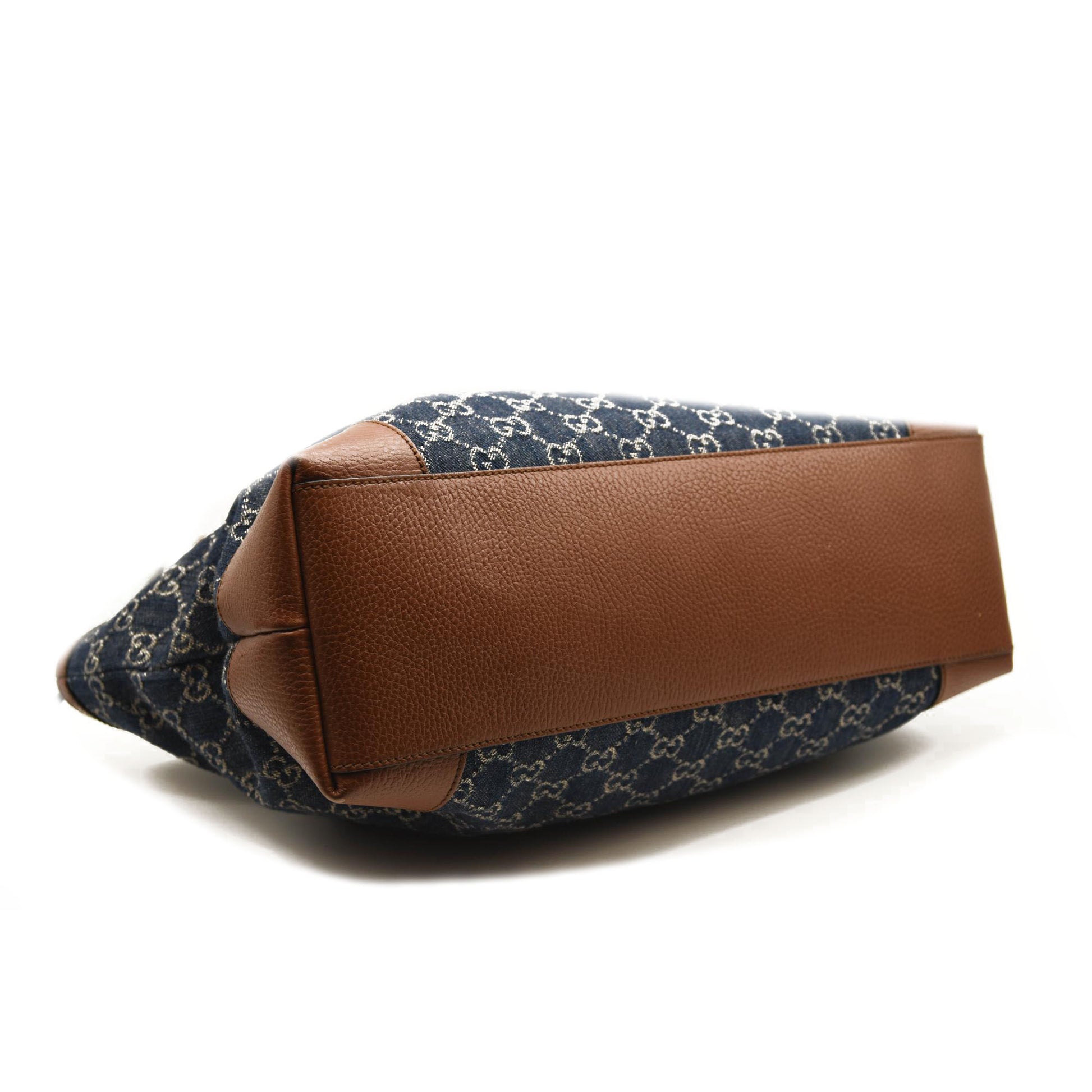 GUCCI New Denim GG Monogram Medium Ophidia Shopping Tote Blue Tea Cuir