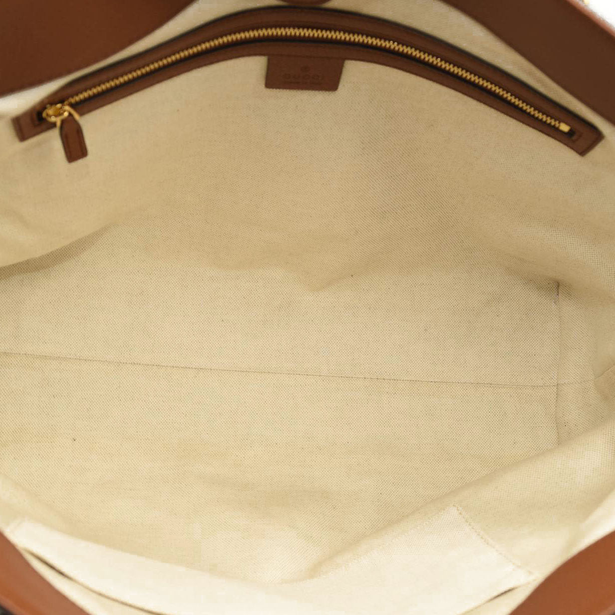 This is an authentic GUCCI New Denim GG Monogram Medium Ophidia Shopping Tote in Blue and Tea Cuir. This chic tote is crafted of Gucci GG monogram denim canvas. The handbag features brown leather strap handles and the top is open to a beige fabric interior with zipper and patch pockets.