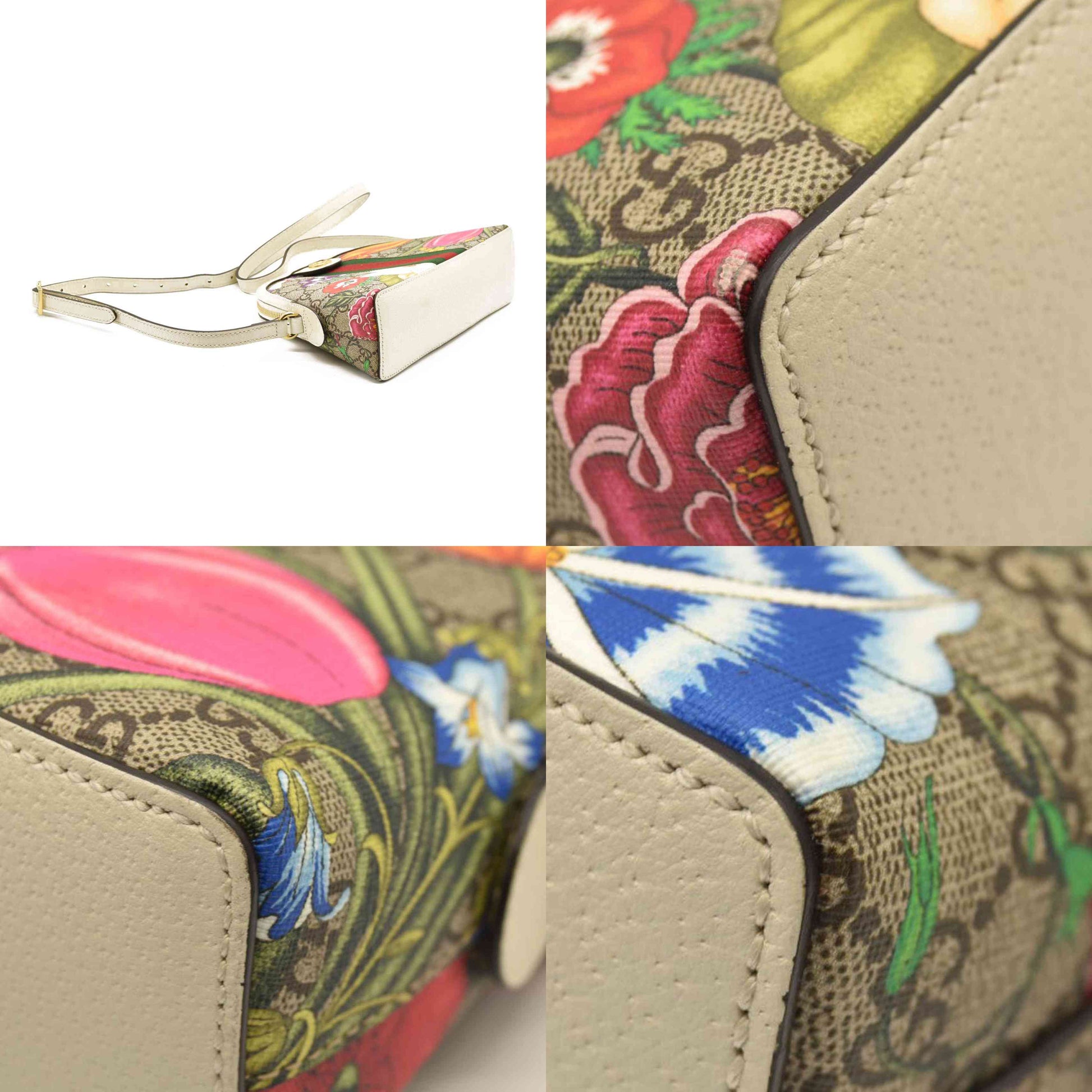 Gucci GG Supreme Monogram Flora Web GG Small Ophidia Dome Shoulder Bag White