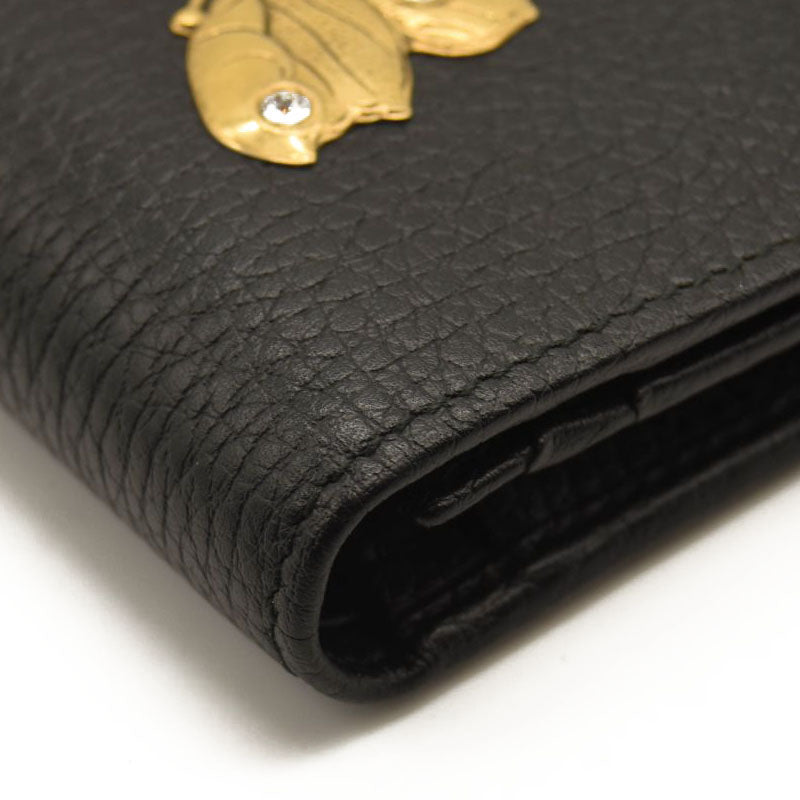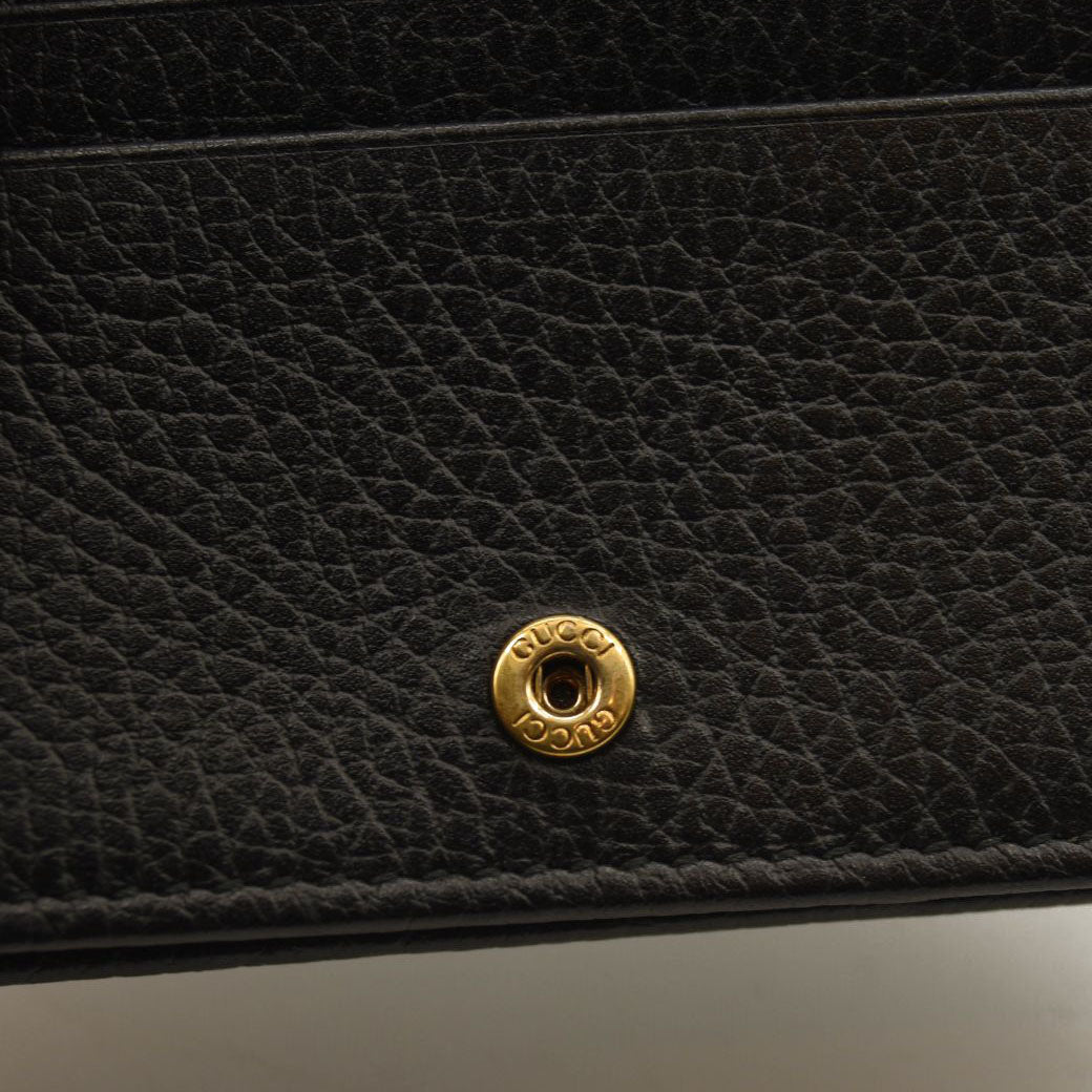 GUCCI Pebbled Calfskin Butterfly Card Case Black